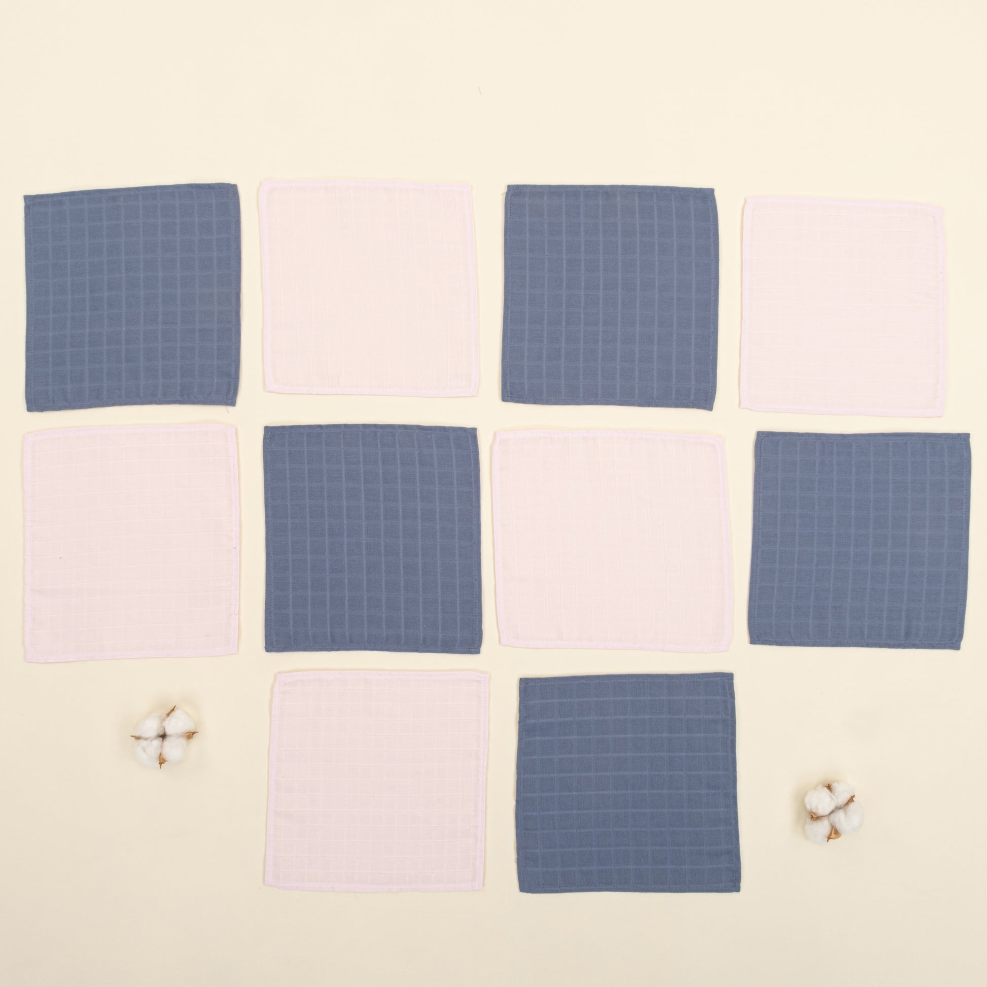 10'lu Ağız Mendili Seti - İndigo Muslin - Bebe Pembe Muslin