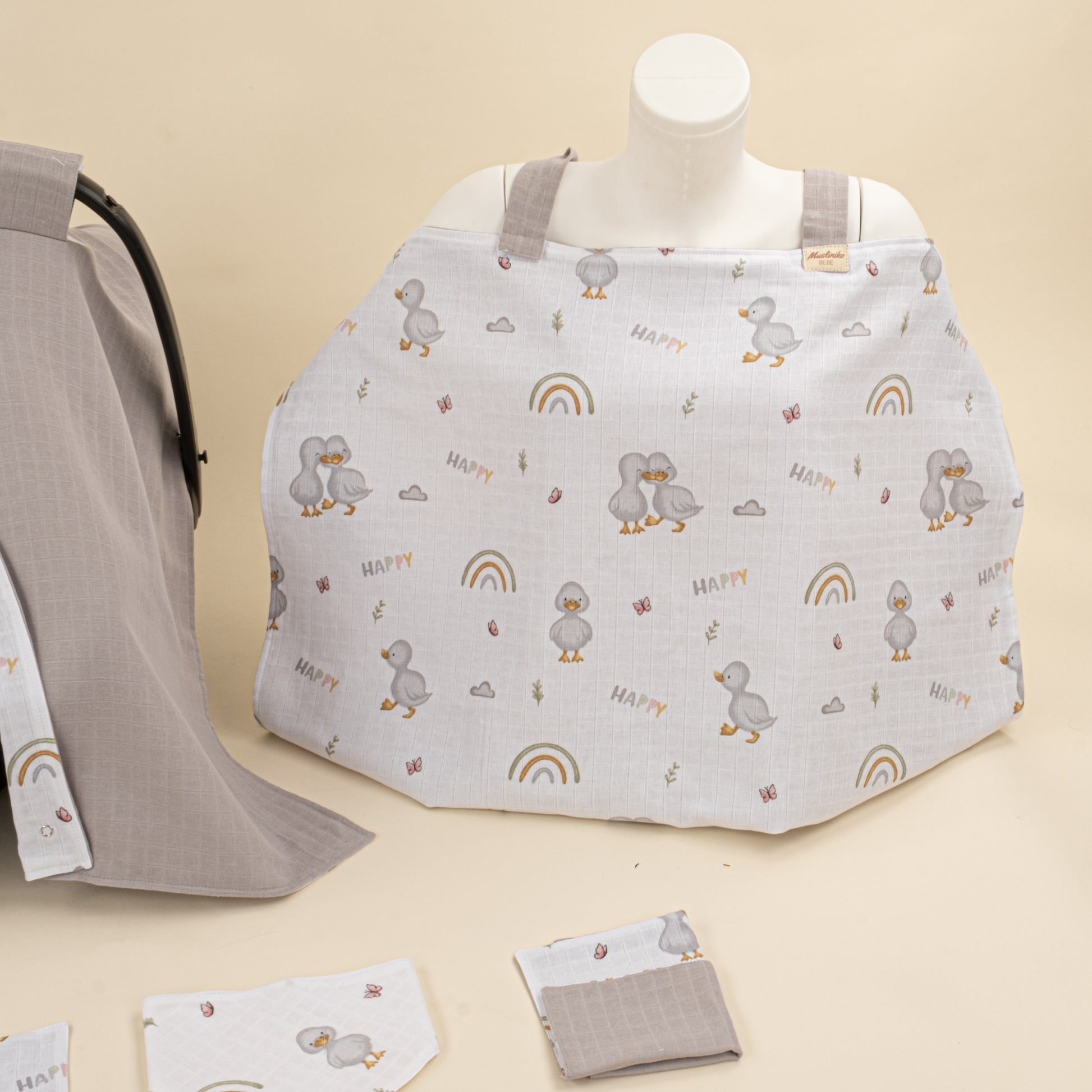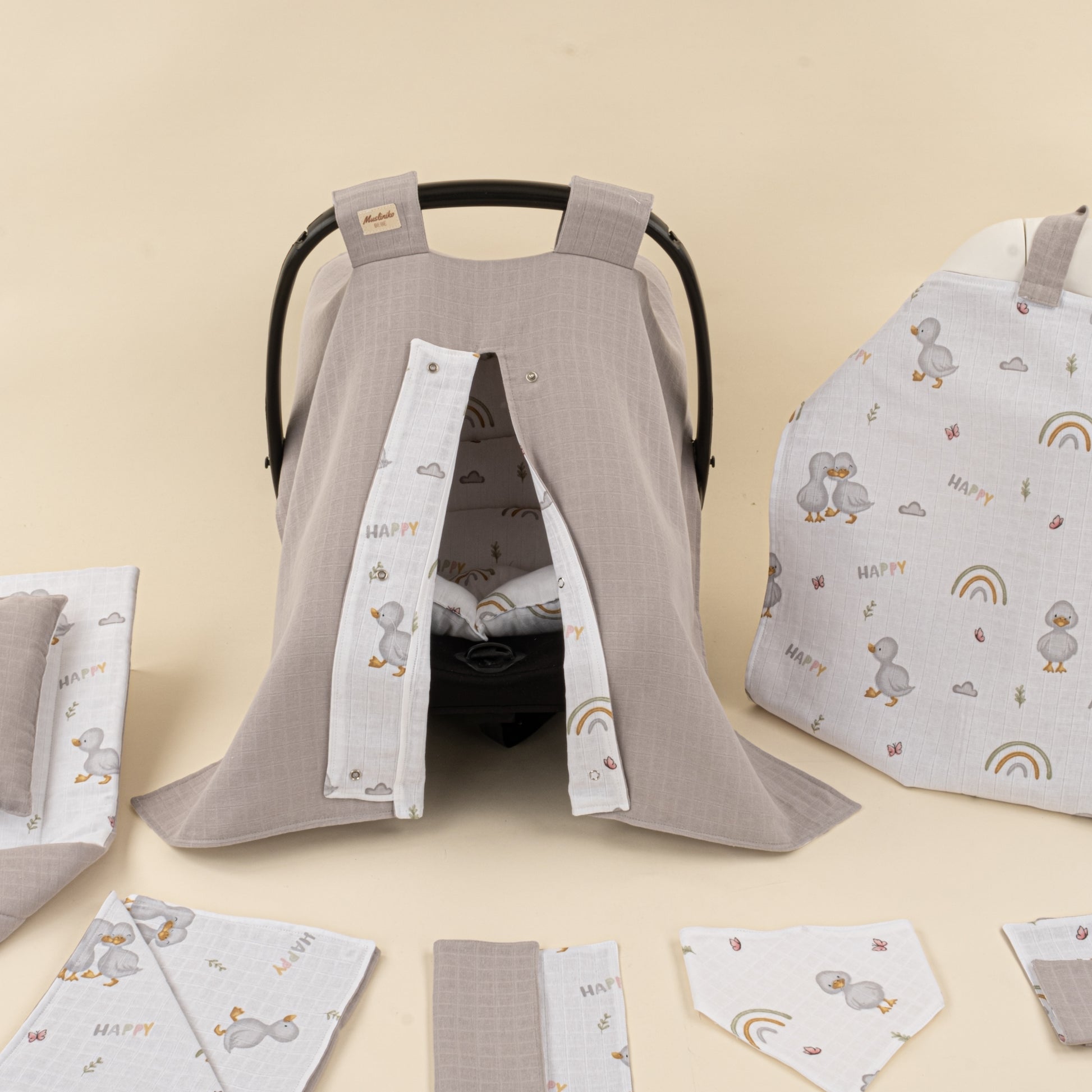 11 Parça Avantajlı Set - Çift Taraflı - Gri Muslin - Ördekler
