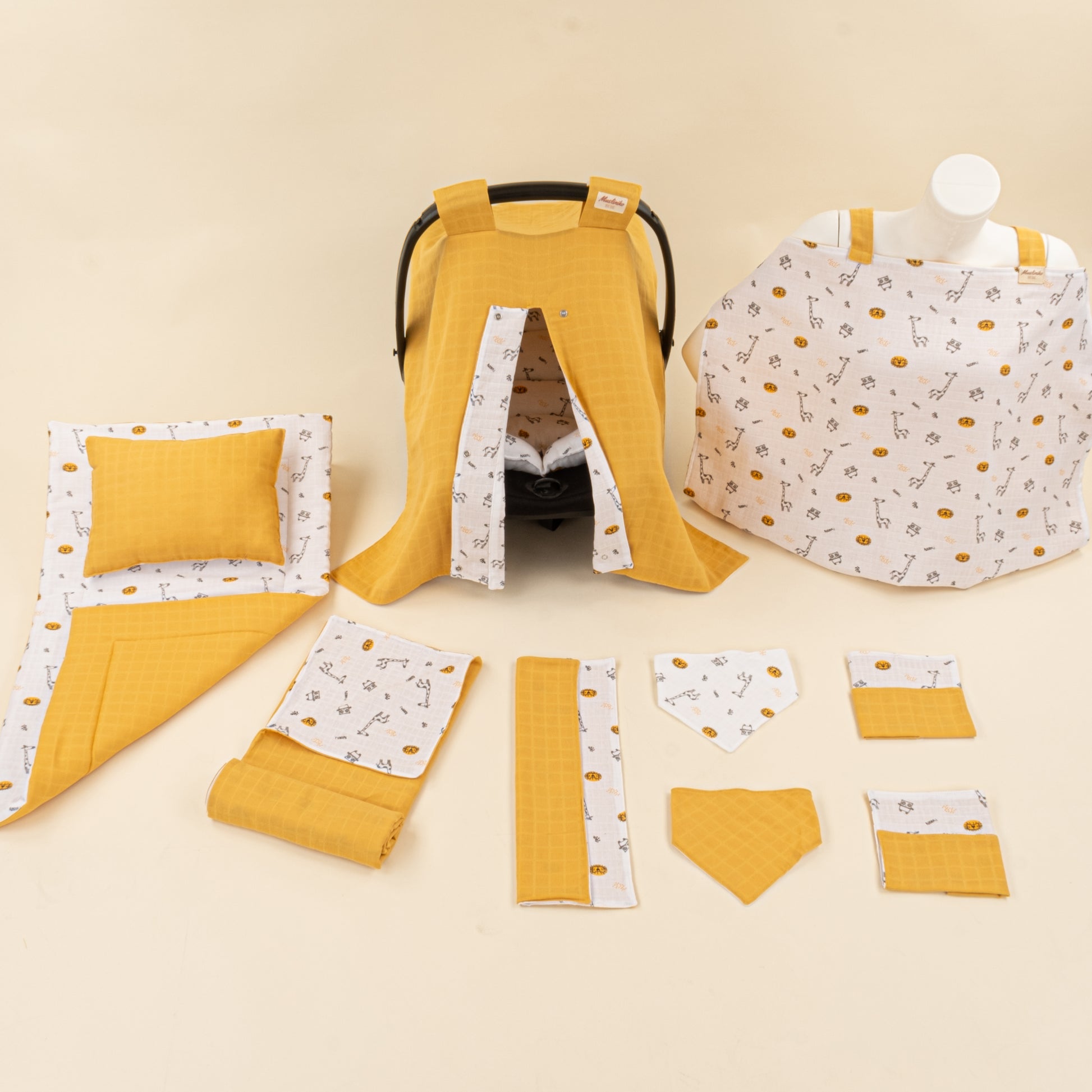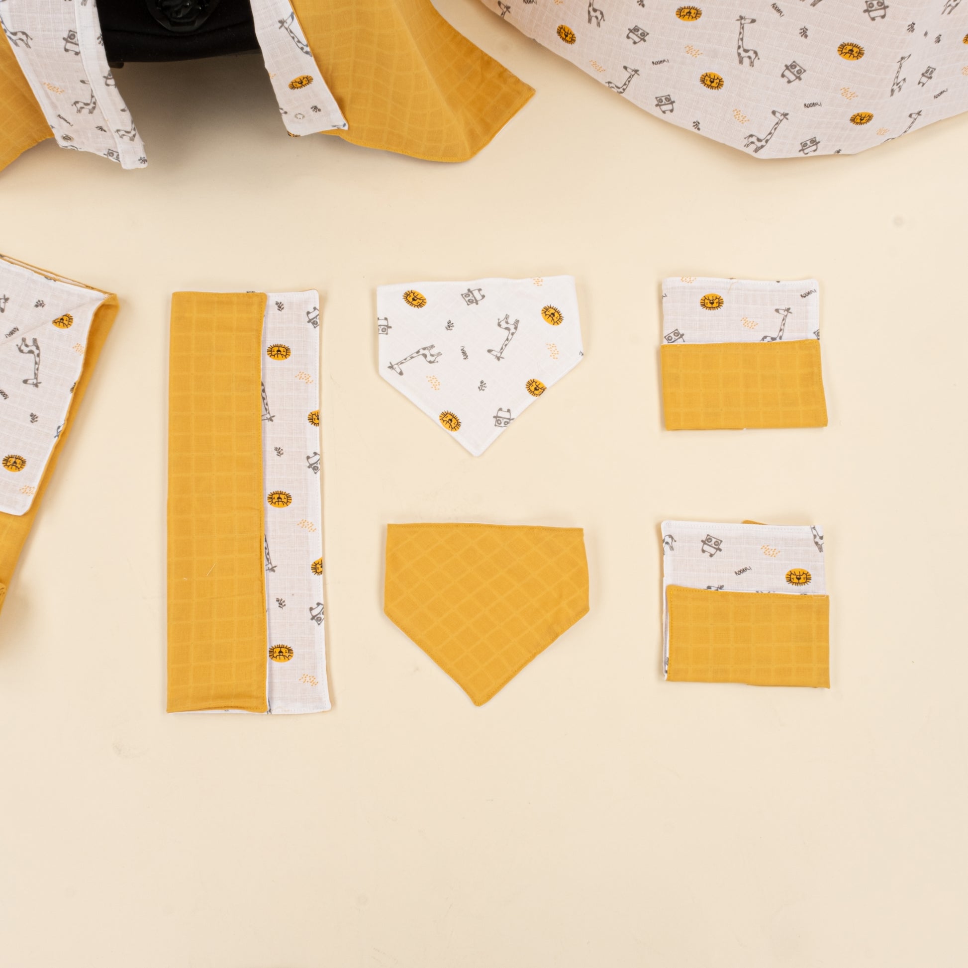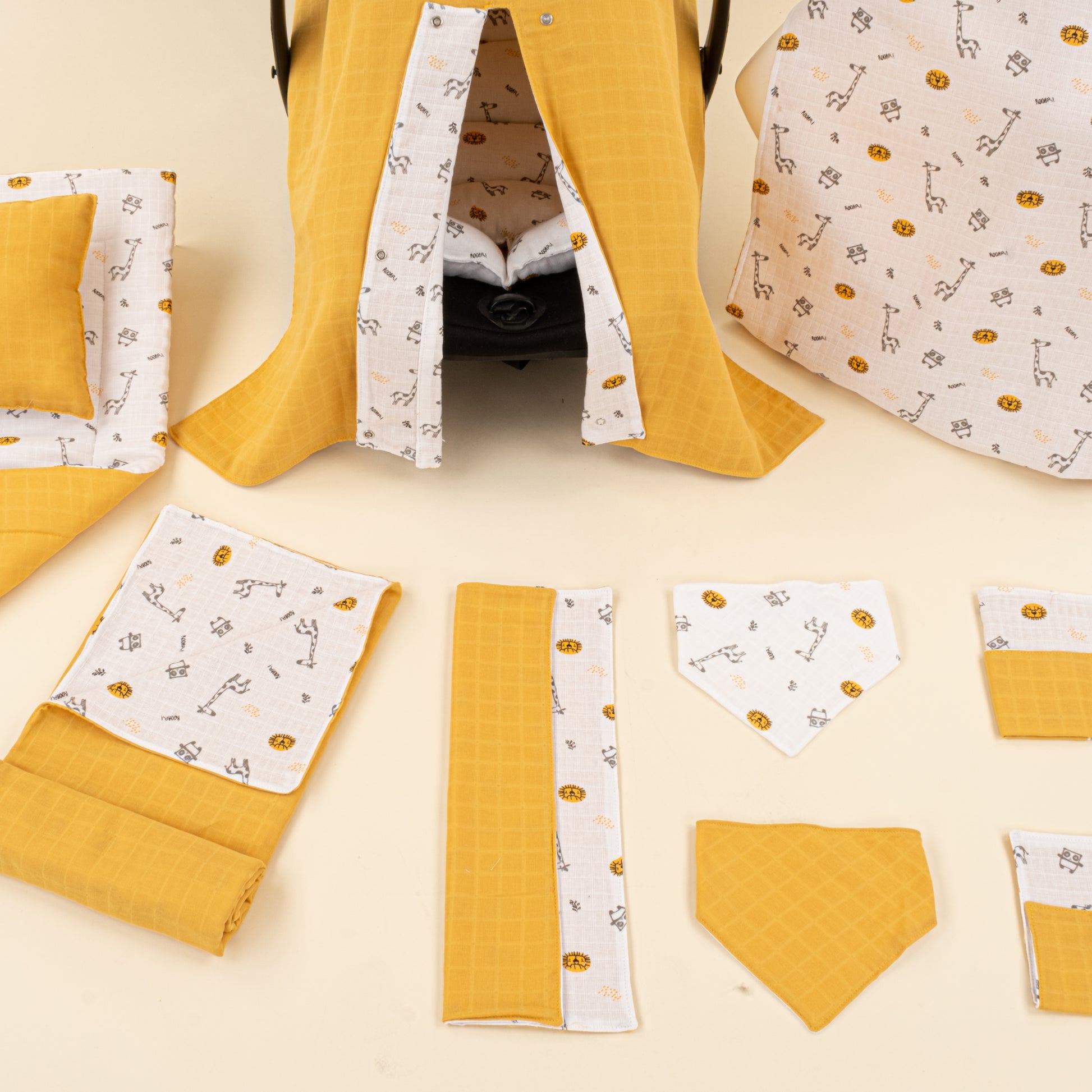 11 Parça Avantajlı Set - Çift Taraflı - Hardal Muslin - Zürafa