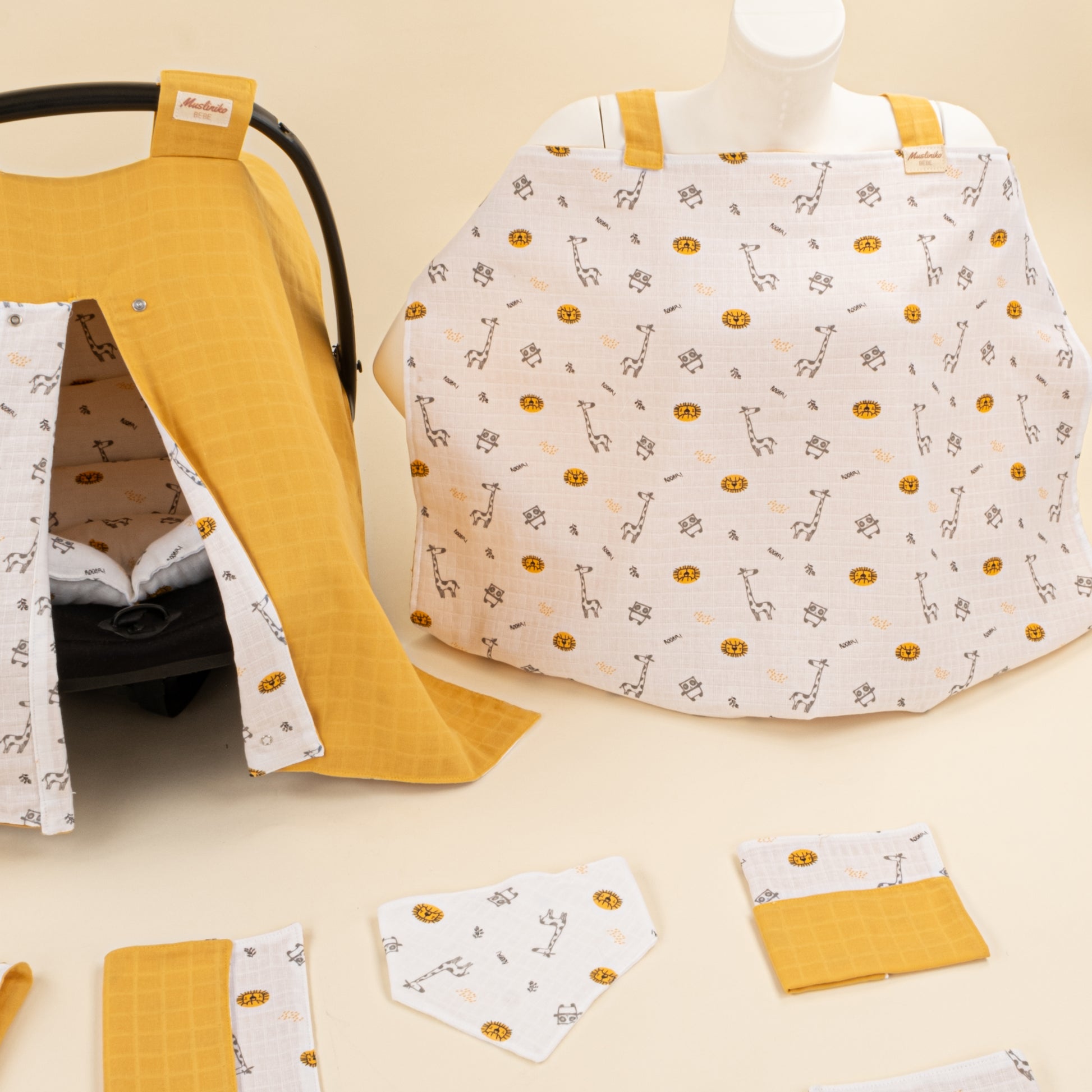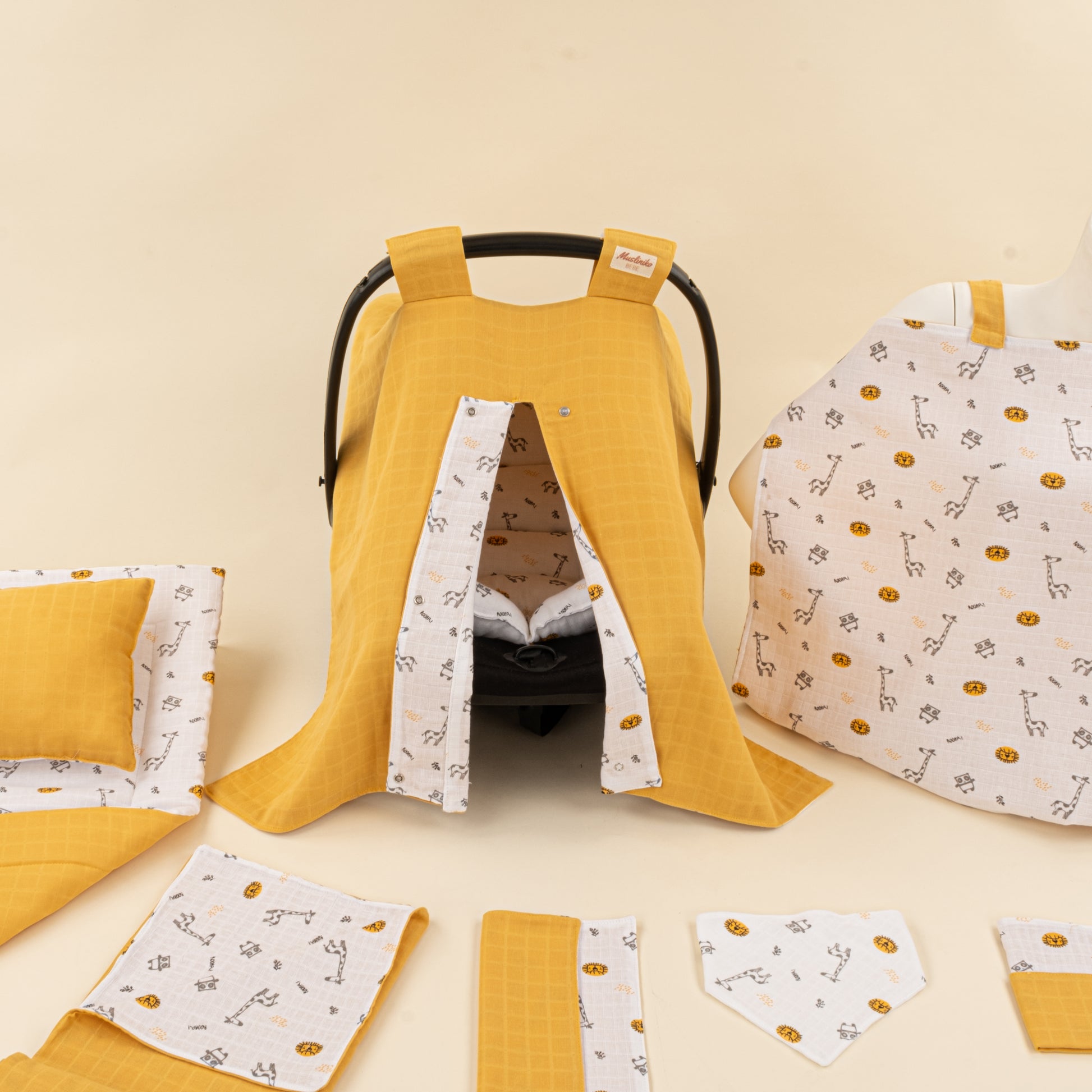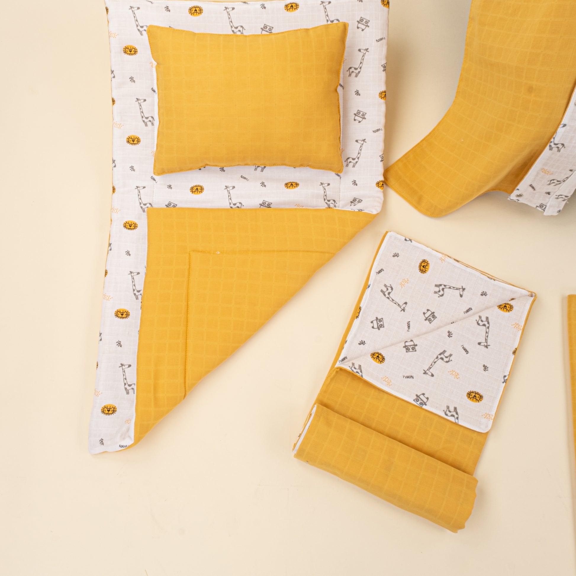 11 Parça Avantajlı Set - Çift Taraflı - Hardal Muslin - Zürafa