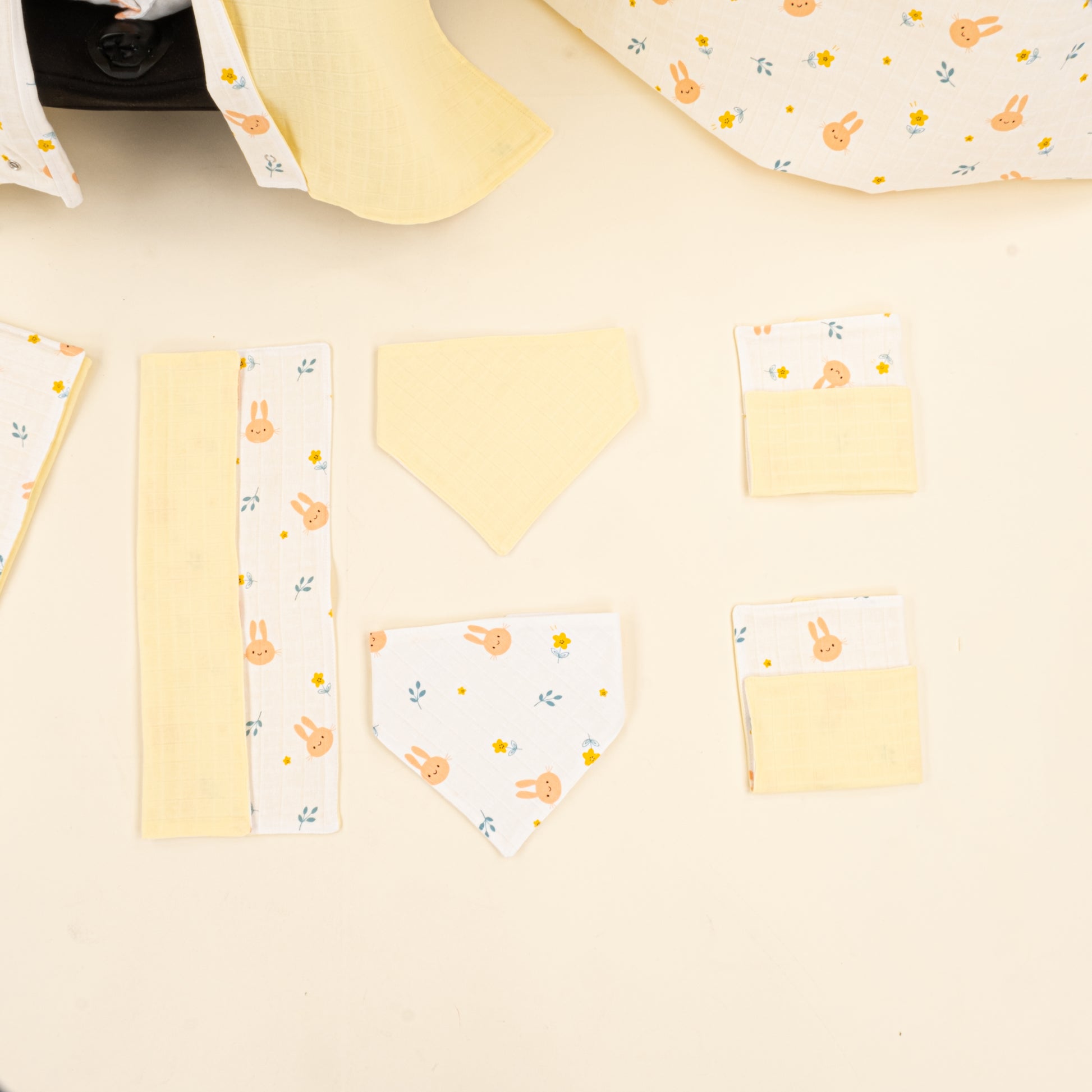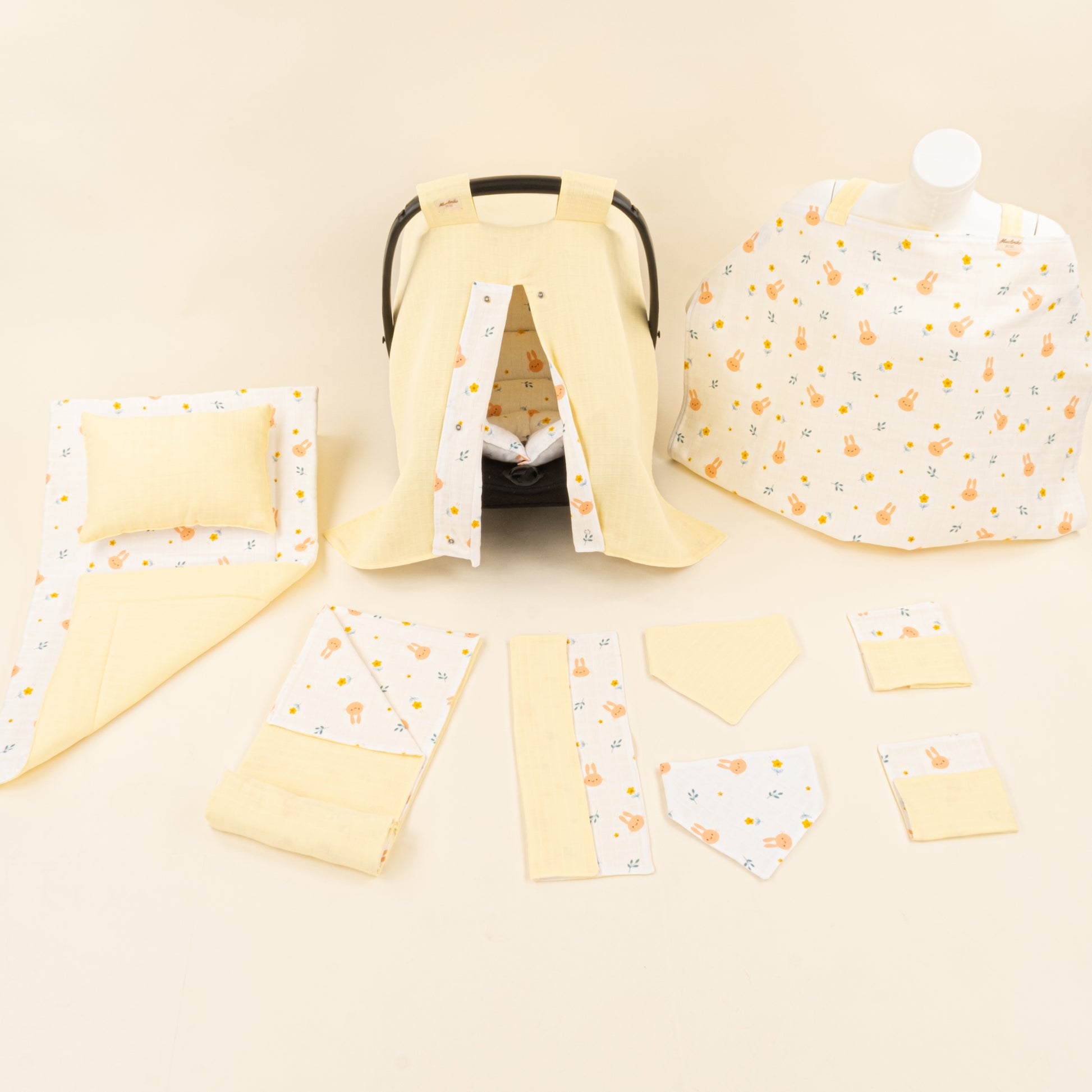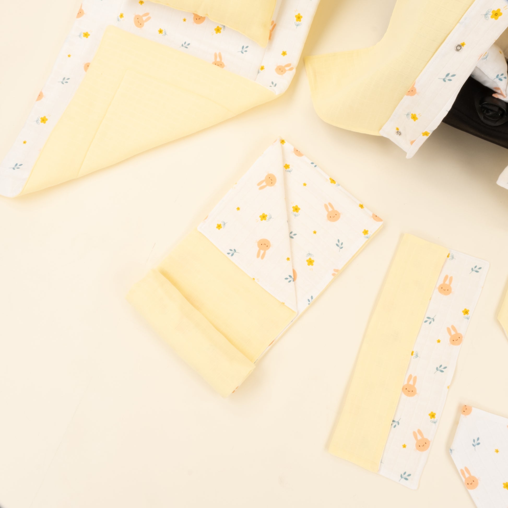 11 Parça Avantajlı Set - Çift Taraflı - Sarı Muslin - Turuncu Tavşan