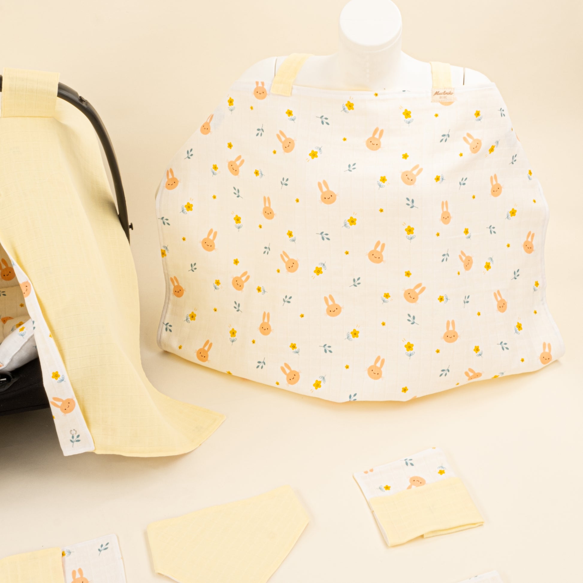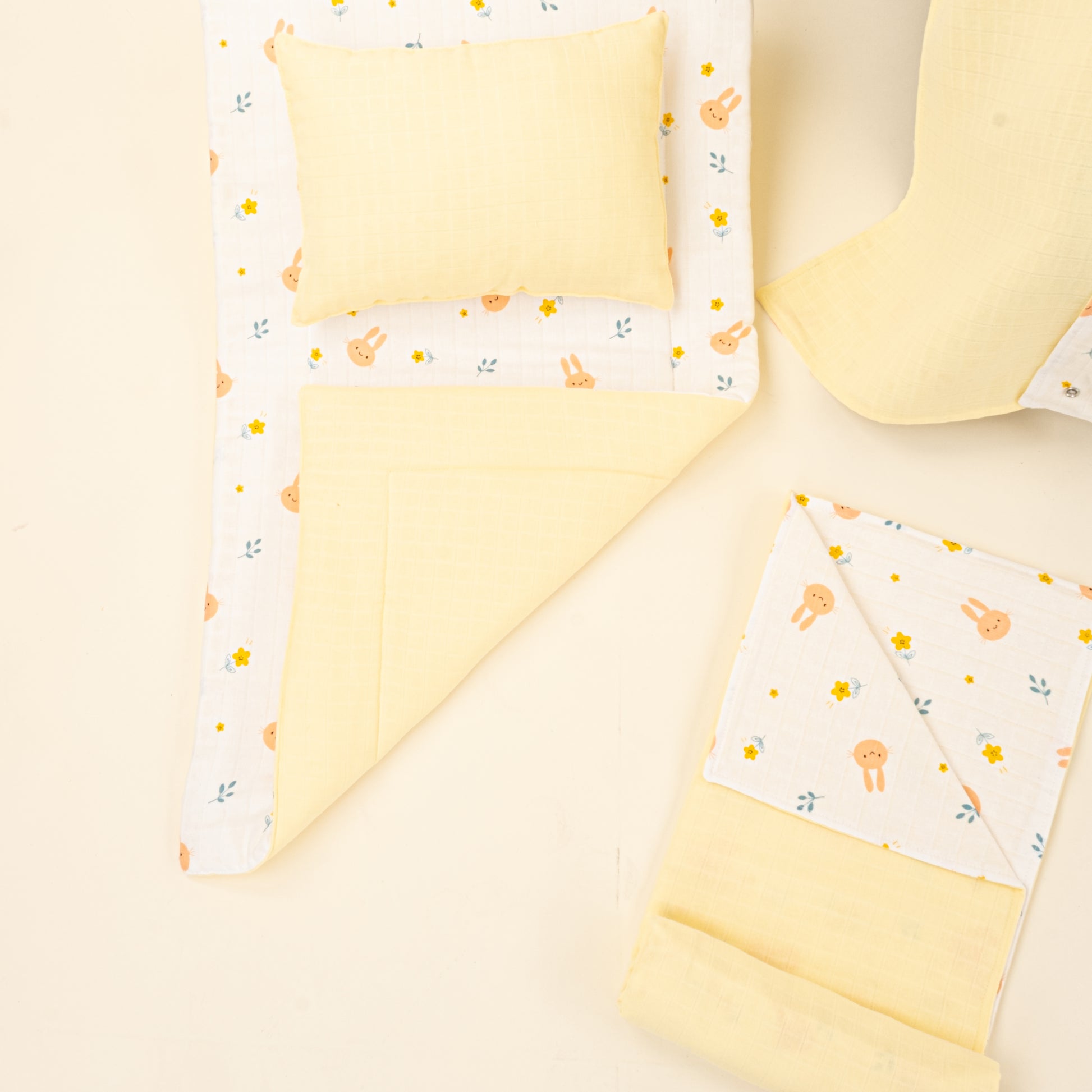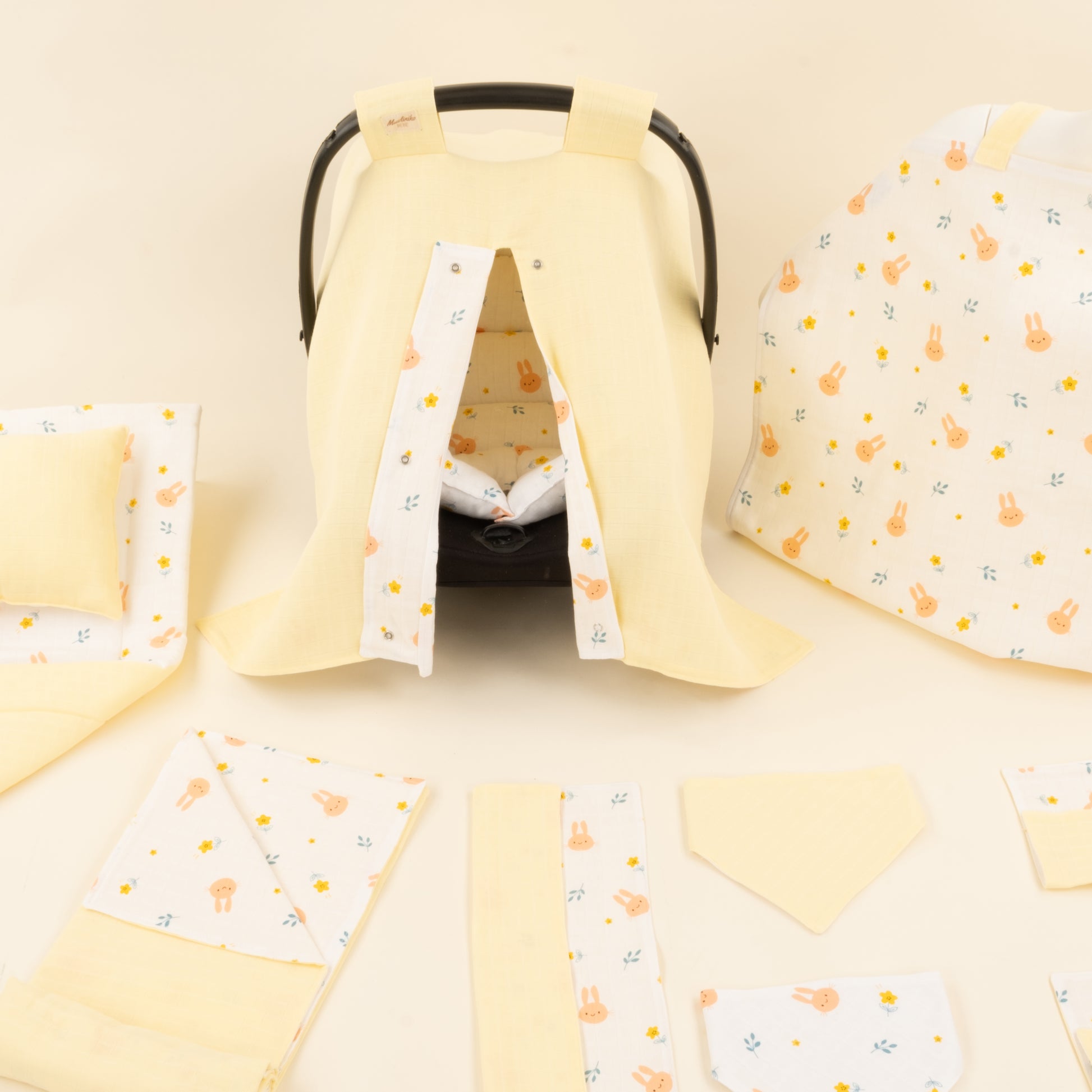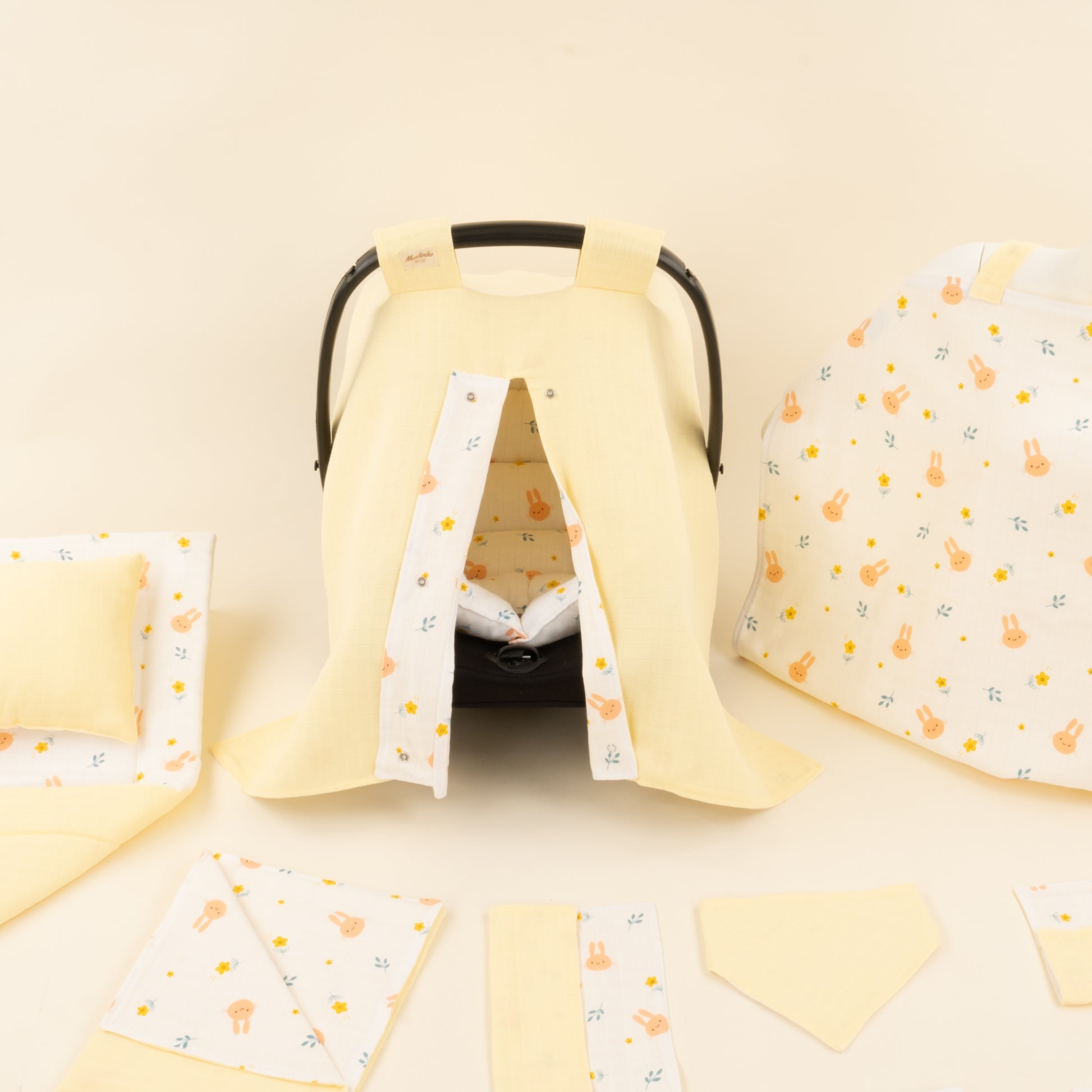 11 Parça Avantajlı Set - Çift Taraflı - Sarı Muslin - Turuncu Tavşan