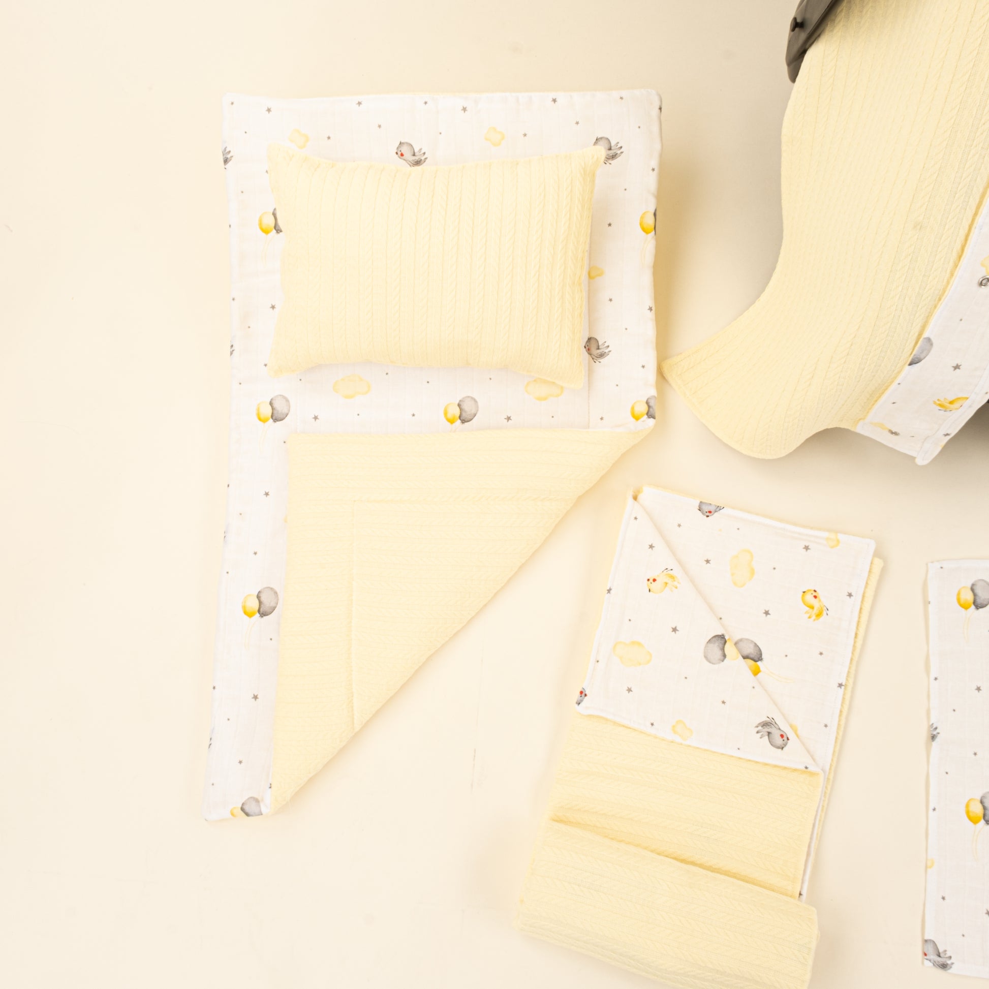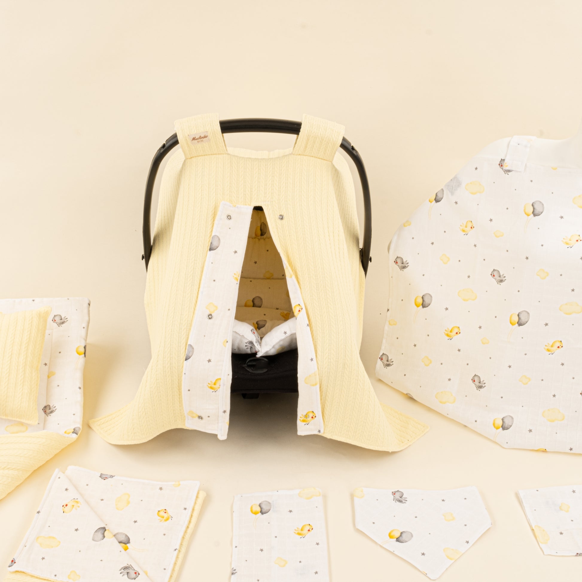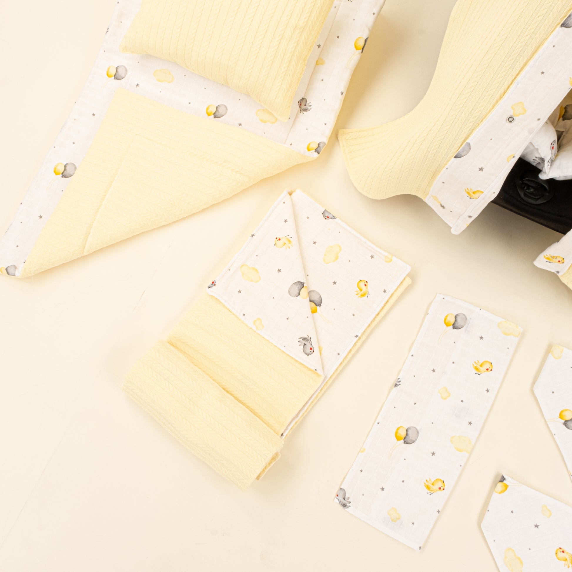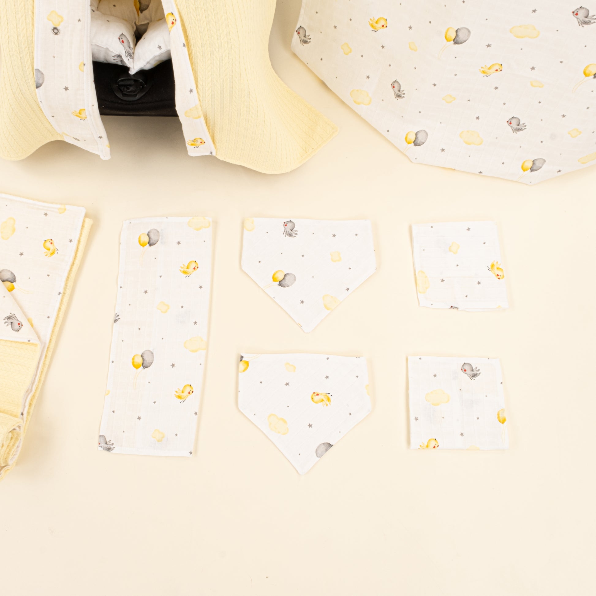 11 Parça Avantajlı Set - Çift Taraflı - Sarı Örgü - Sarı Kuş