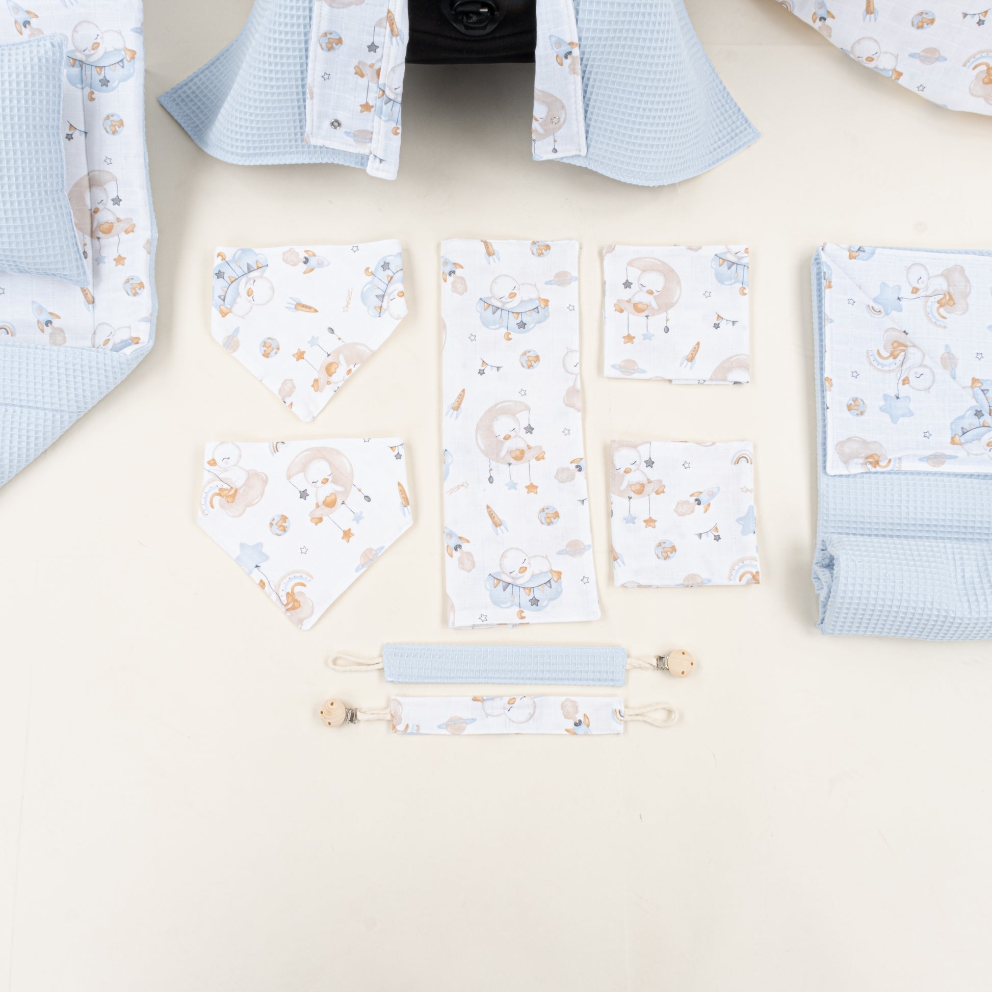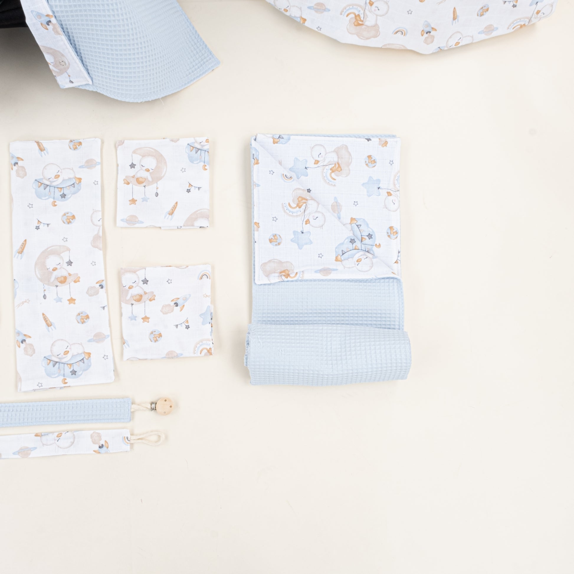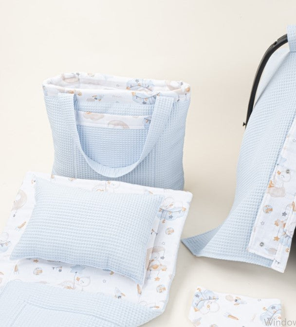 14 Parça Avantajlı Set - Çift Taraflı - Bebe Mavi Petek - Uykucu Ördek