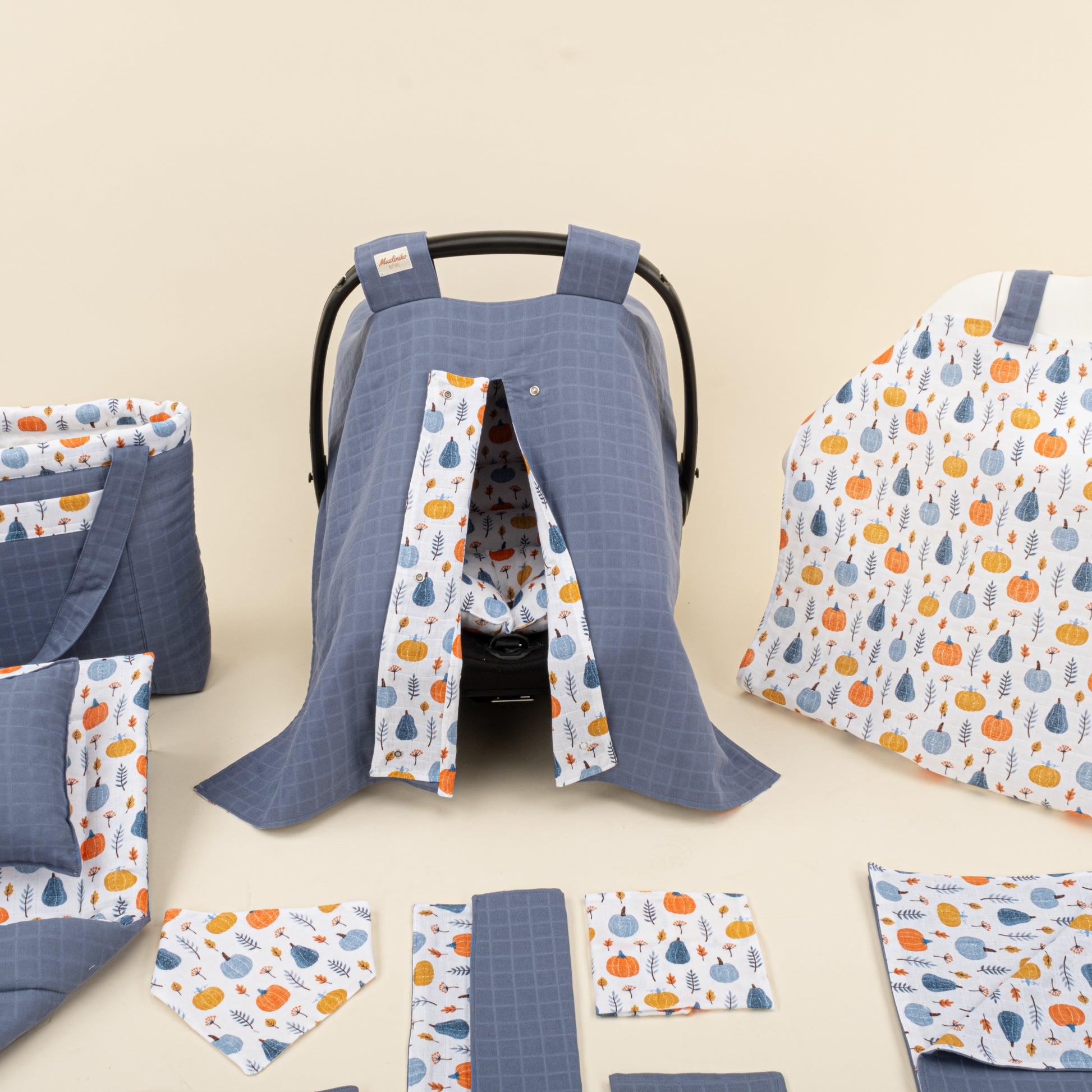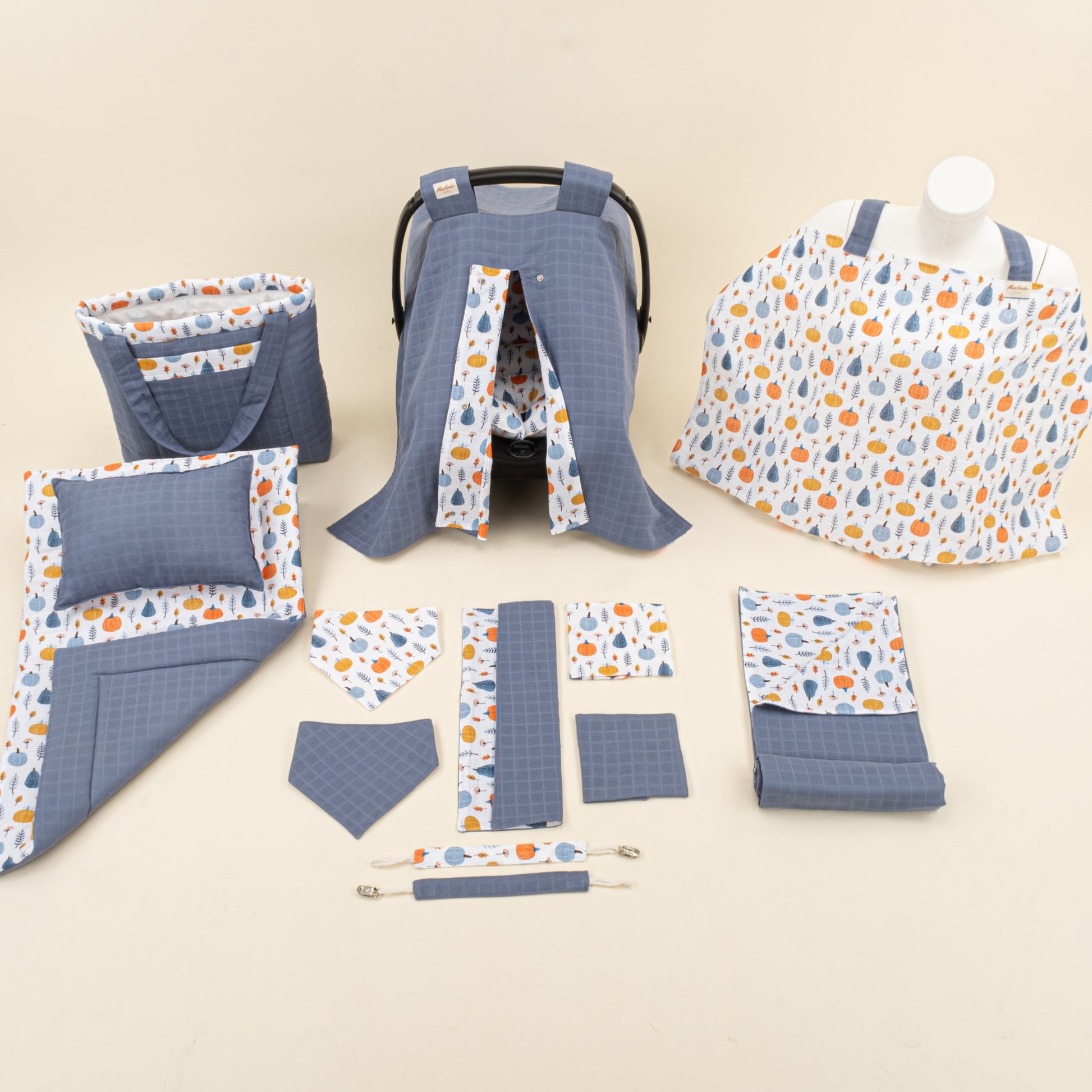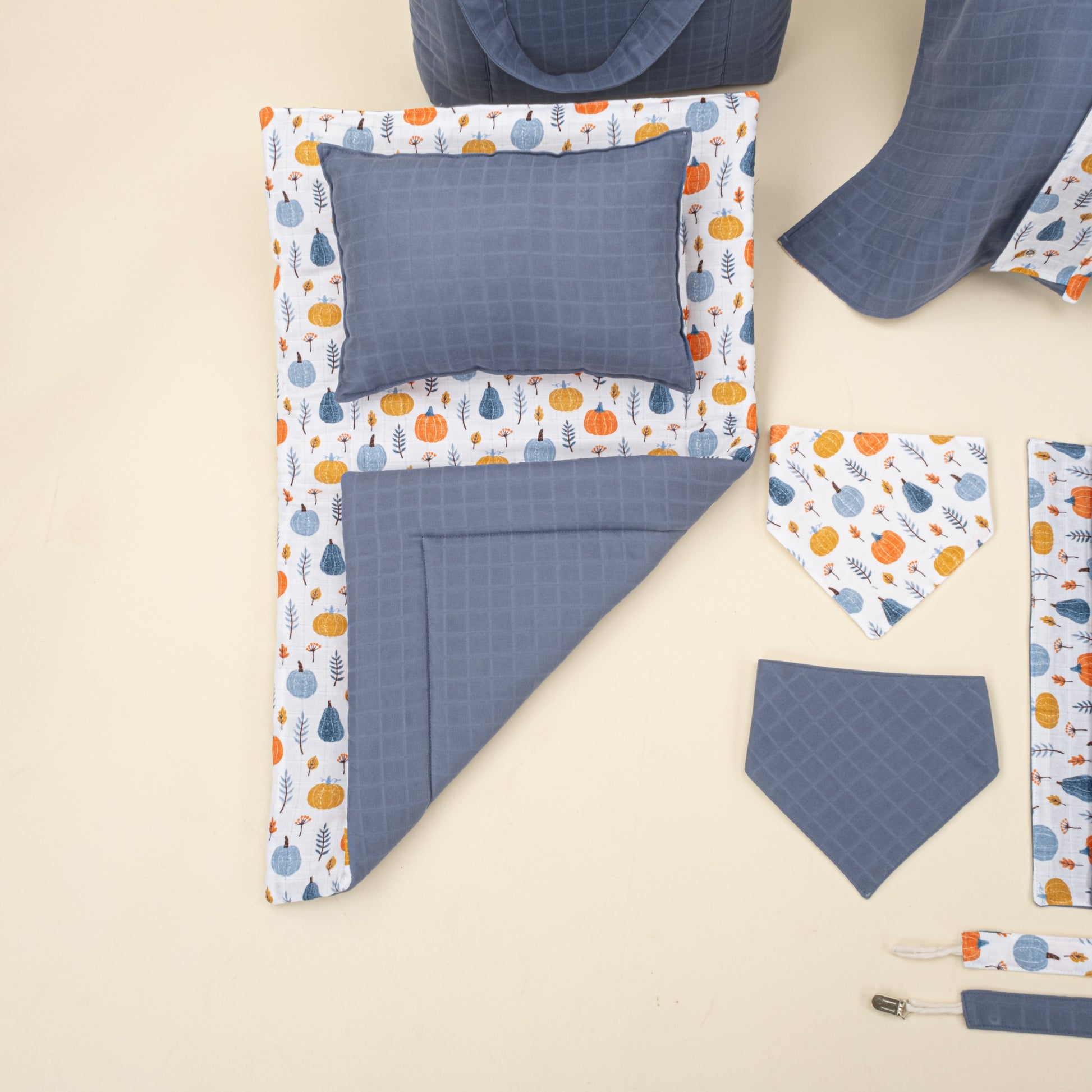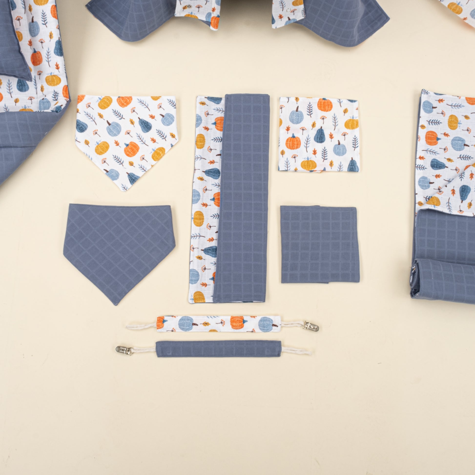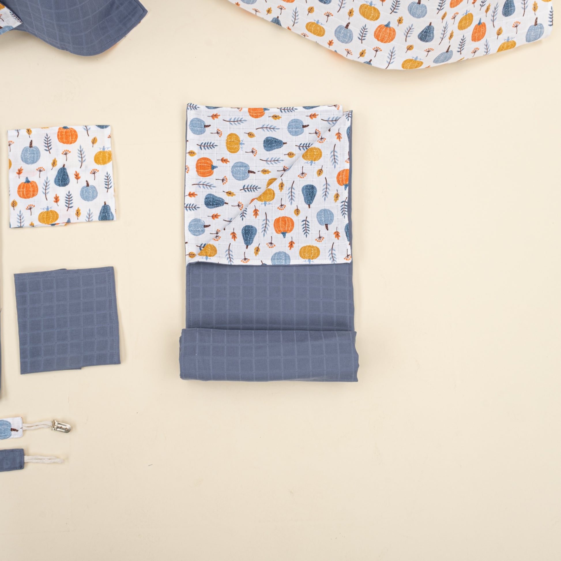 14 Parça Avantajlı Set - Çift Taraflı - İndigo Muslin - Mavi Balkabağı