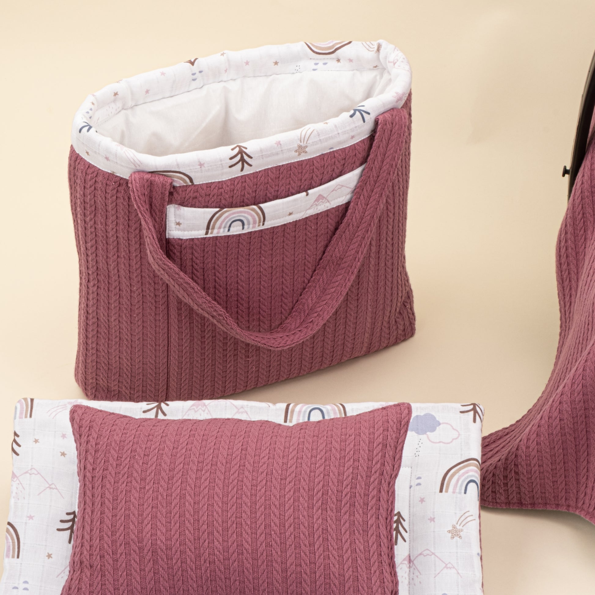14 Parça Avantajlı Set - Çift Taraflı - Mürdüm Örgü - Pastel Gökkuşağı