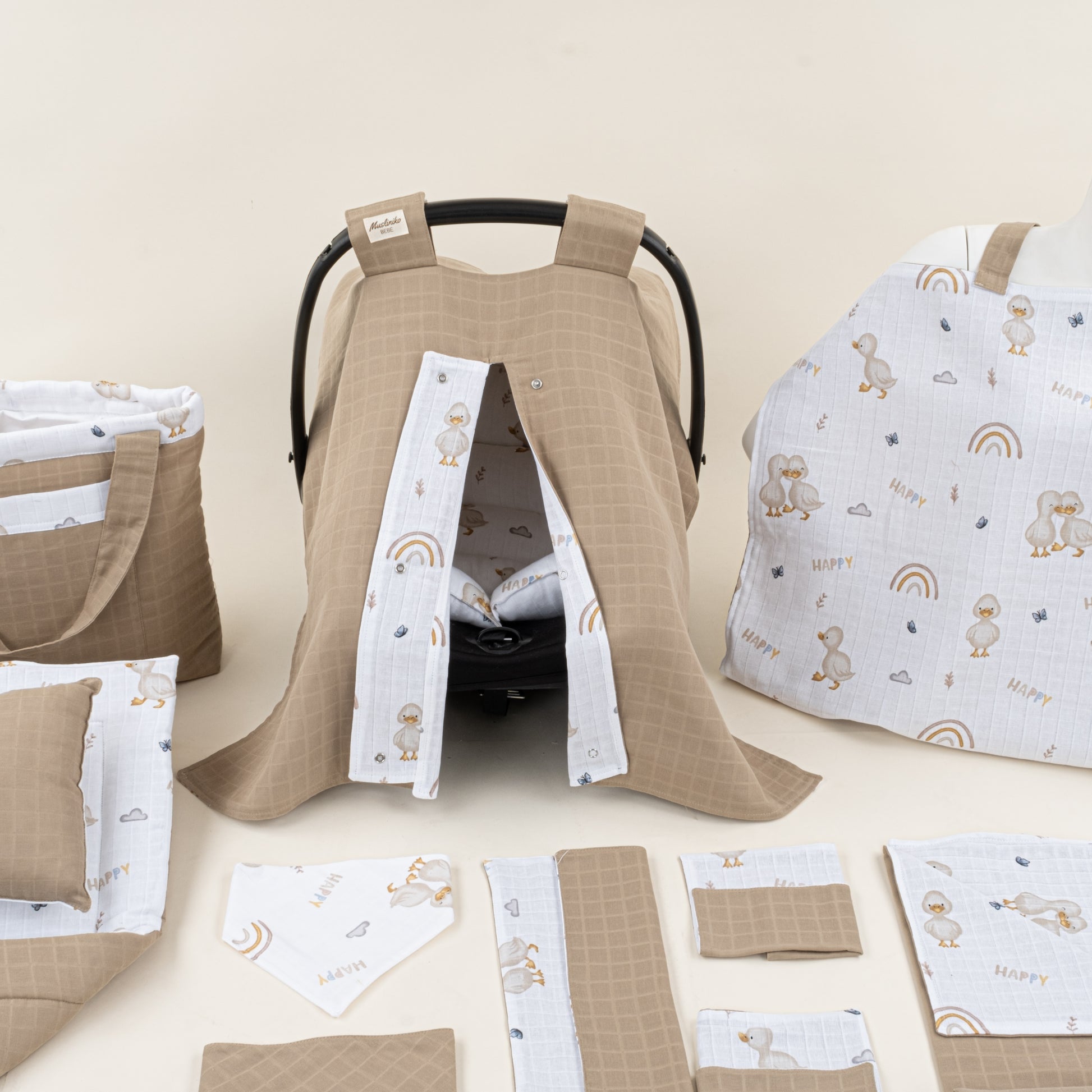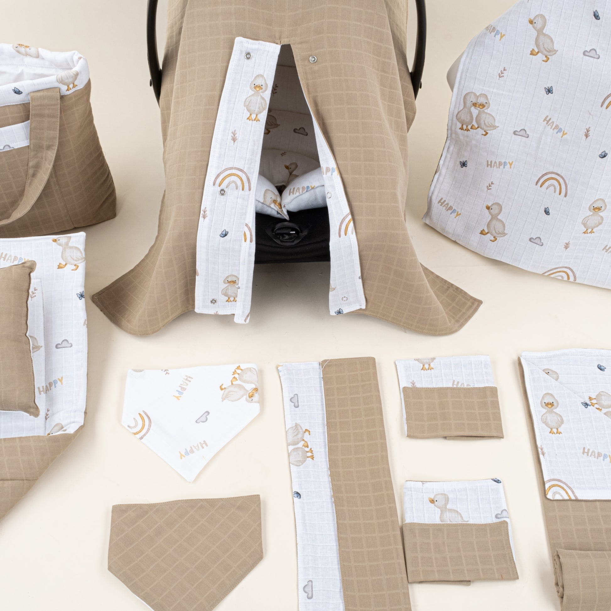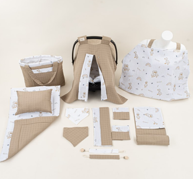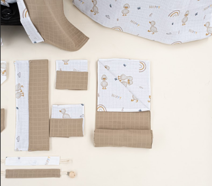 14 Parça Full Set - Çift Taraflı - Toprak Muslin - Kahverengi Ördek