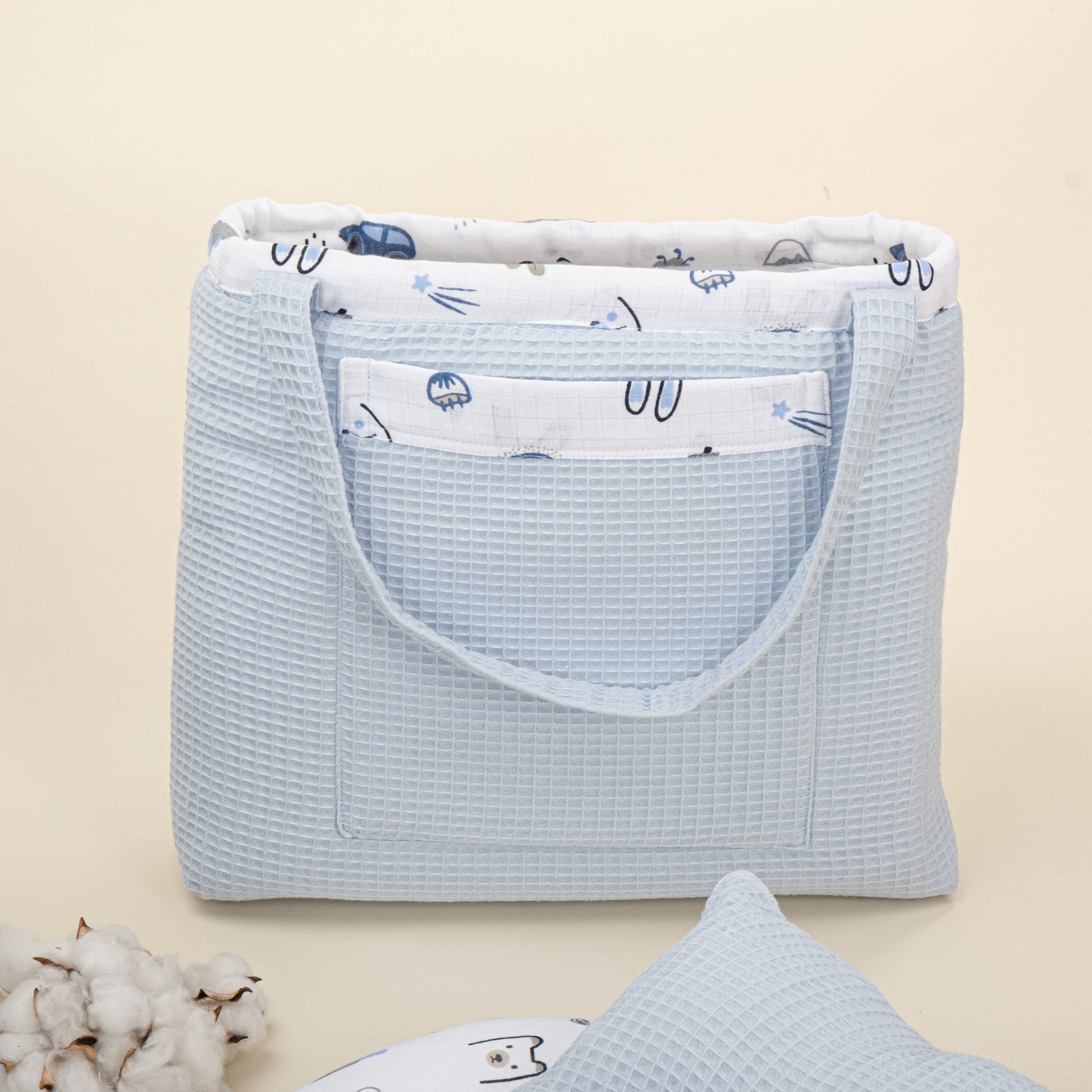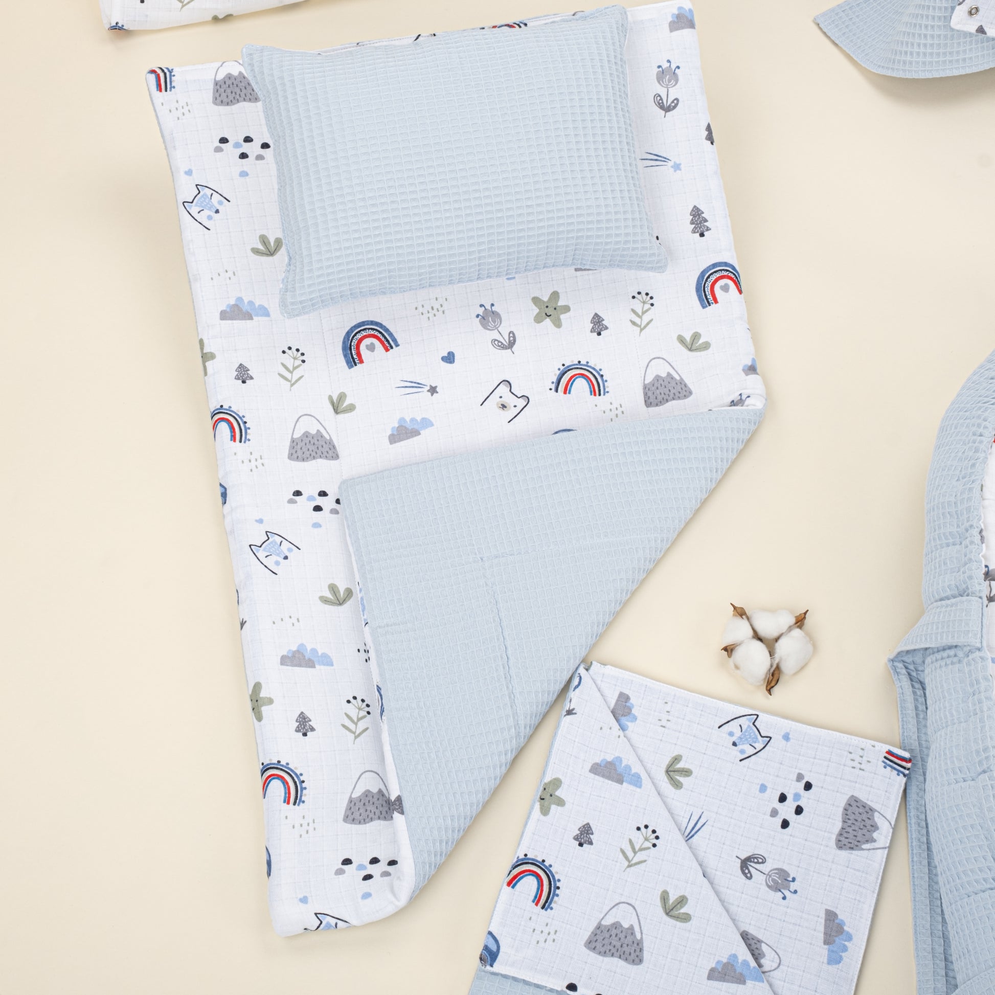18 Parça Full Set - Çift Taraflı - Bebe Mavi Petek - Mavi Kedi