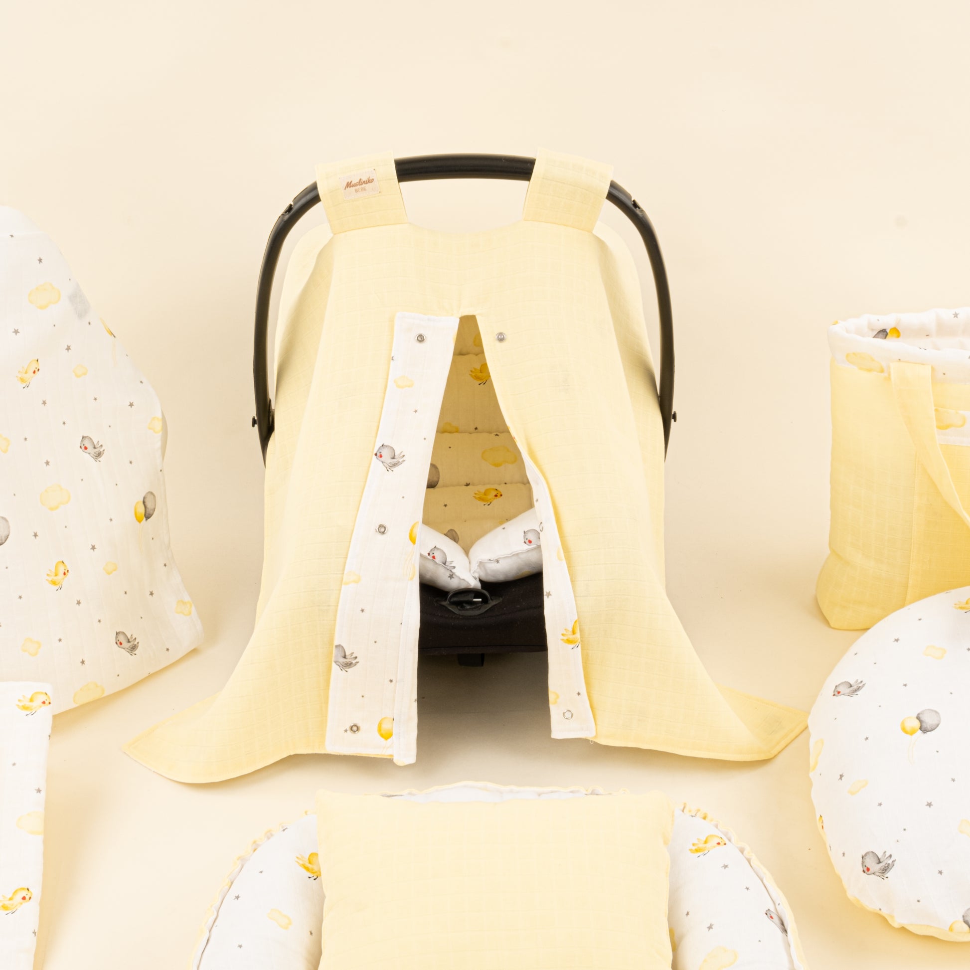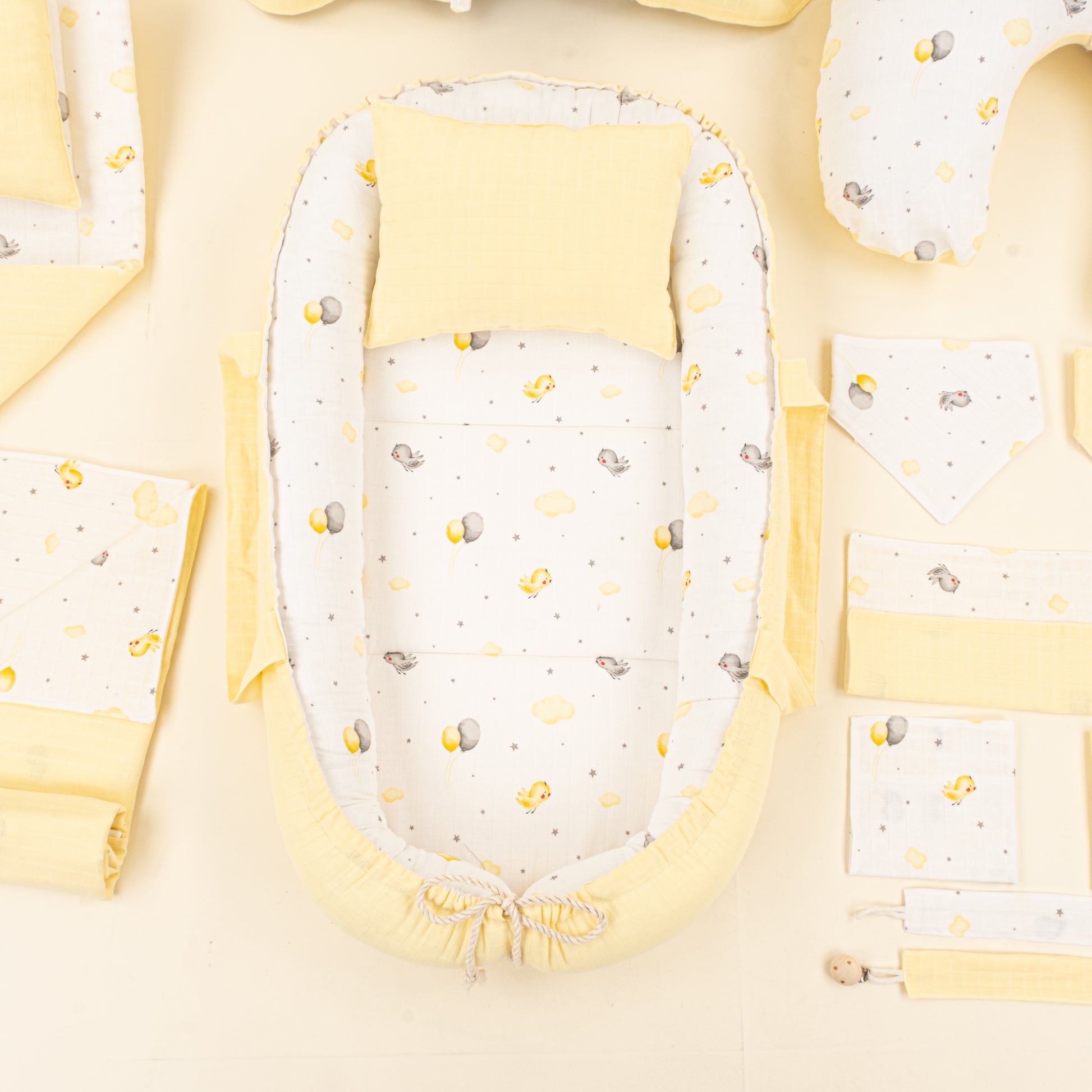 18 Parça Full Set - Çift Taraflı - Sarı Muslin - Sarı Kuş