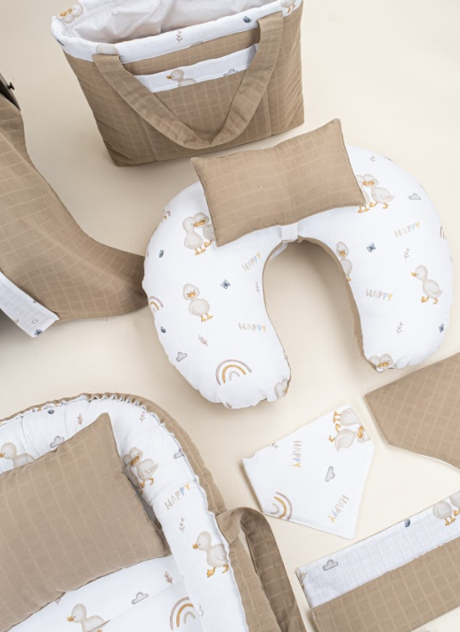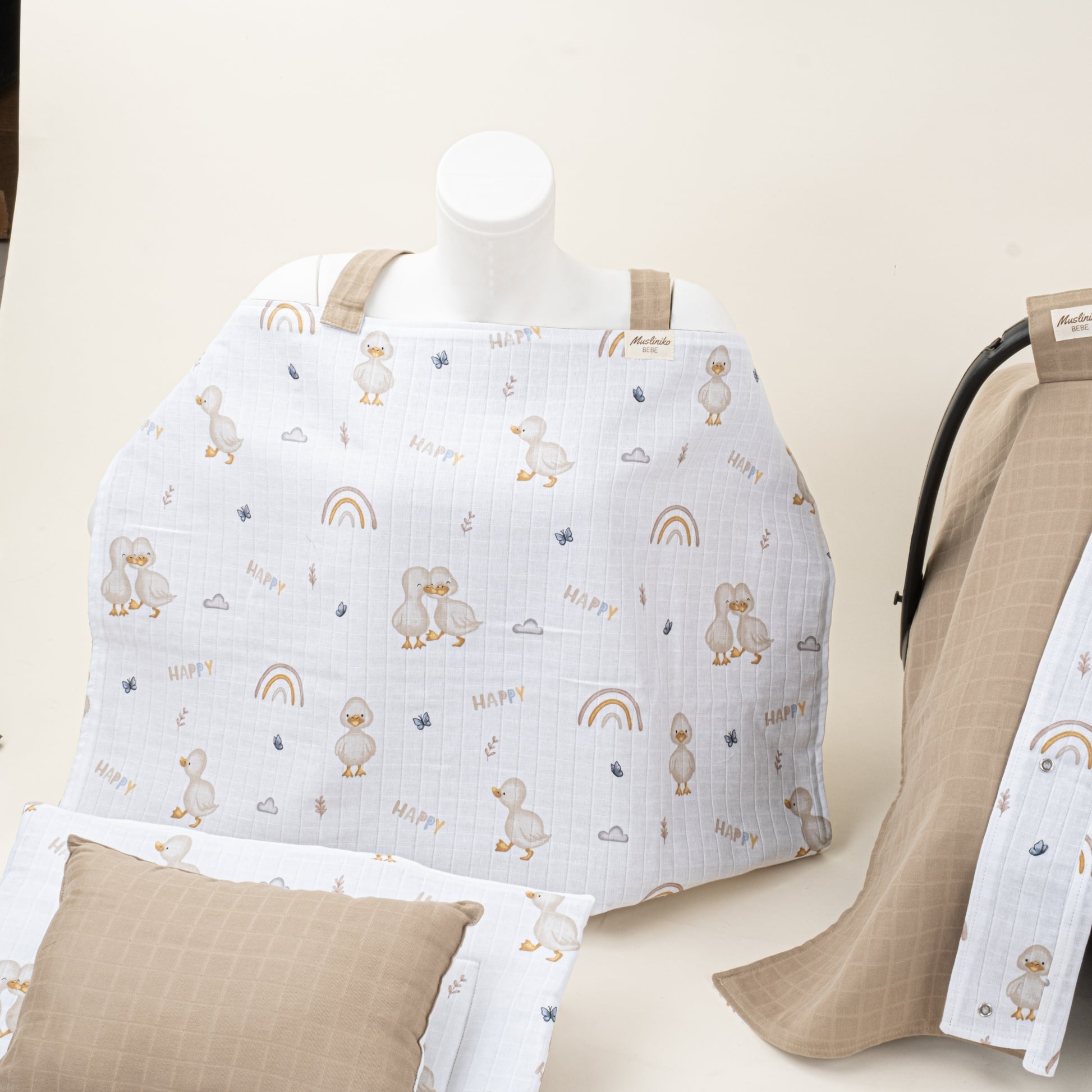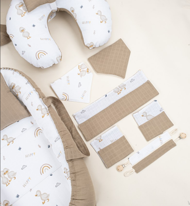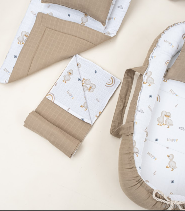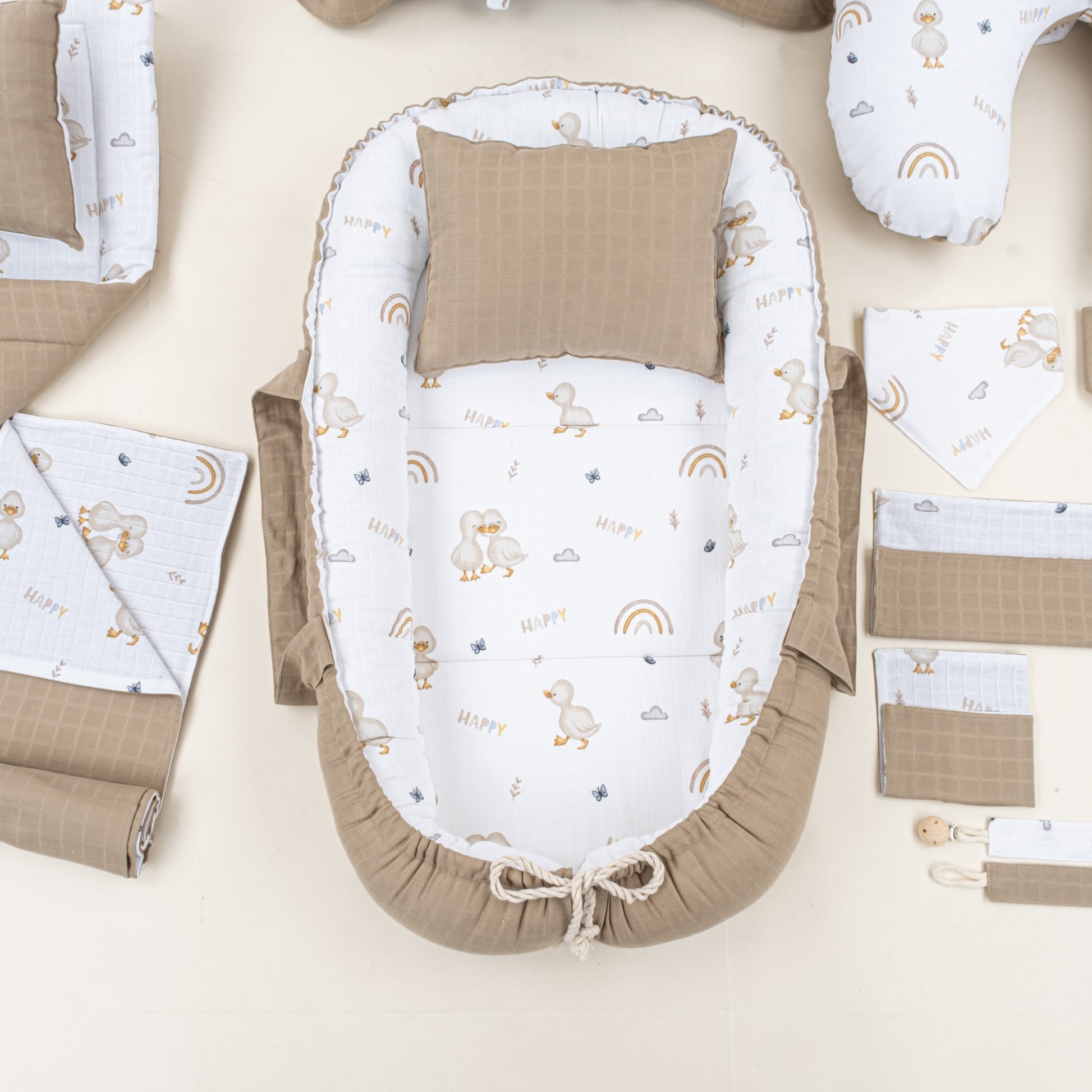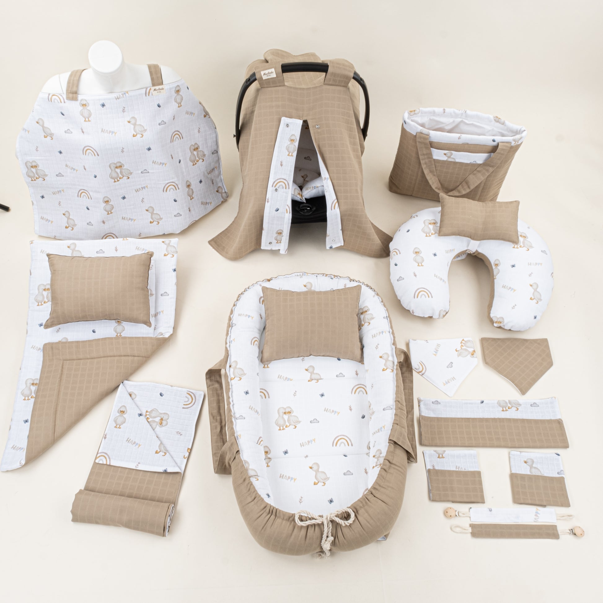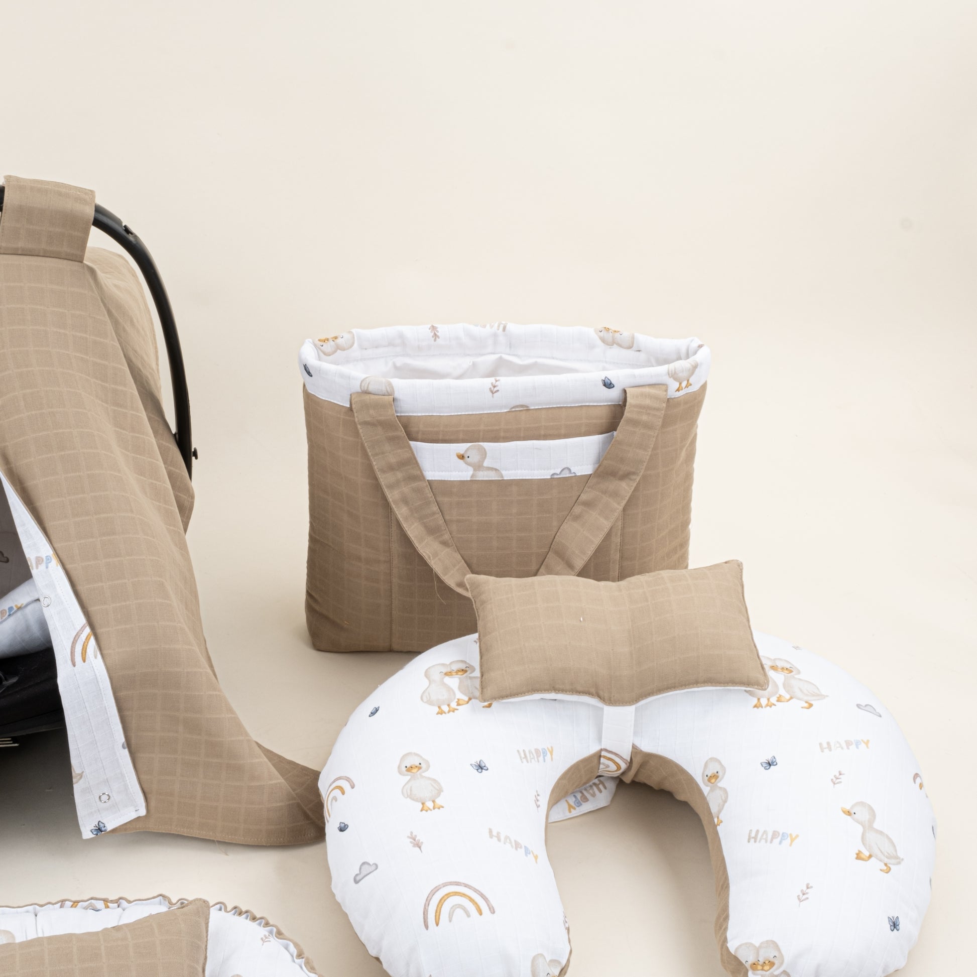18 Parça Full Set - Çift Taraflı - Toprak Muslin - Kahverengi Ördek