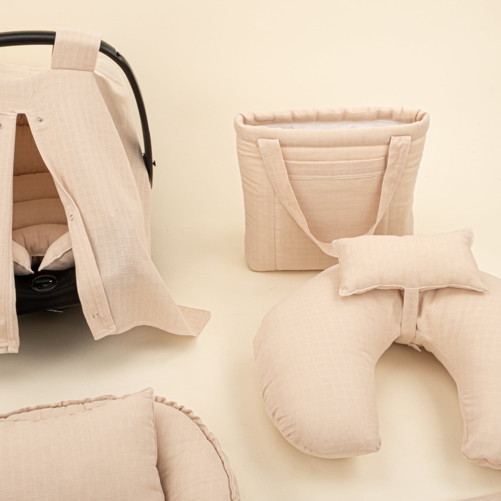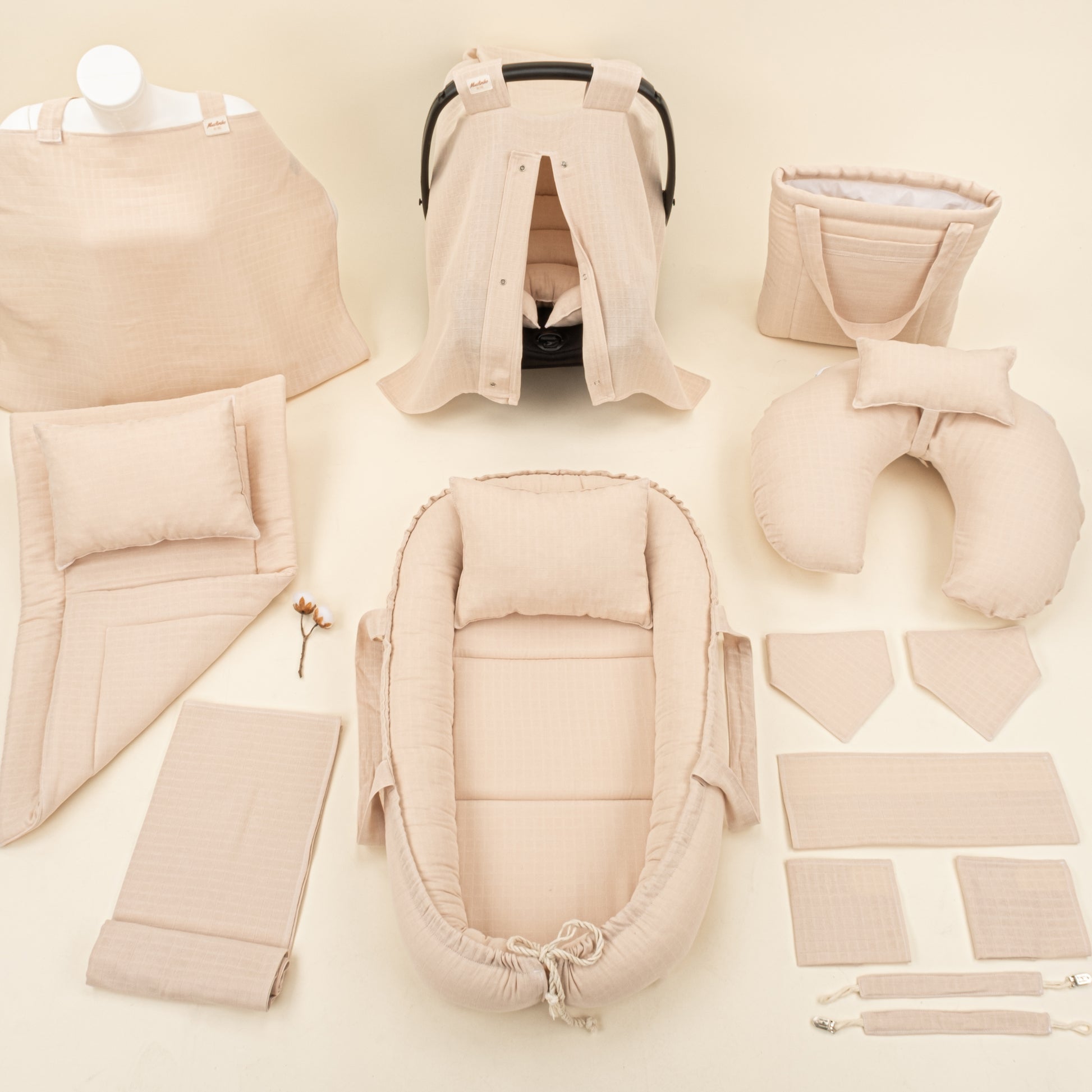 18 Parça Full Set - Tek Katlı - Kumsal Beji Muslin
