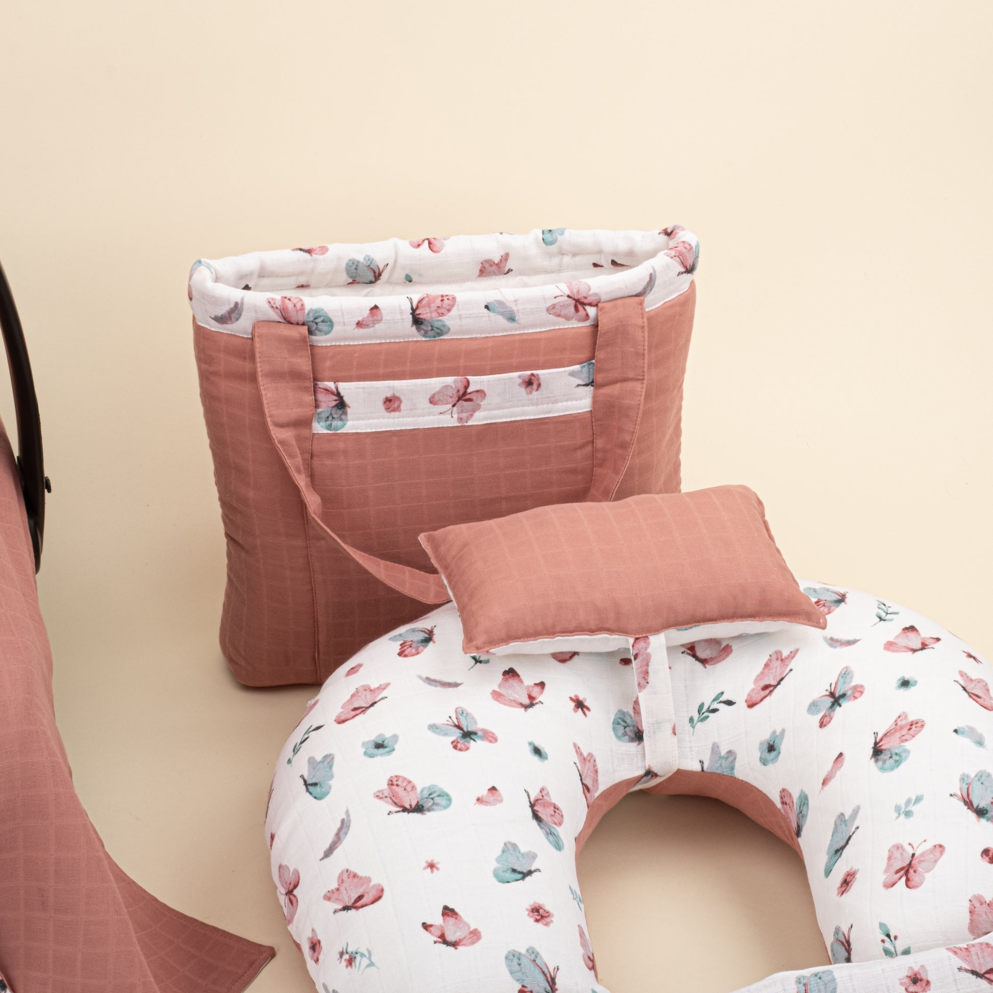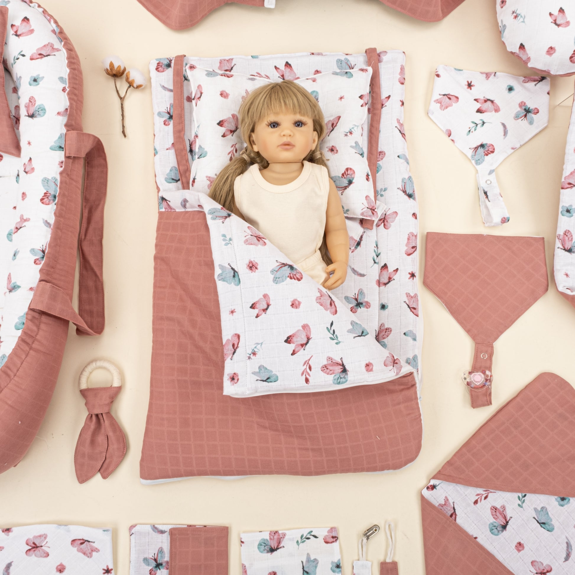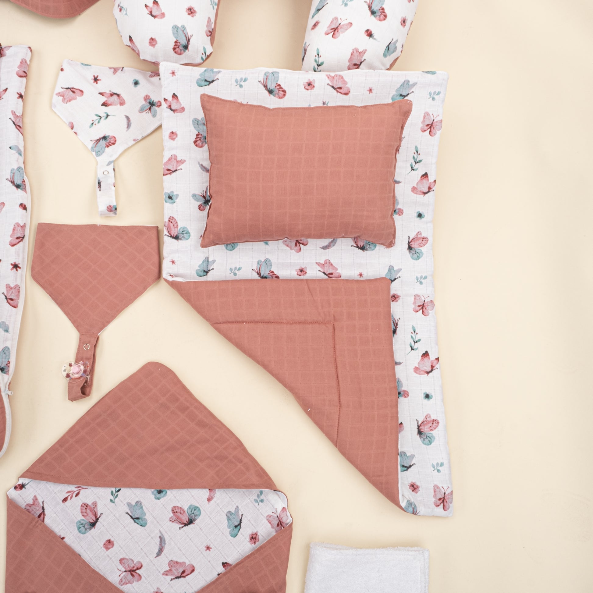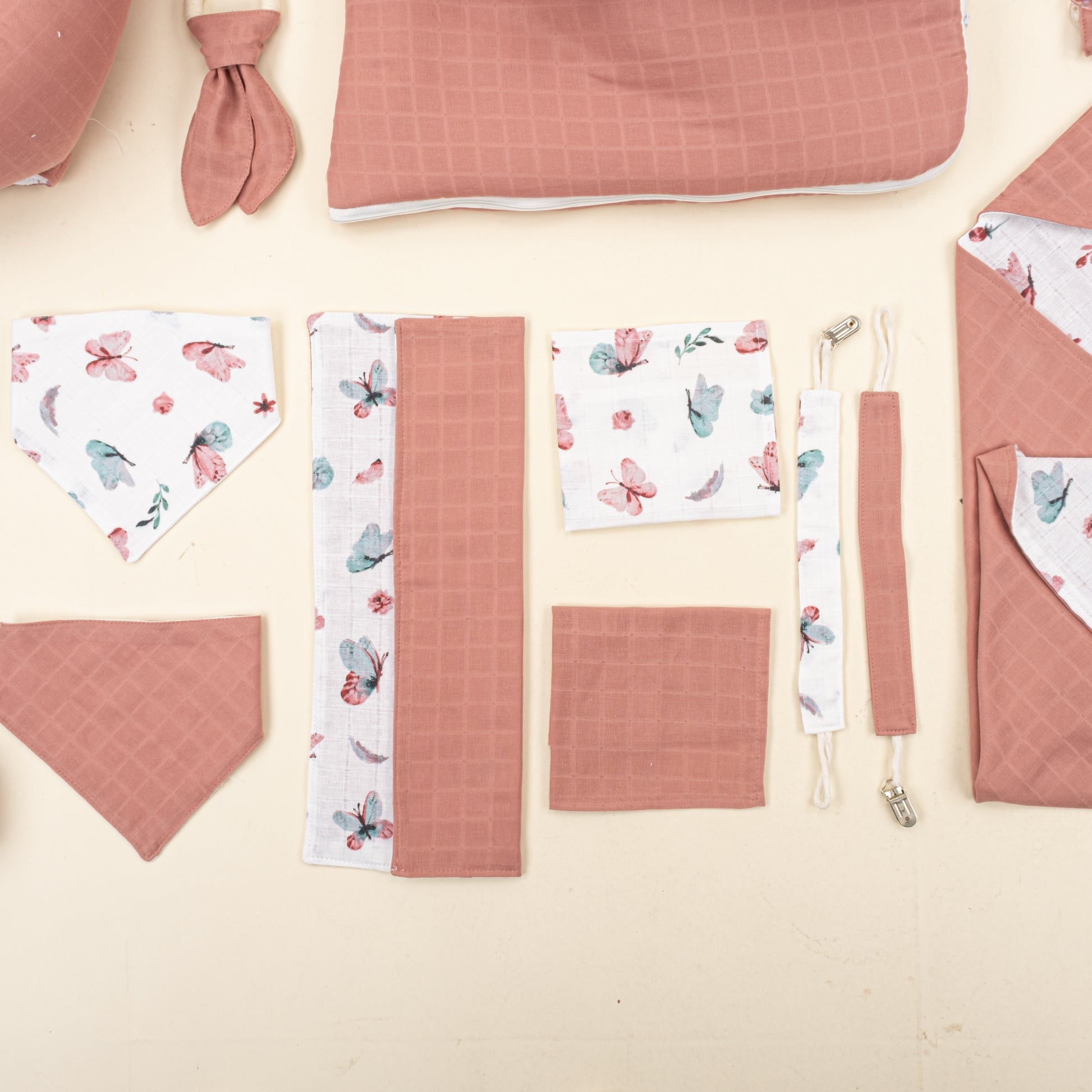 25 Parça Full Set - Çift Taraflı - Gül Kurusu Muslin - Kelebekler
