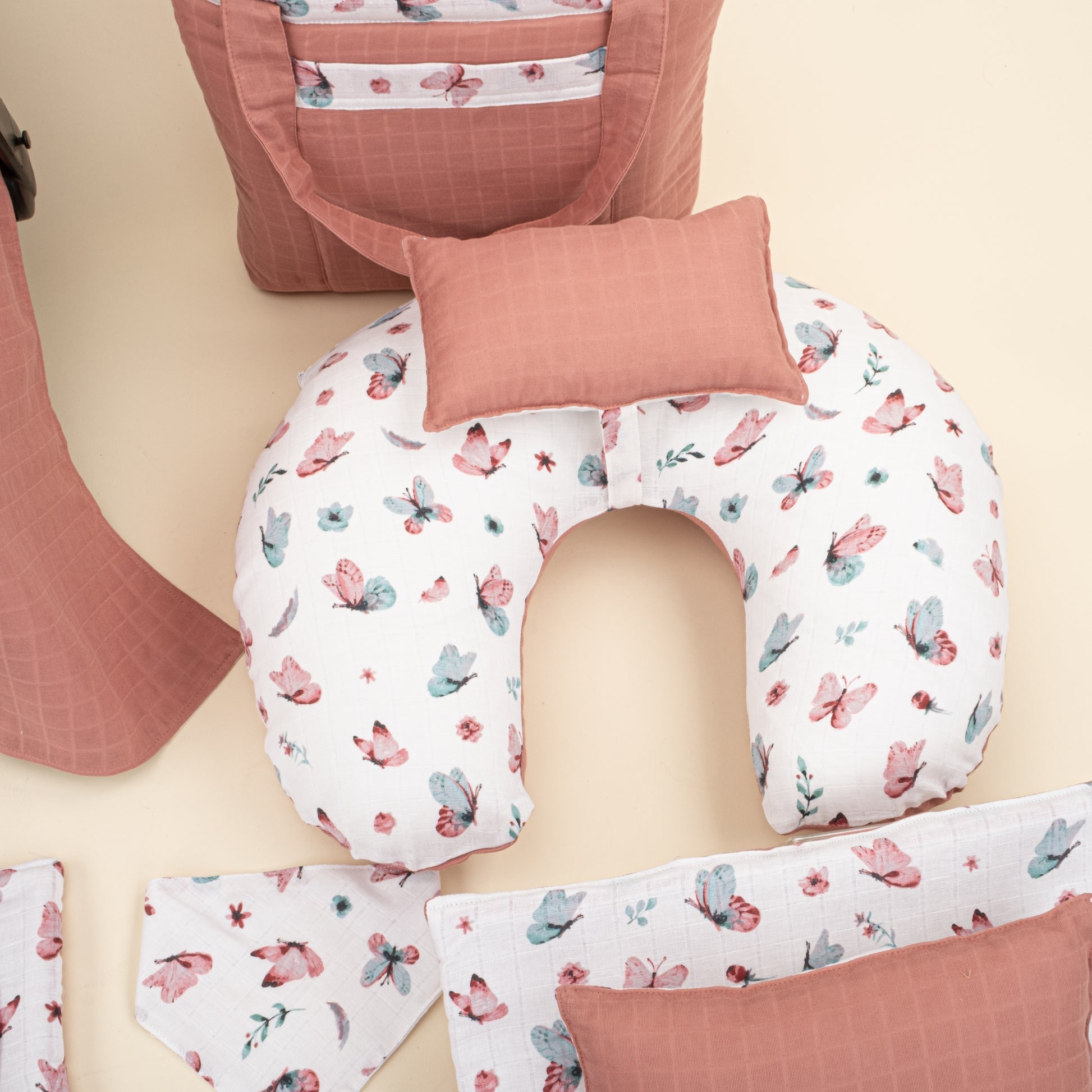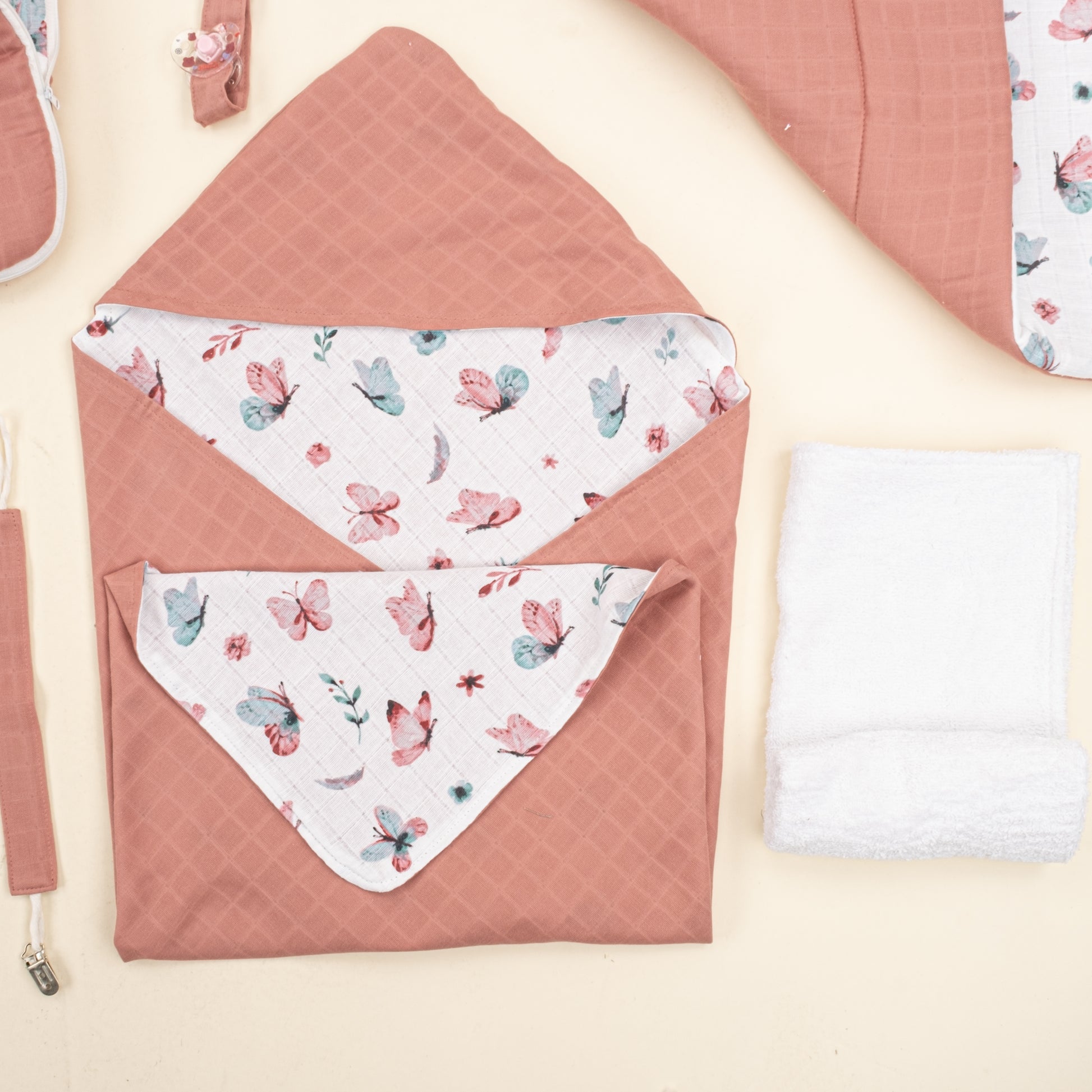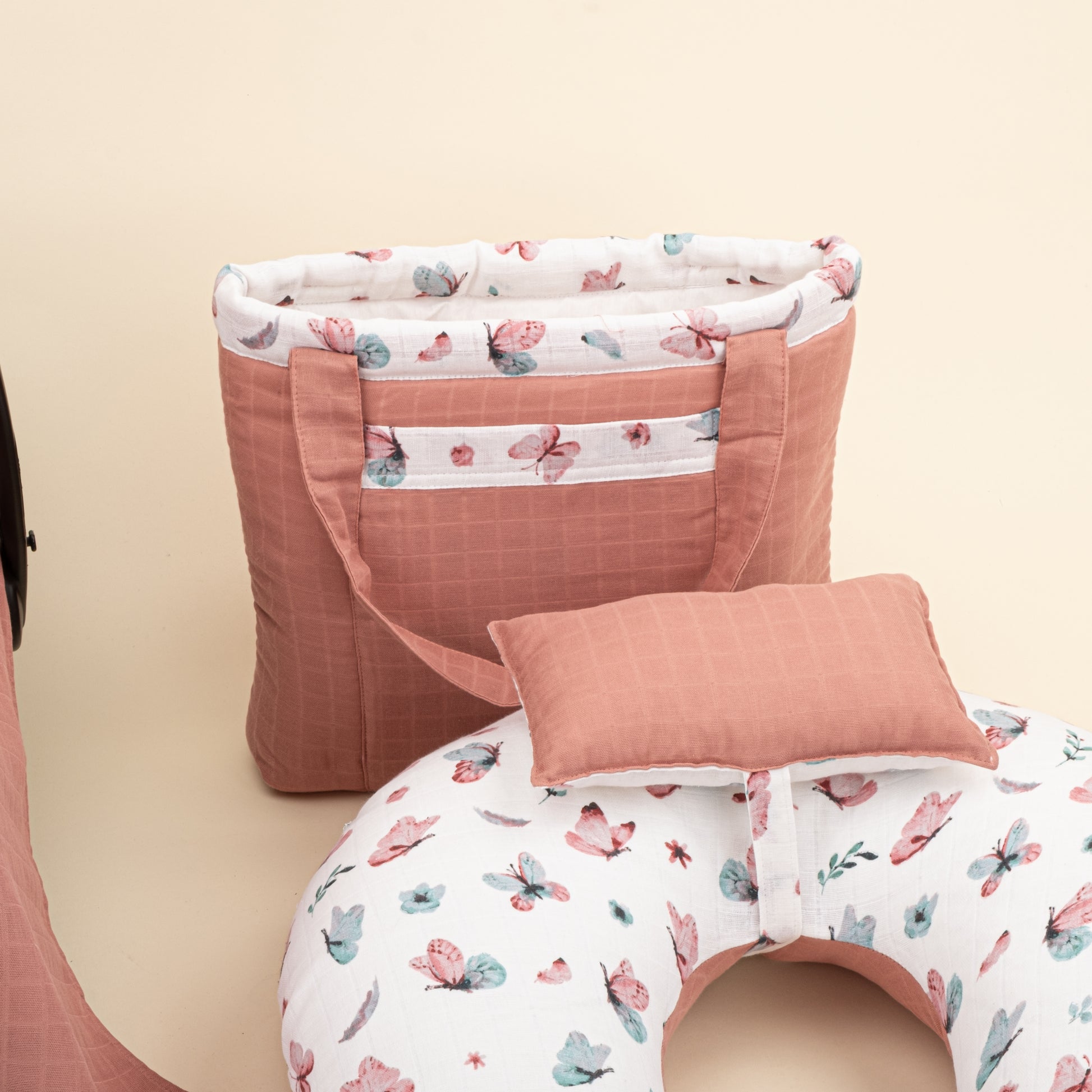 25 Parça Full Set - Çift Taraflı - Gül Kurusu Muslin - Kelebekler