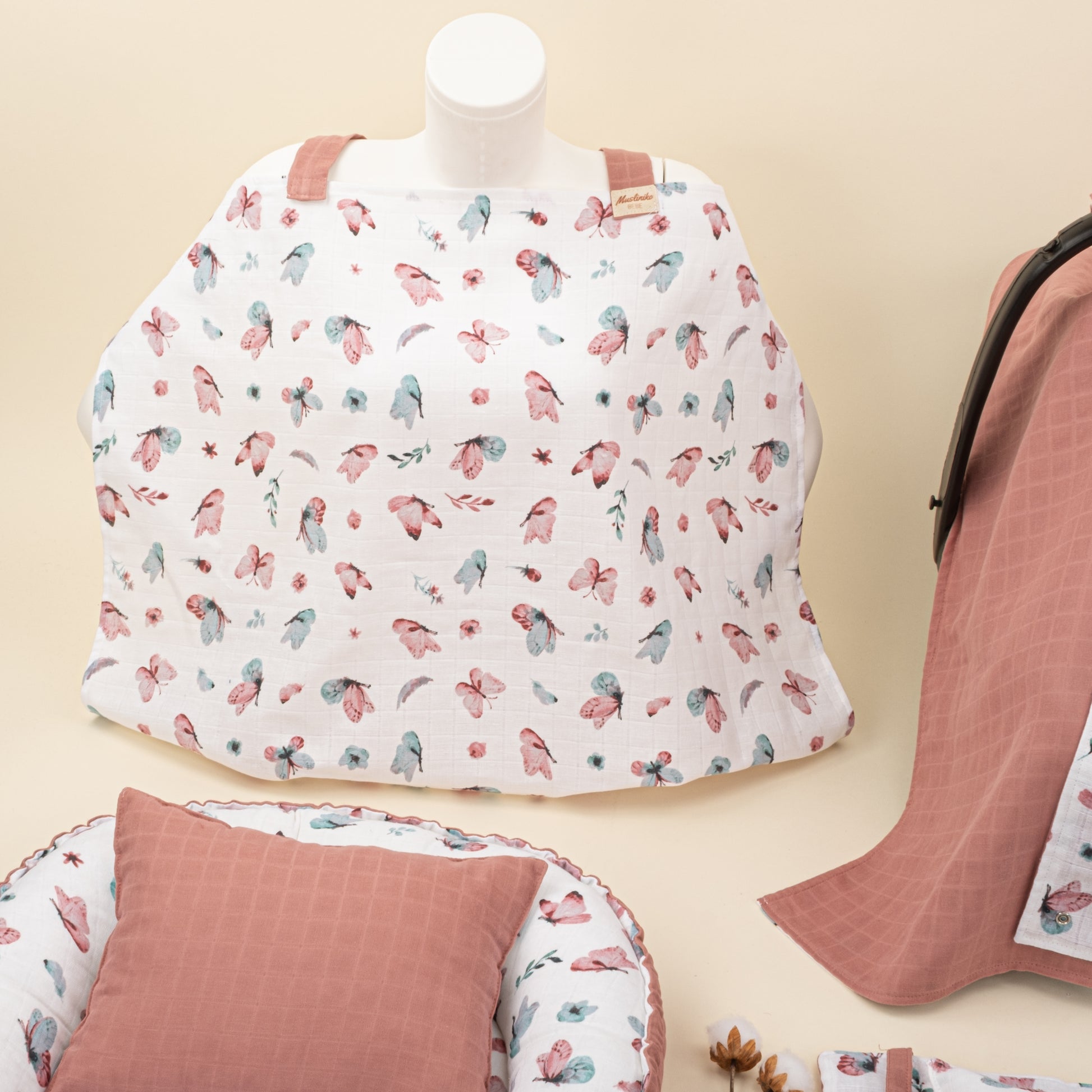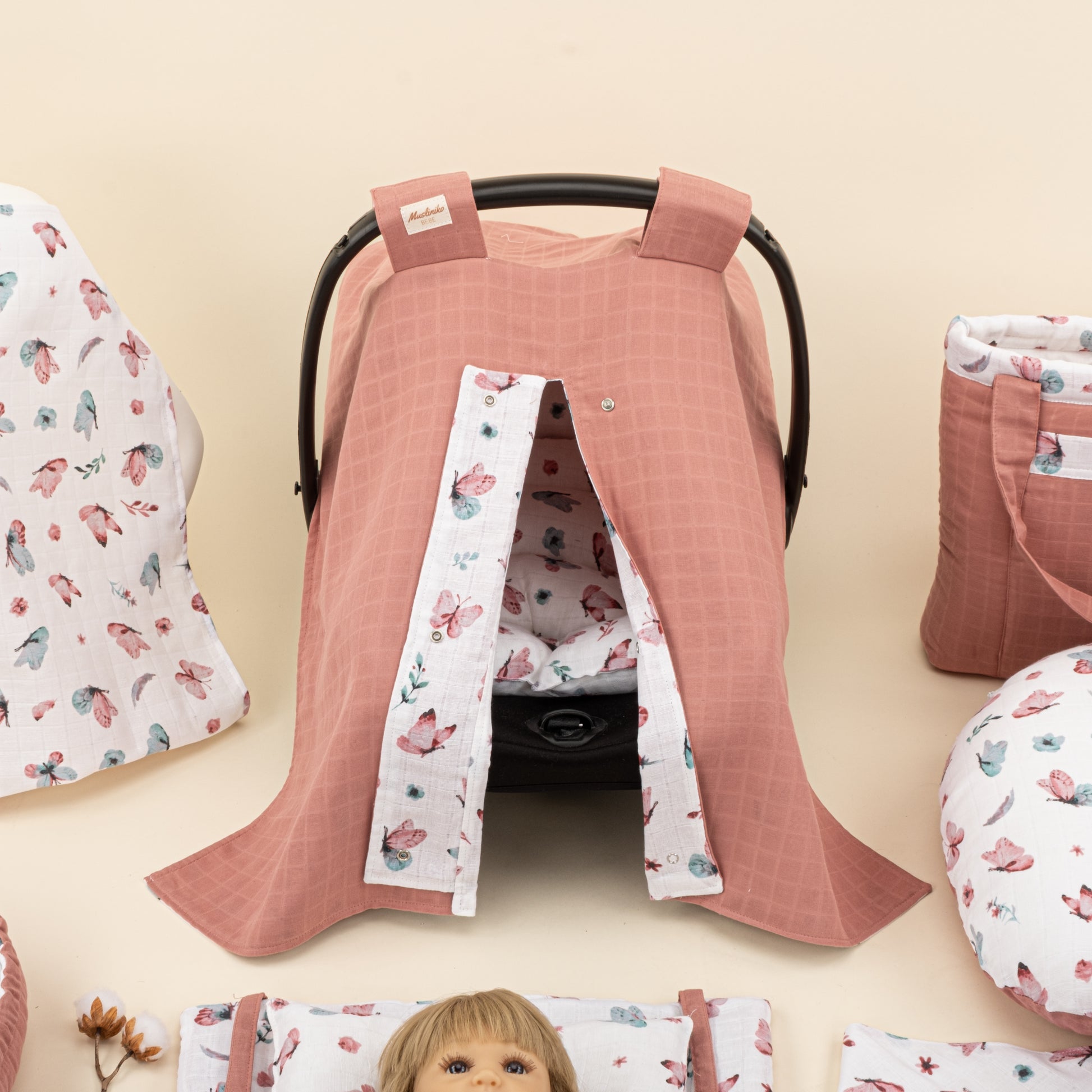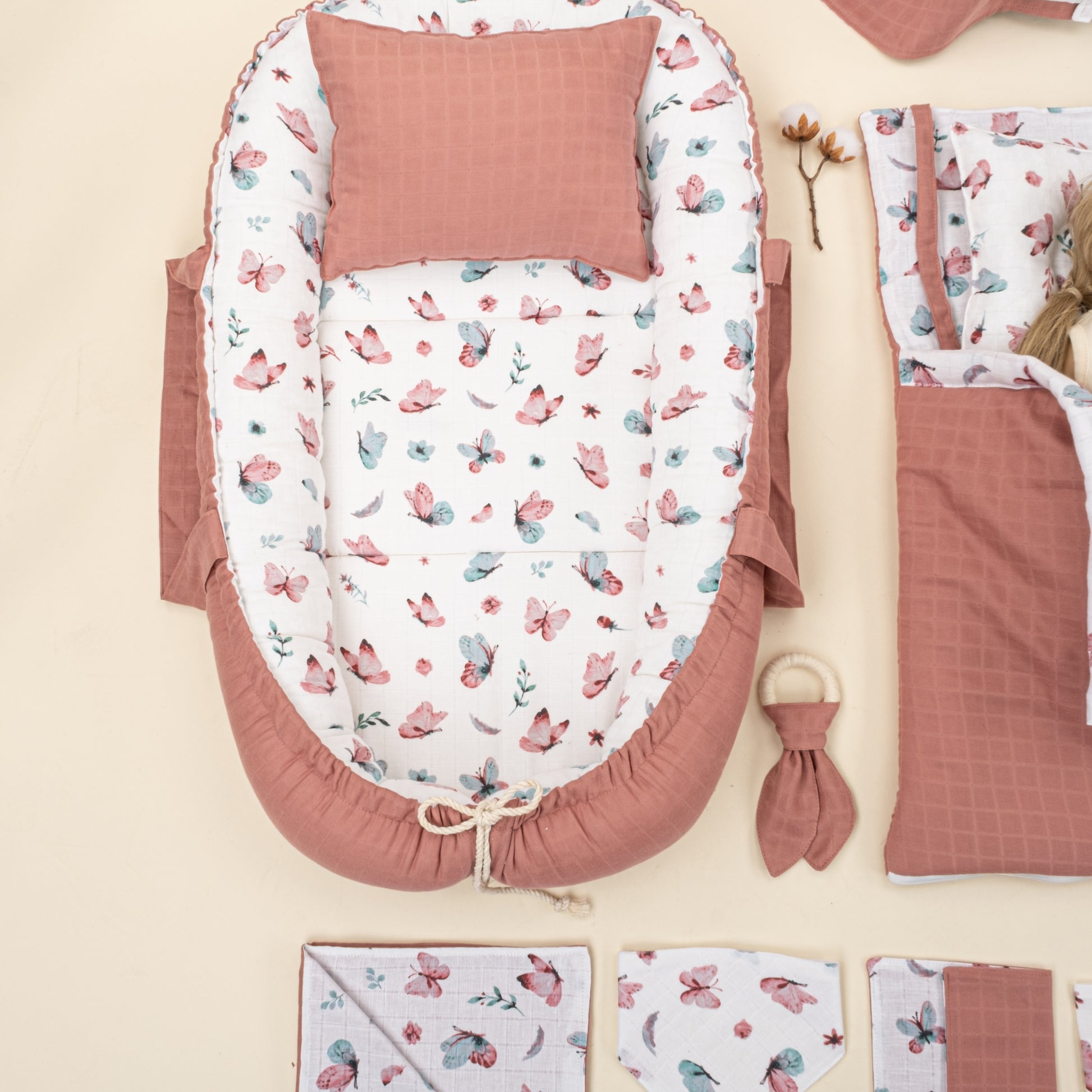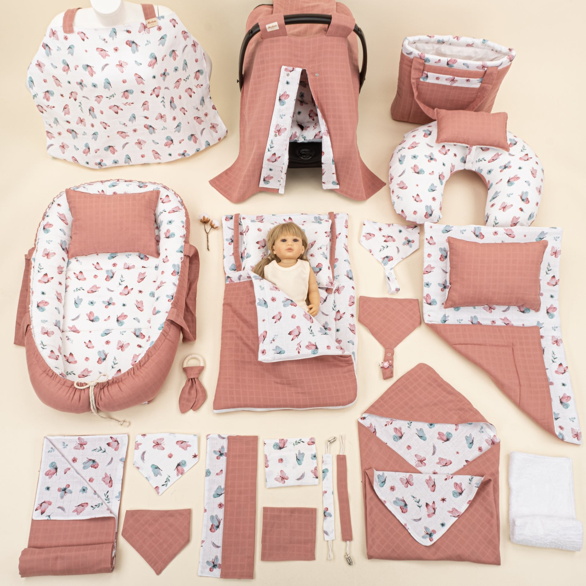 25 Parça Full Set - Çift Taraflı - Gül Kurusu Muslin - Kelebekler