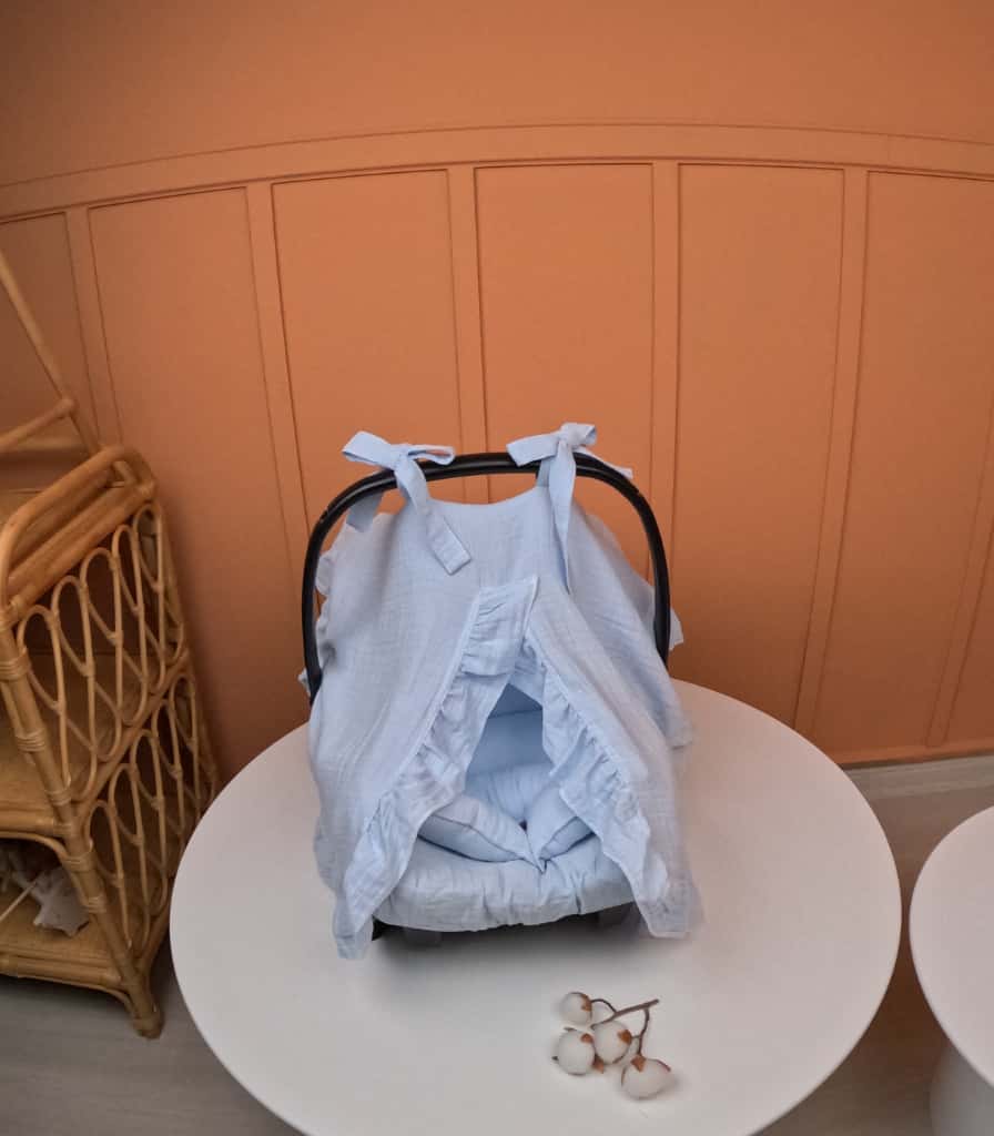 3'lü fırfırlı Puset Seti - 2 Katlı Organik Muslin Bebe Mavi
