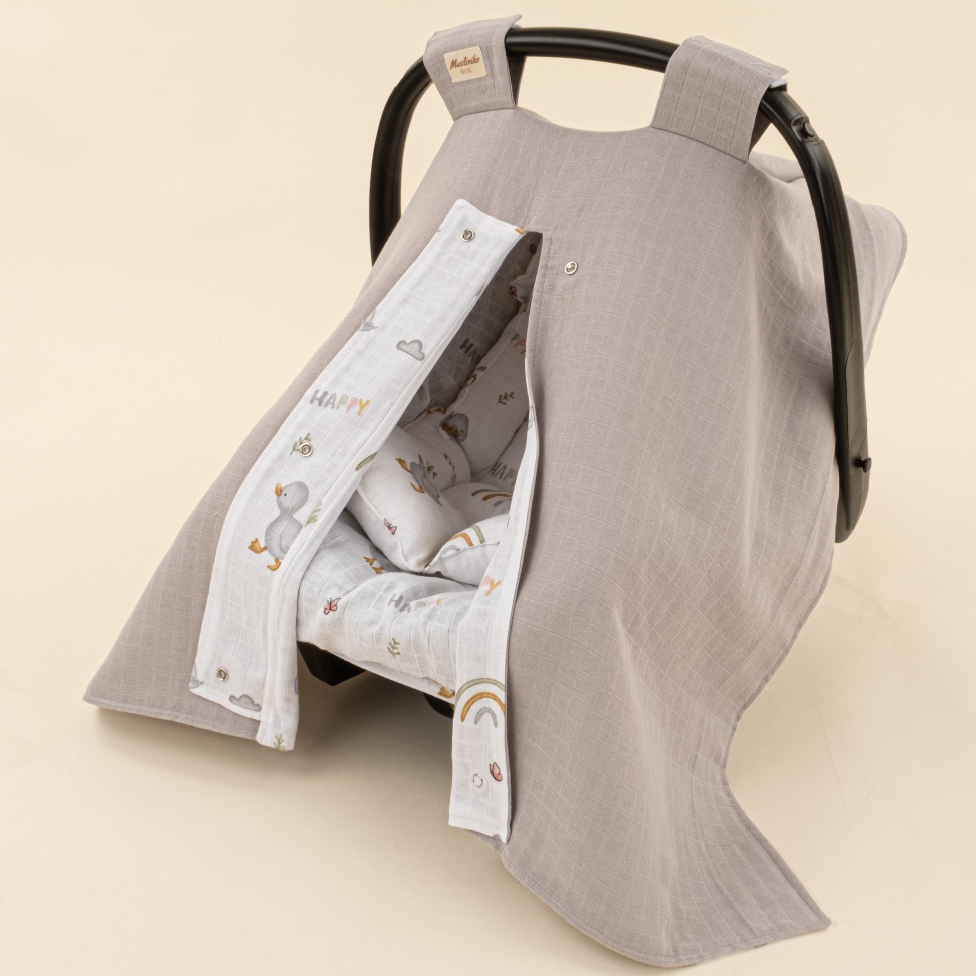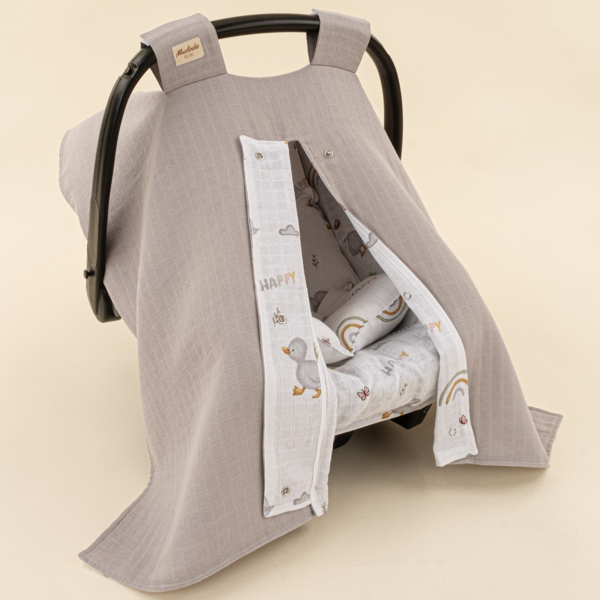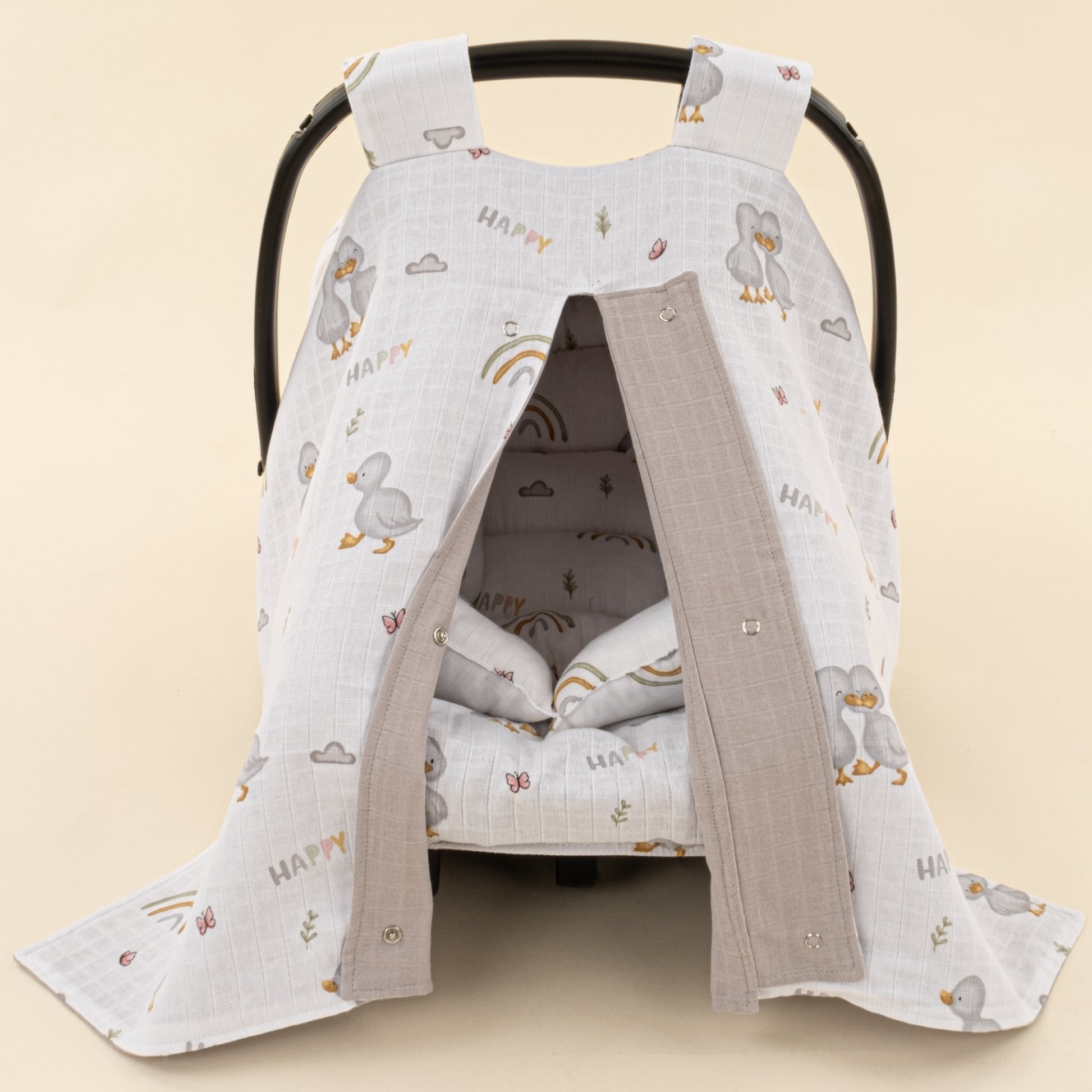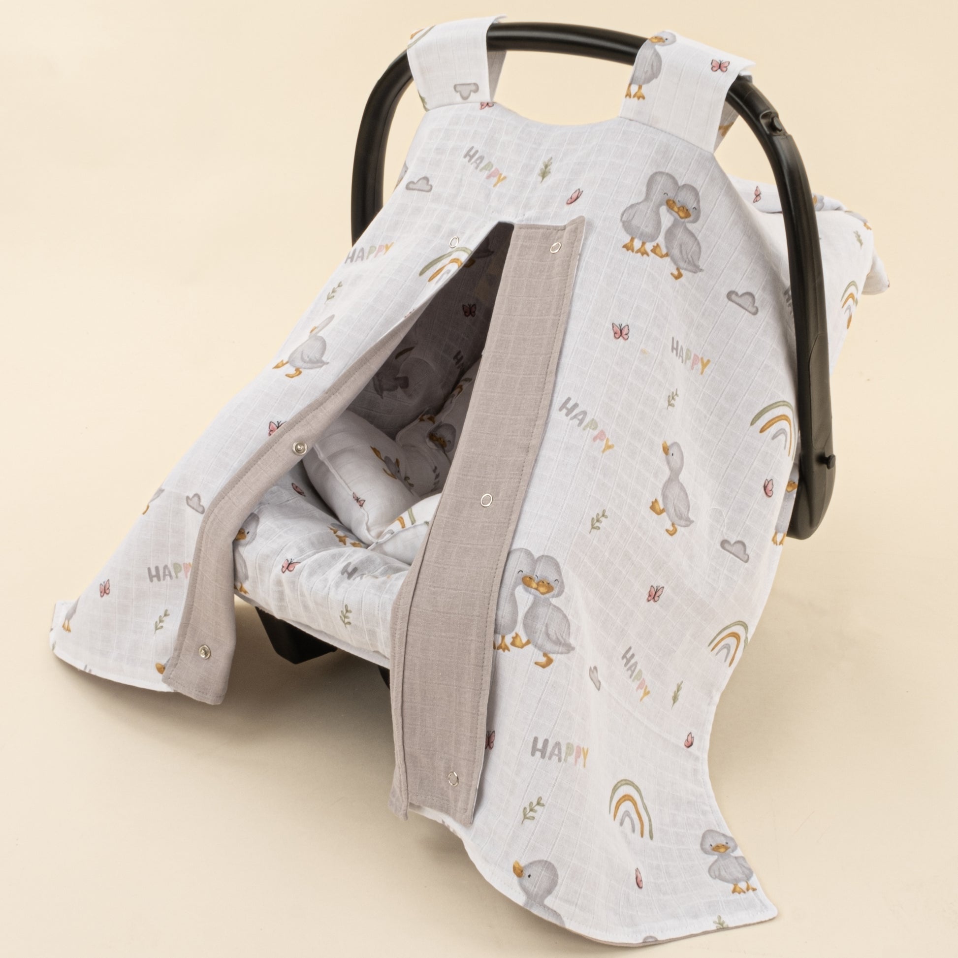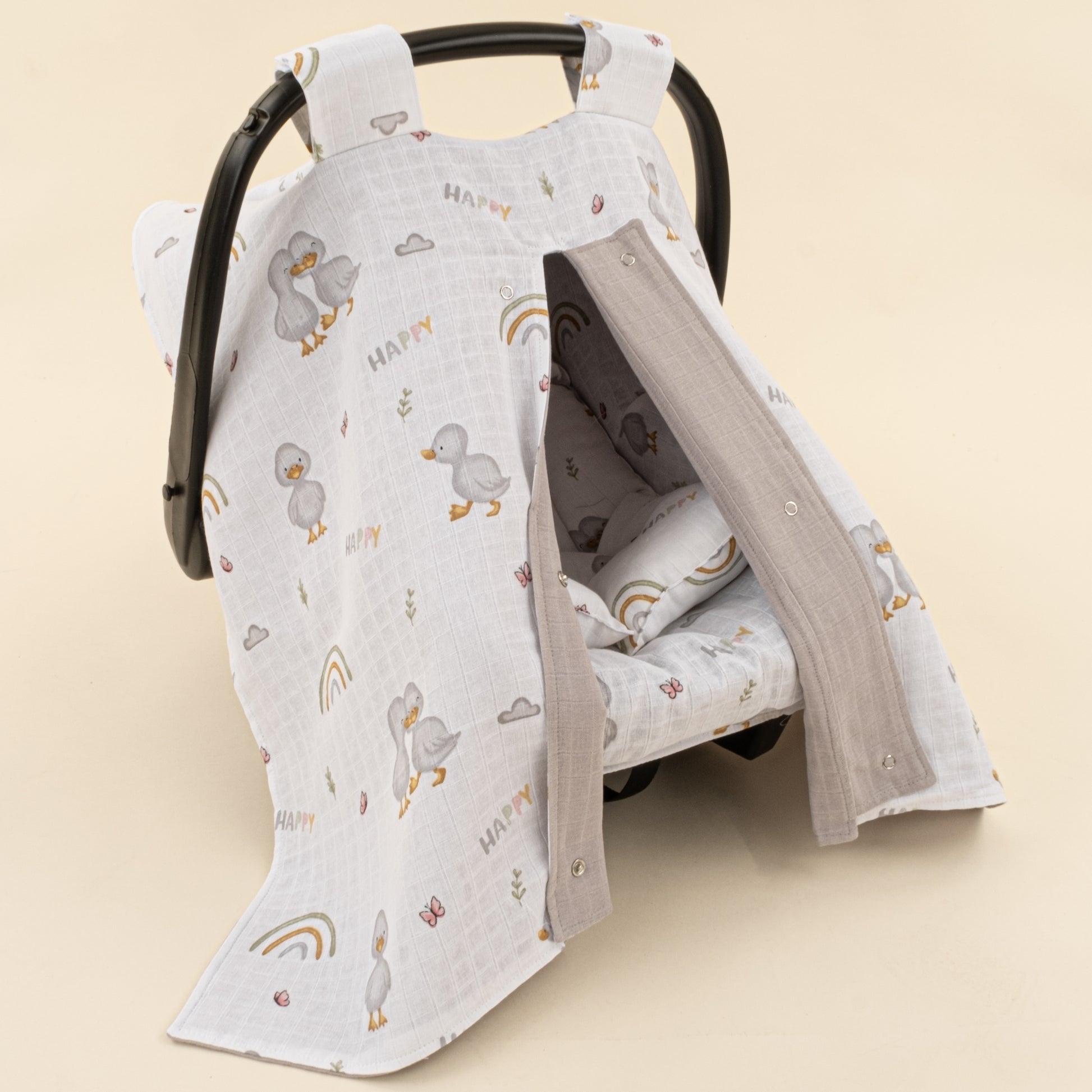 3'lü Puset Seti - Çift Taraflı - Gri Muslin - Ördekler