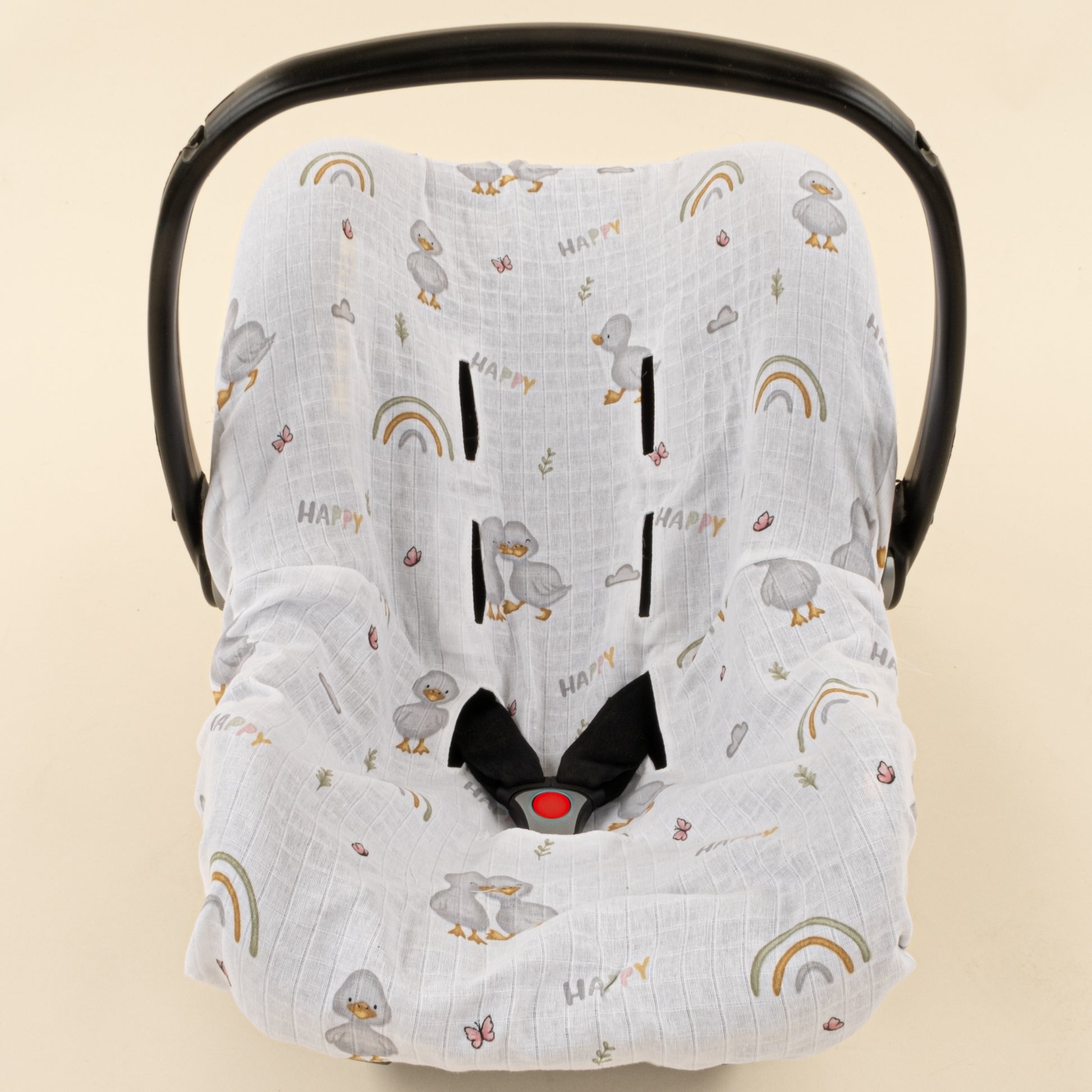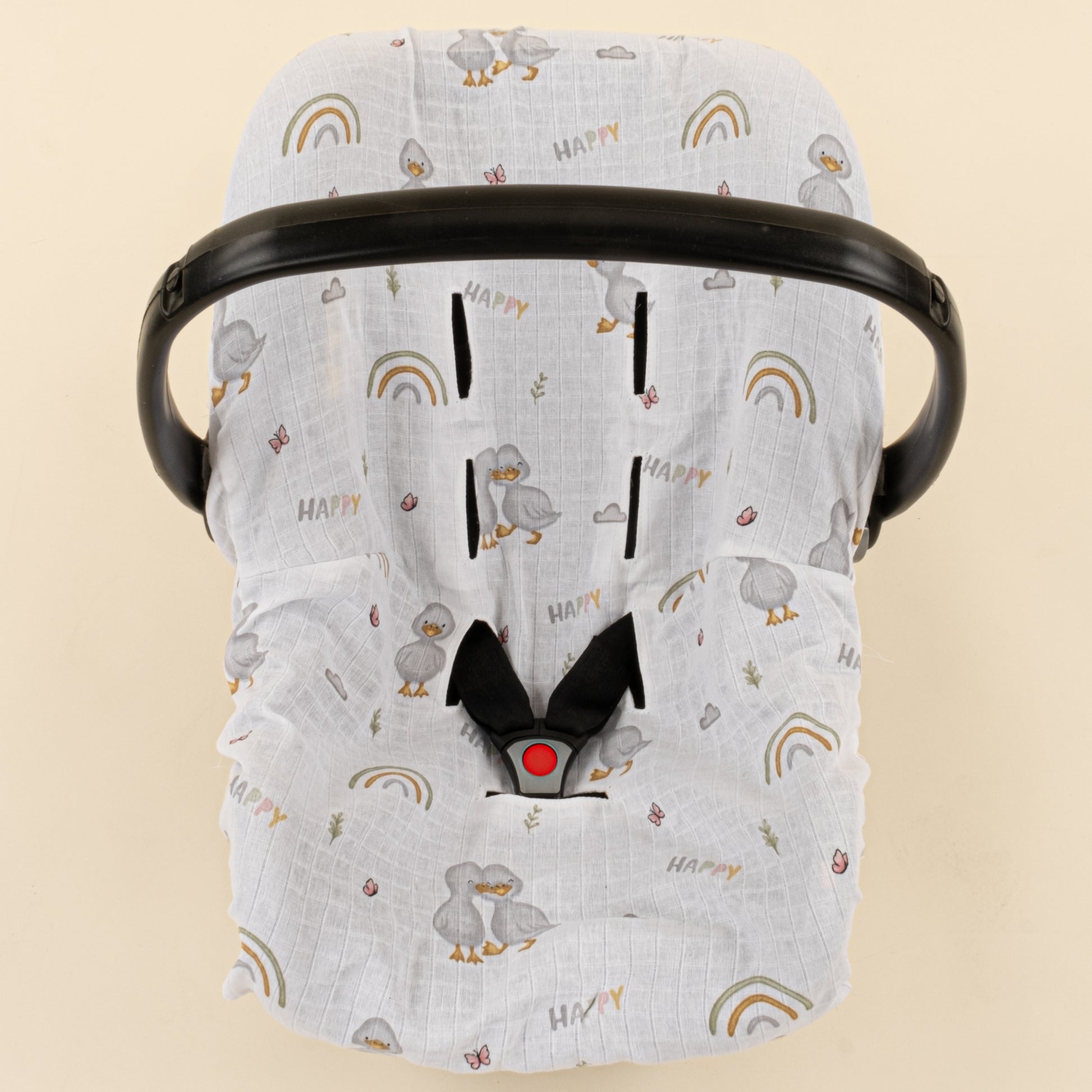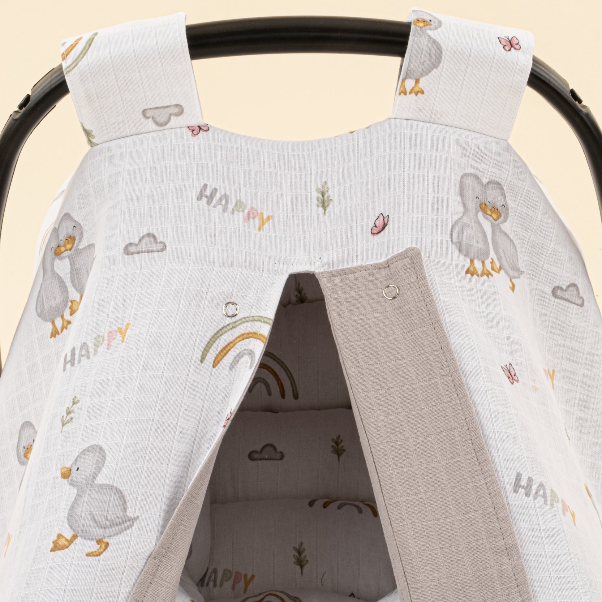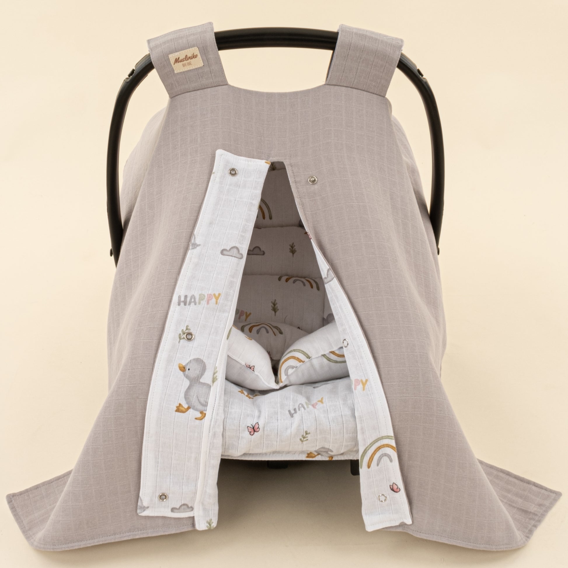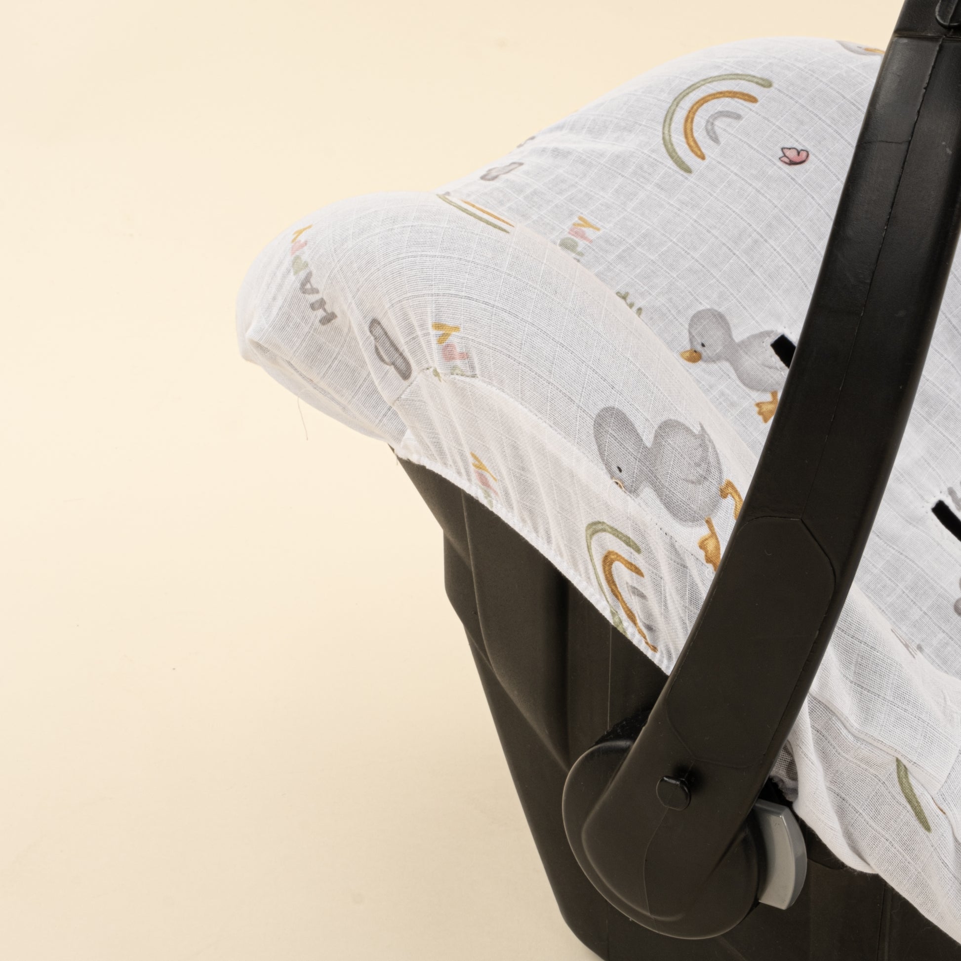 3'lü Puset Seti - Çift Taraflı - Gri Muslin - Ördekler
