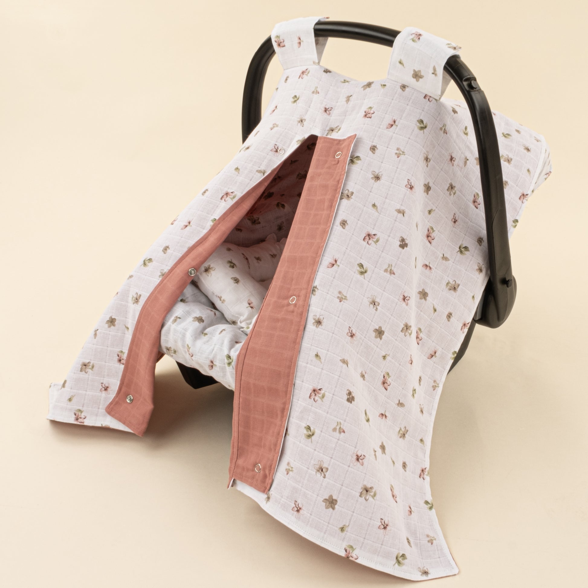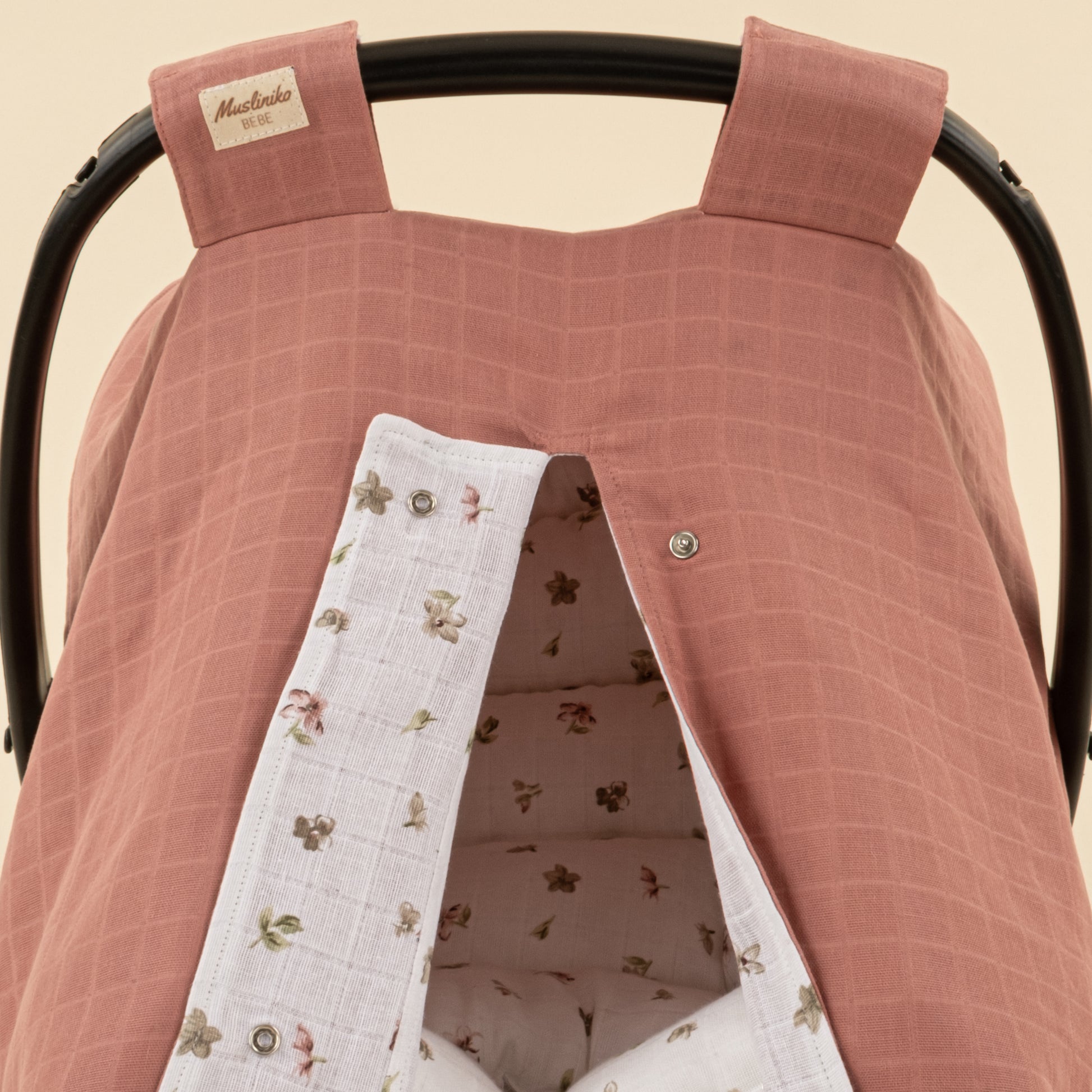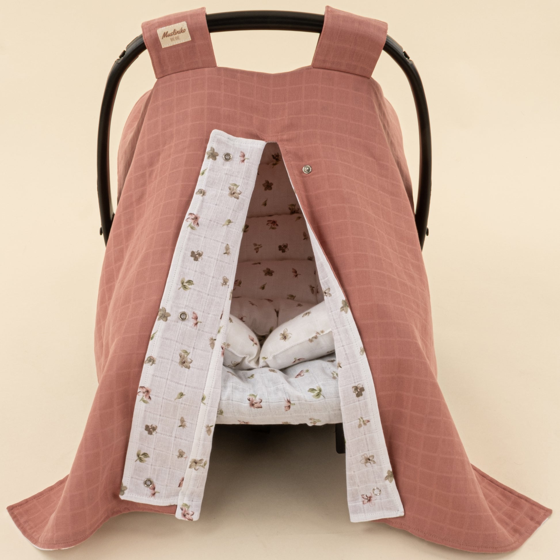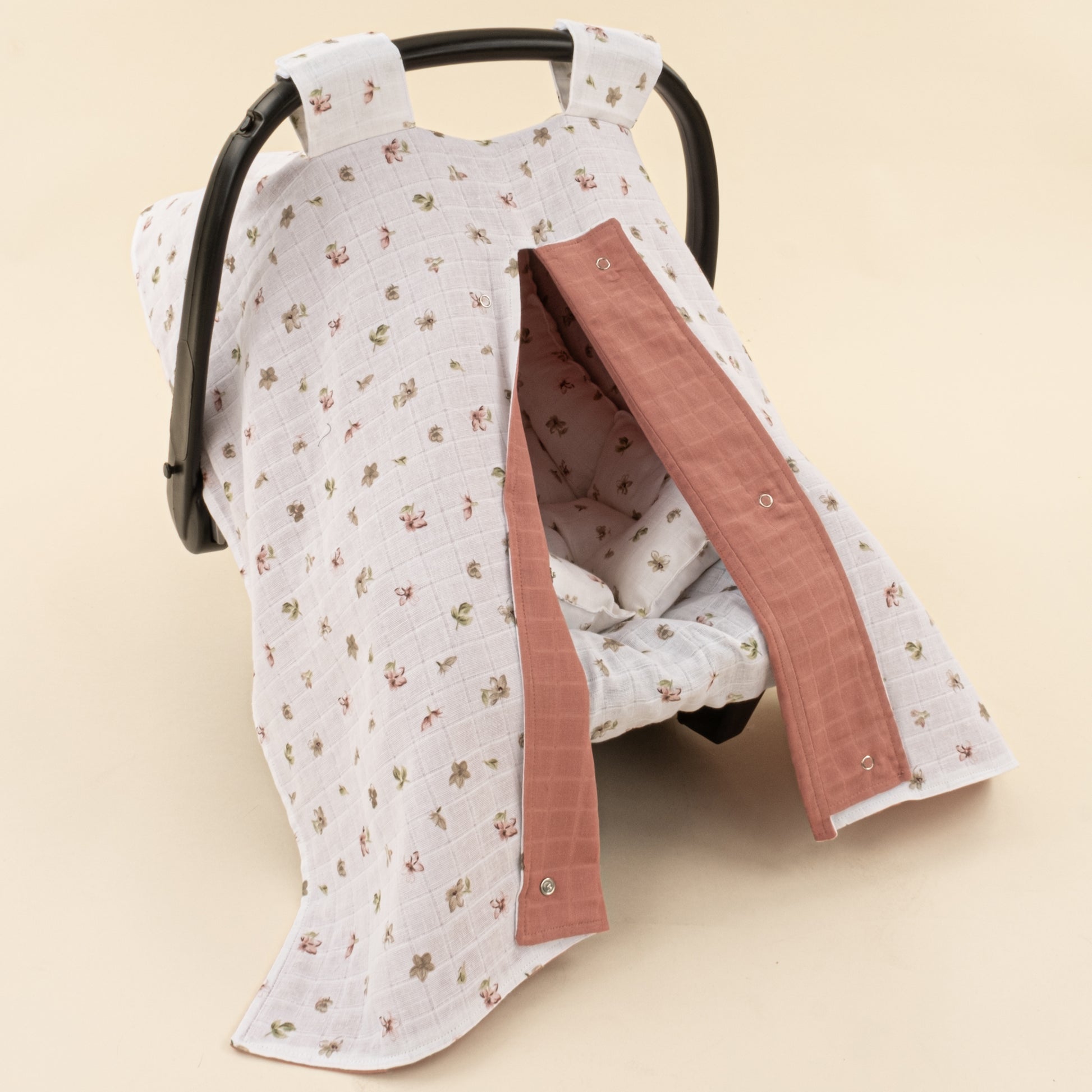 3'lü Puset Seti - Çift Taraflı - Gül Kurusu Muslin - Çiçekler