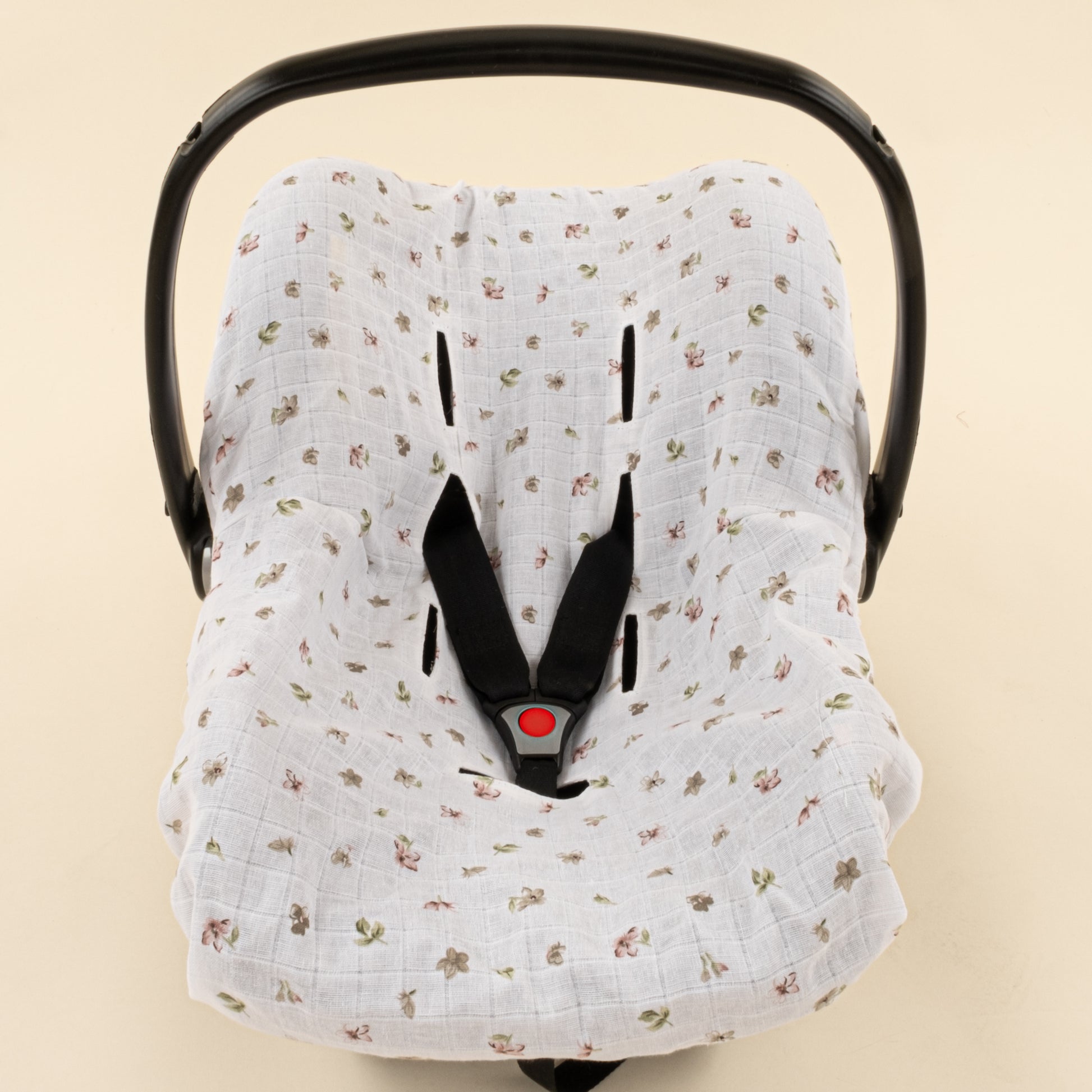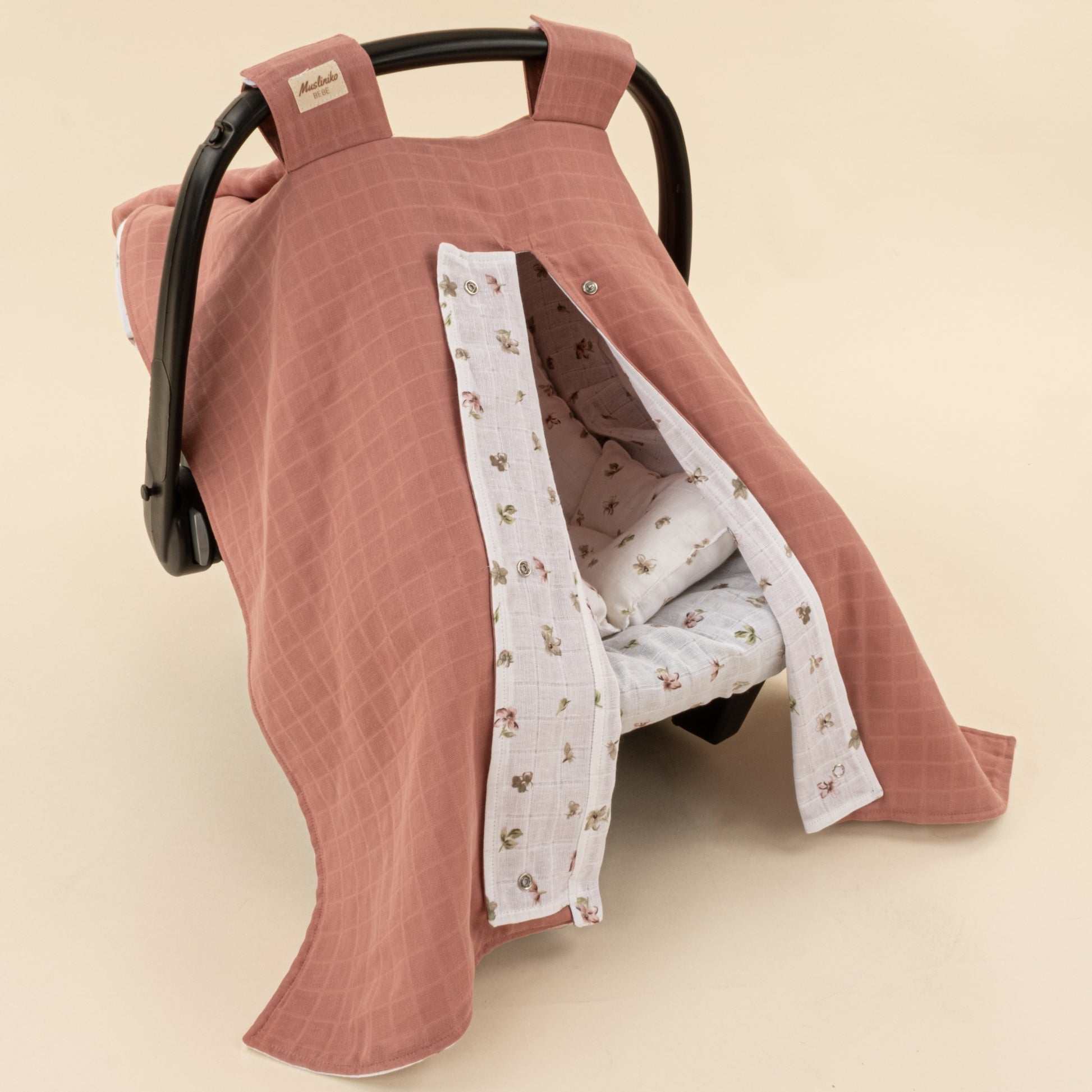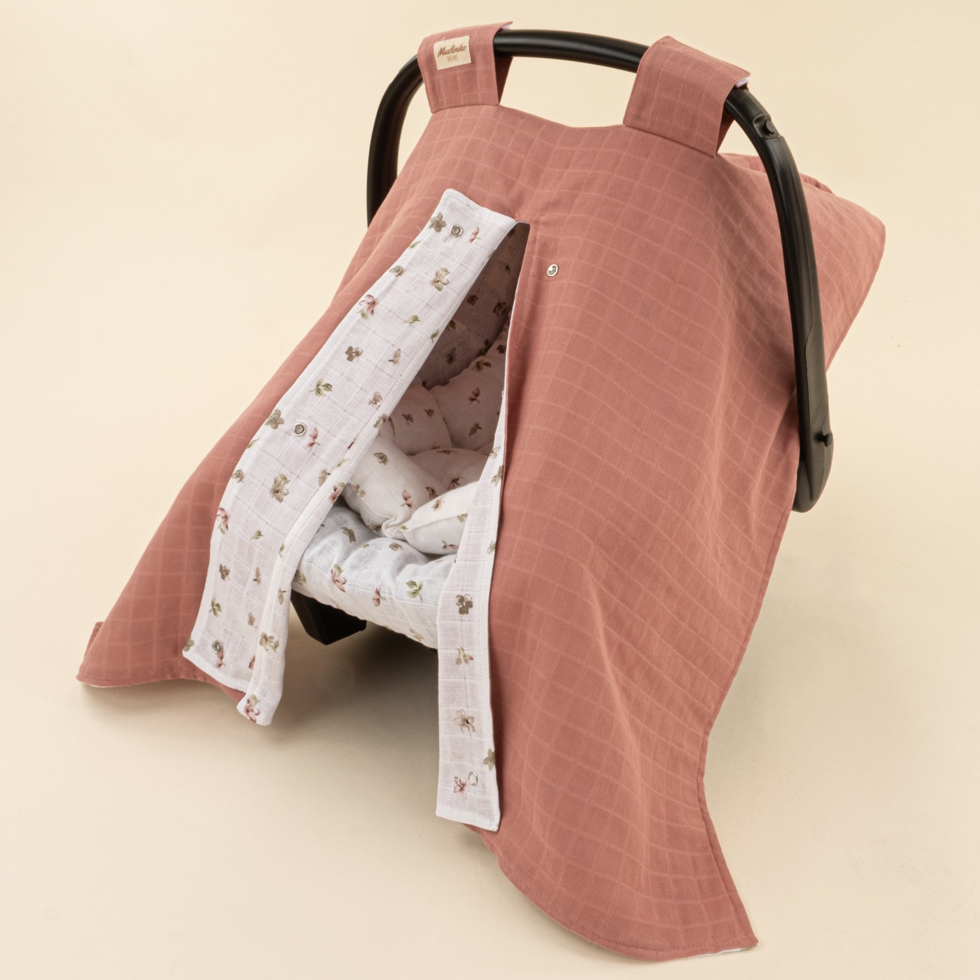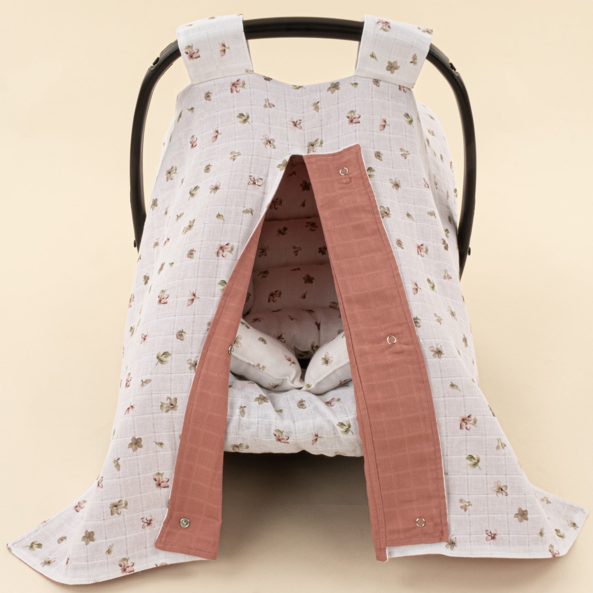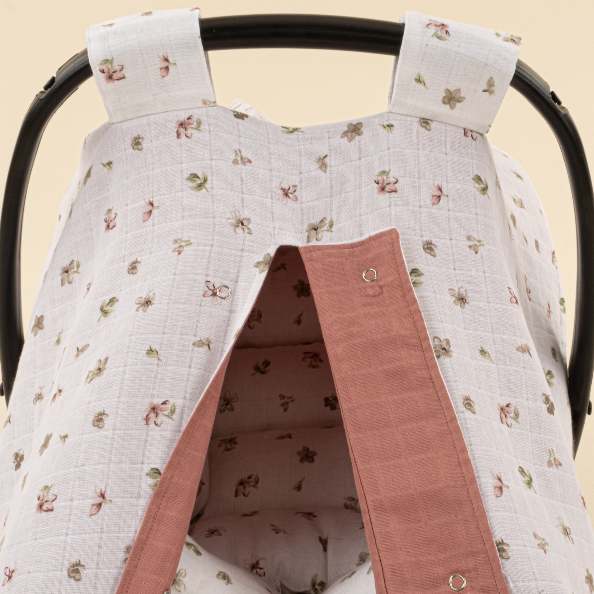 3'lü Puset Seti - Çift Taraflı - Gül Kurusu Muslin - Çiçekler
