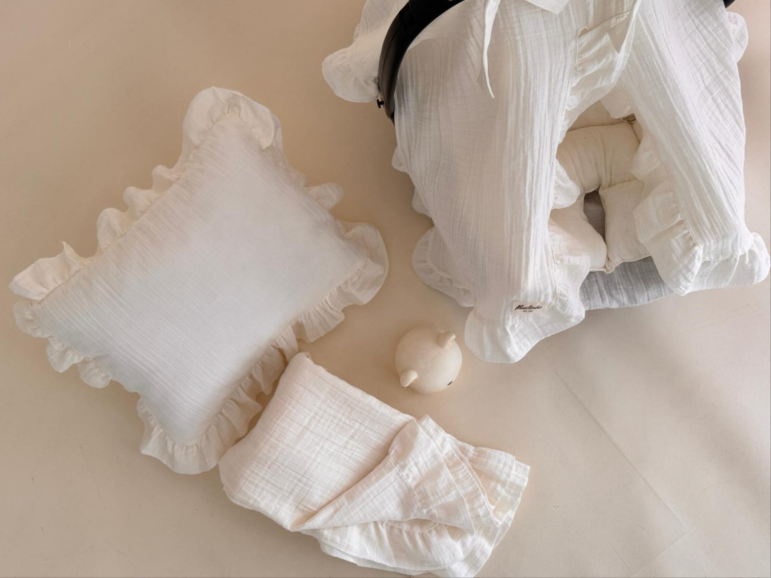 5 Parça Fırfırlı Avantajlı Set - 2 Katlı Organik muslin krem