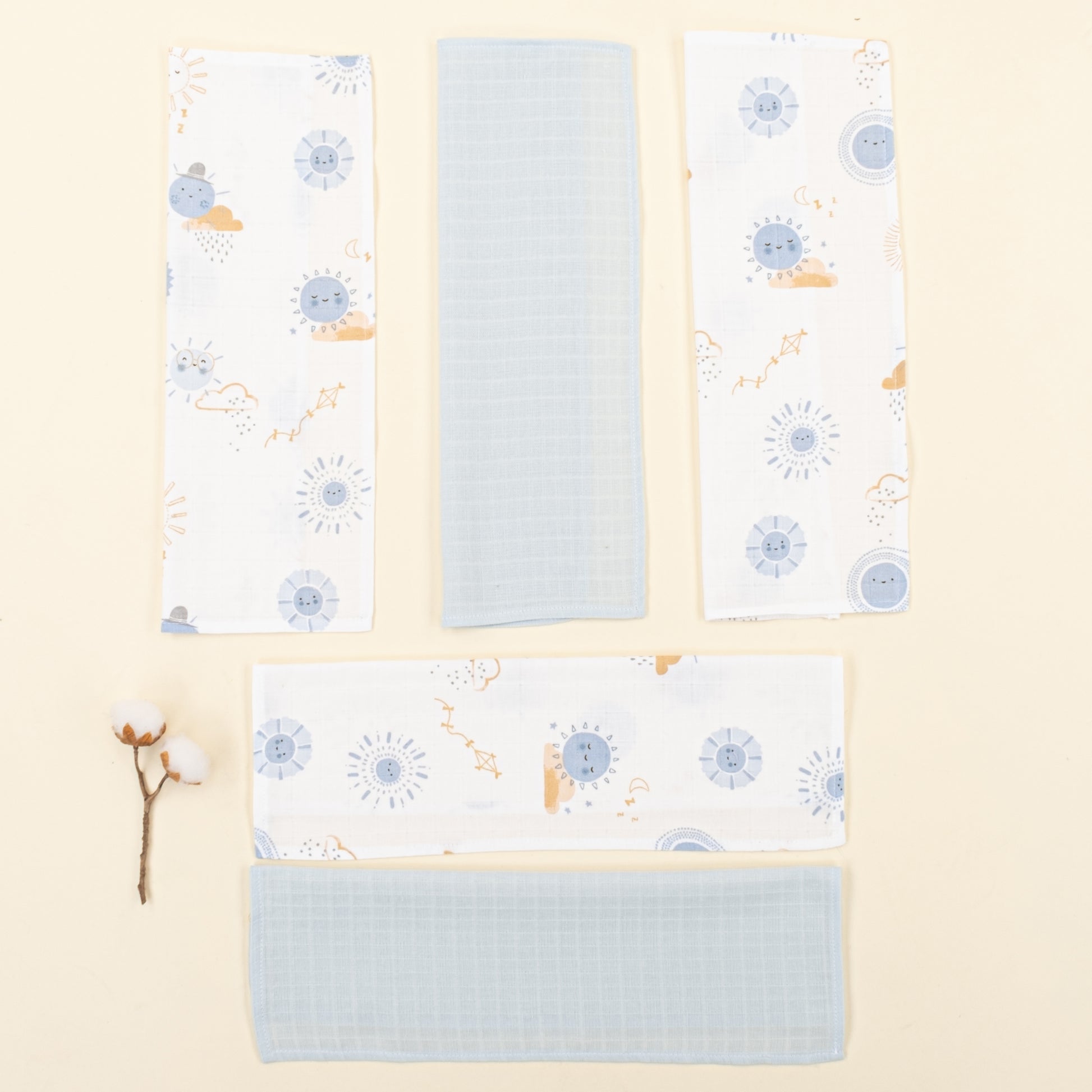 5'li Omuz Mendili Set - Bebe Mavisi Muslin - Mavi Güneş