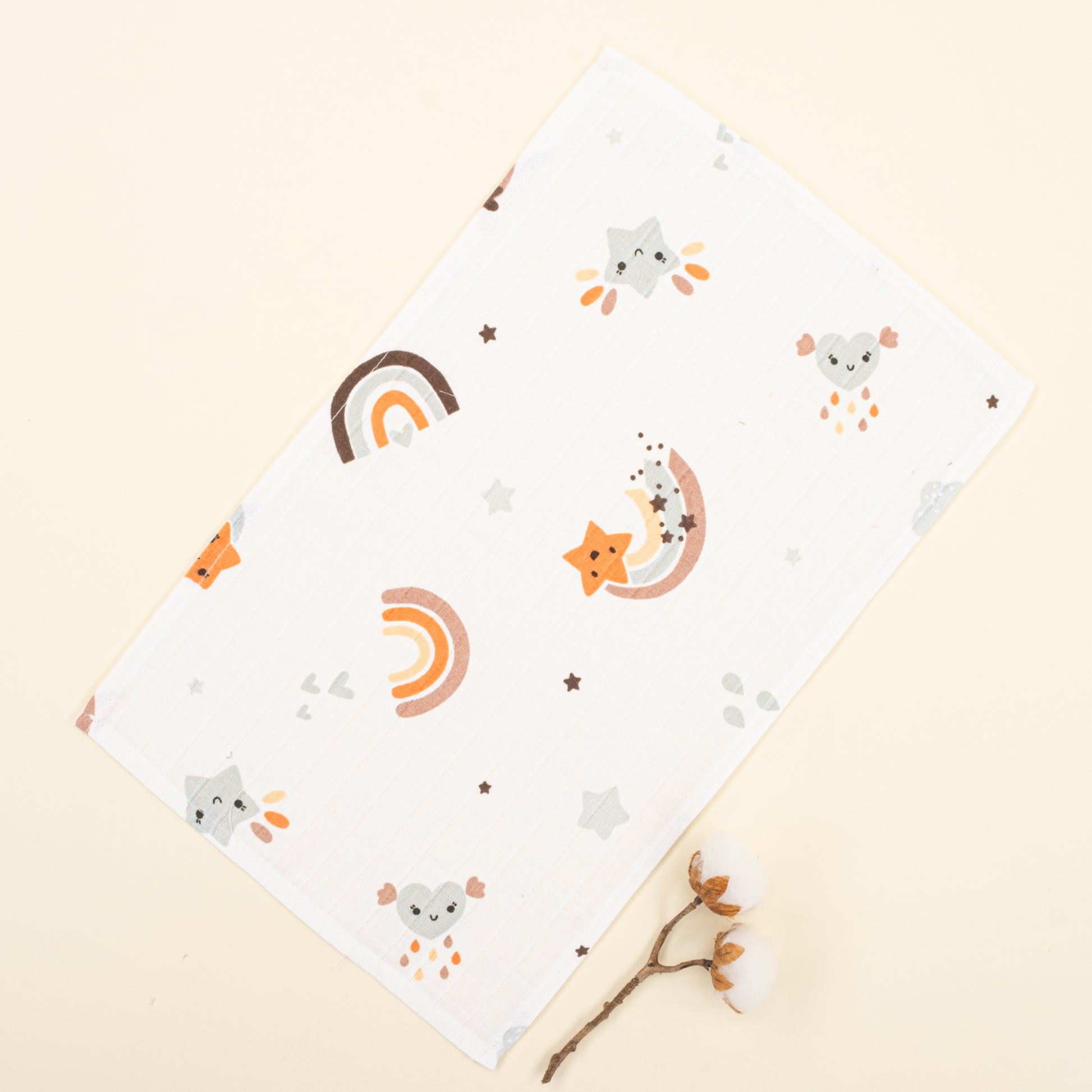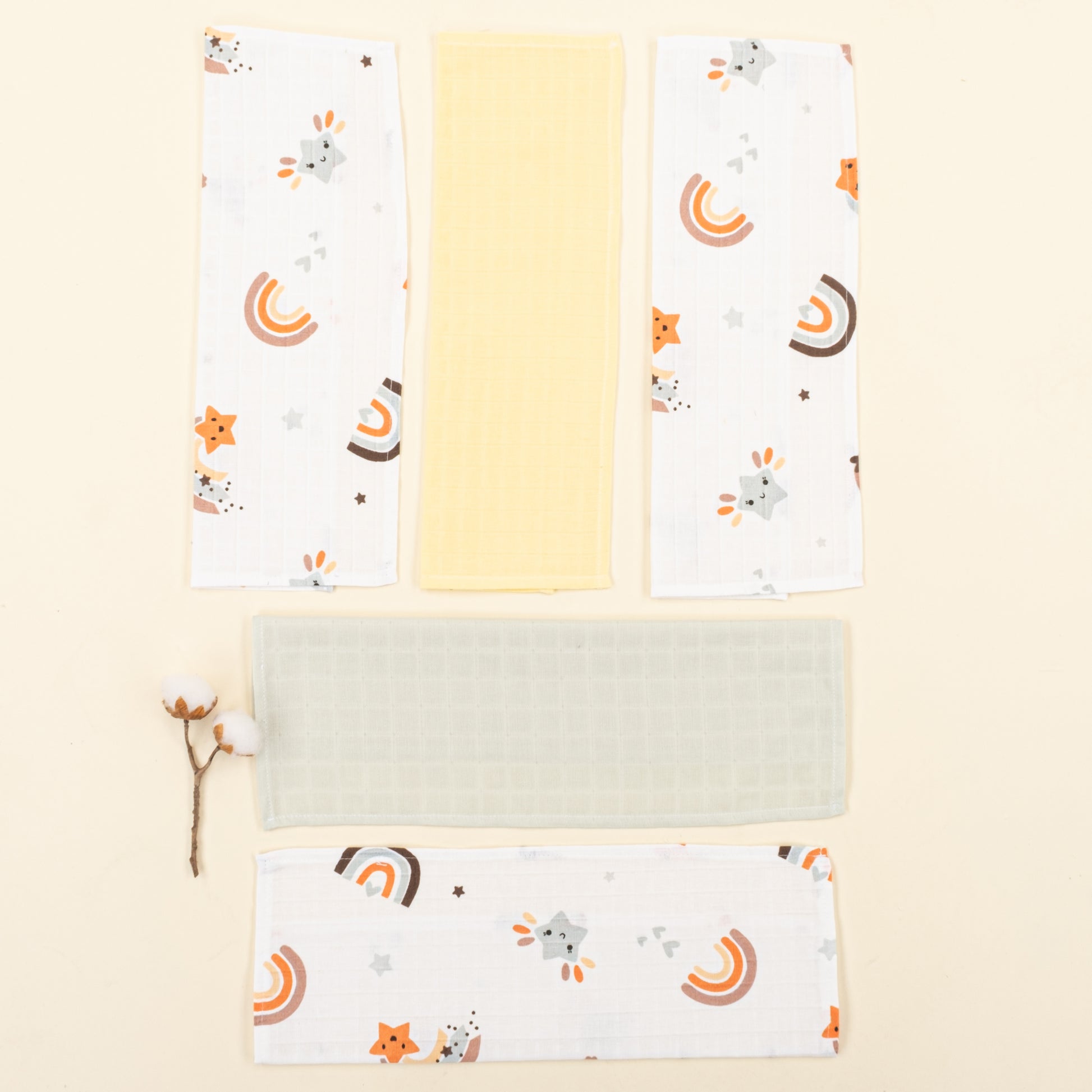 5'li Omuz Mendili Set - Sarı Muslin - Mint Muslin - Turuncu Gökkuşağı