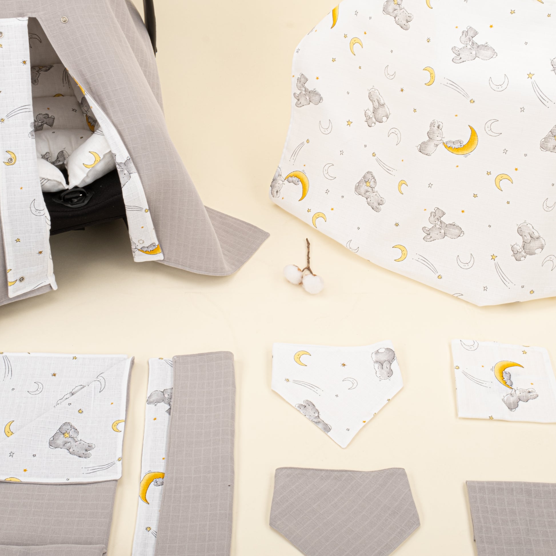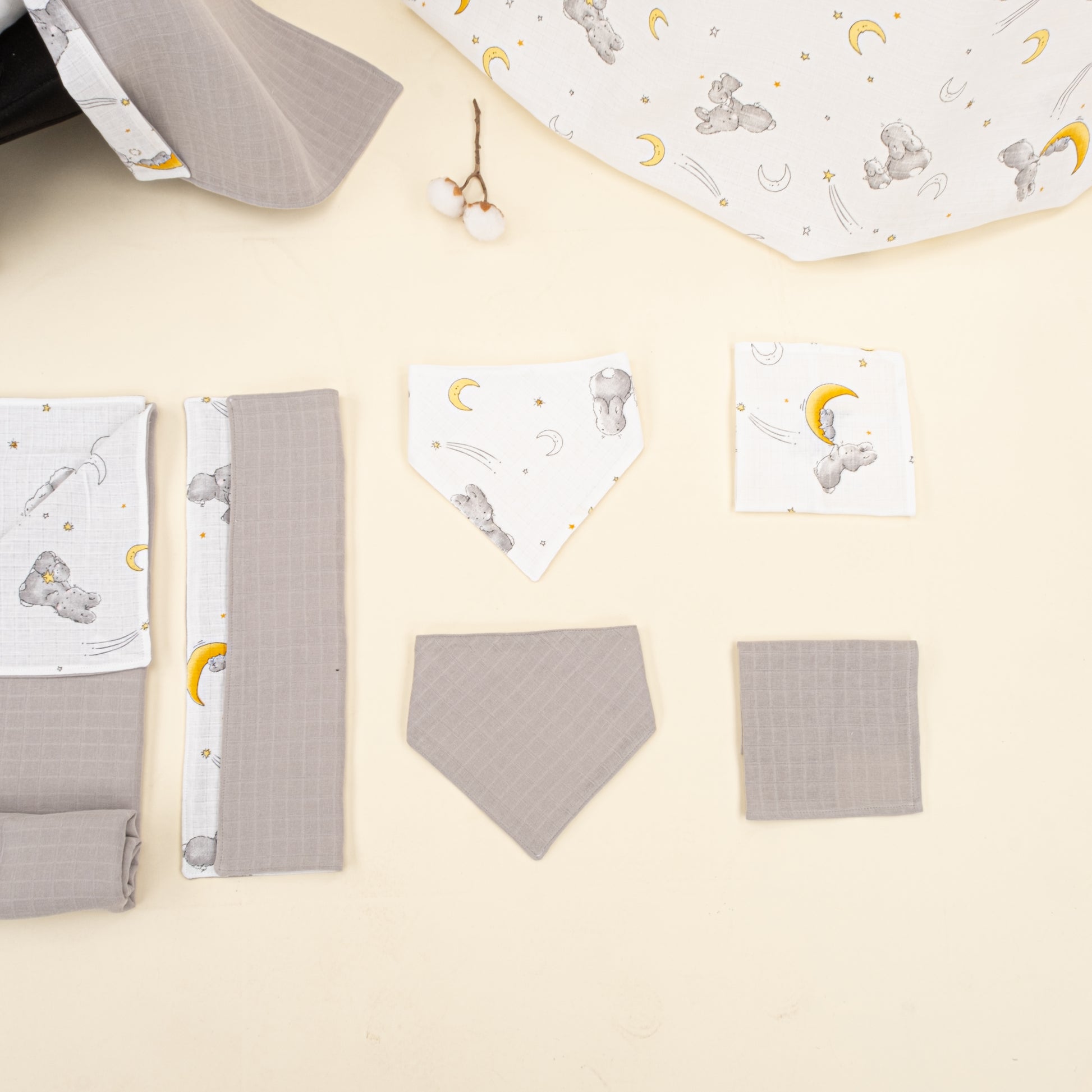 9 Parça Avantajlı Set - Çift Taraflı - Açık Gri Muslin - Gri Tavşan