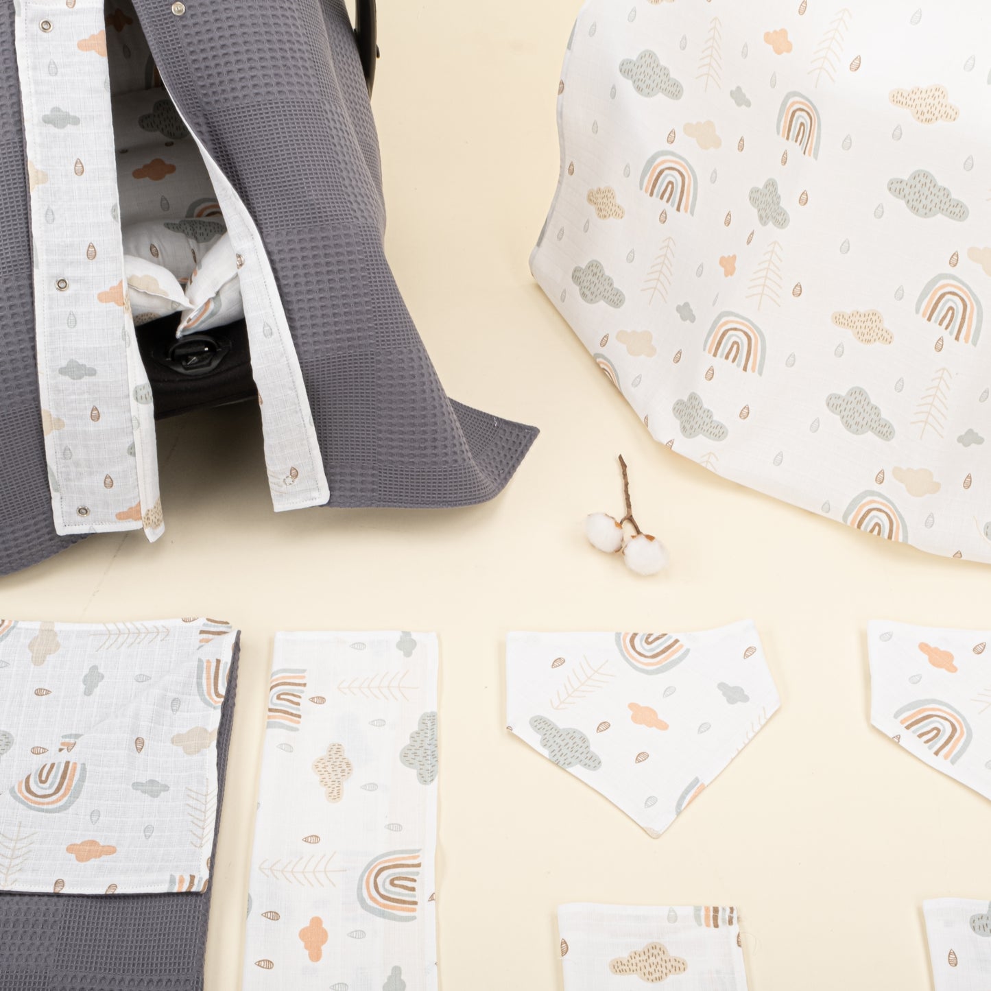 Bebeğinizin daha ilk günlerinden itibaren her ortamda ve her fotoğrafta eşlik edebileceği set içeriği :