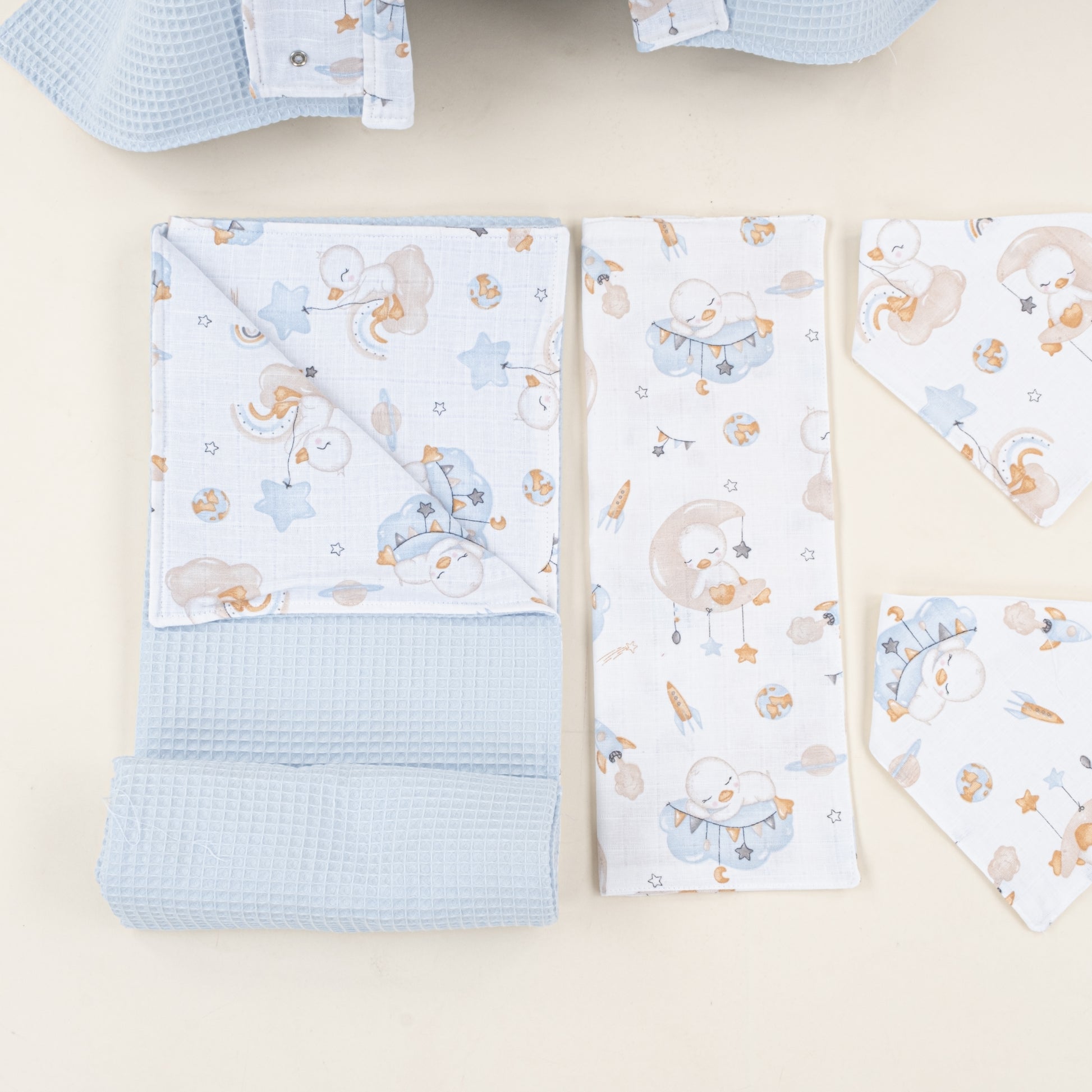 9 Parça Avantajlı Set - Çift Taraflı - Bebe Mavi Petek - Uykucu Ördek