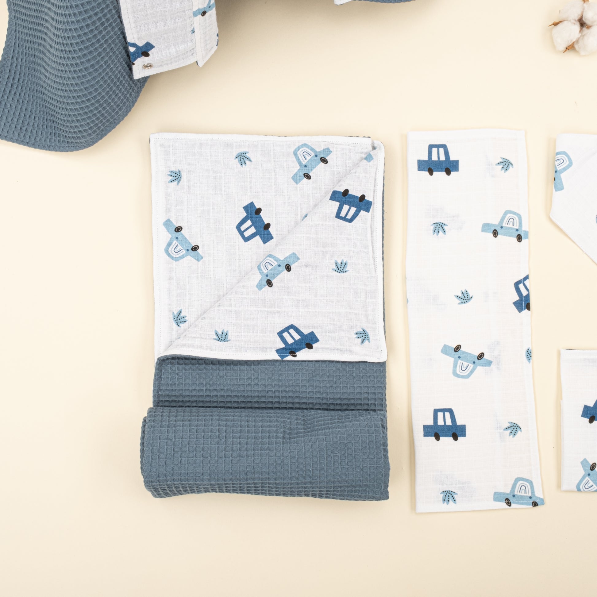 9 Parça Avantajlı Set - Çift Taraflı - Koyu Mavi Petek - Mavi Arabalar