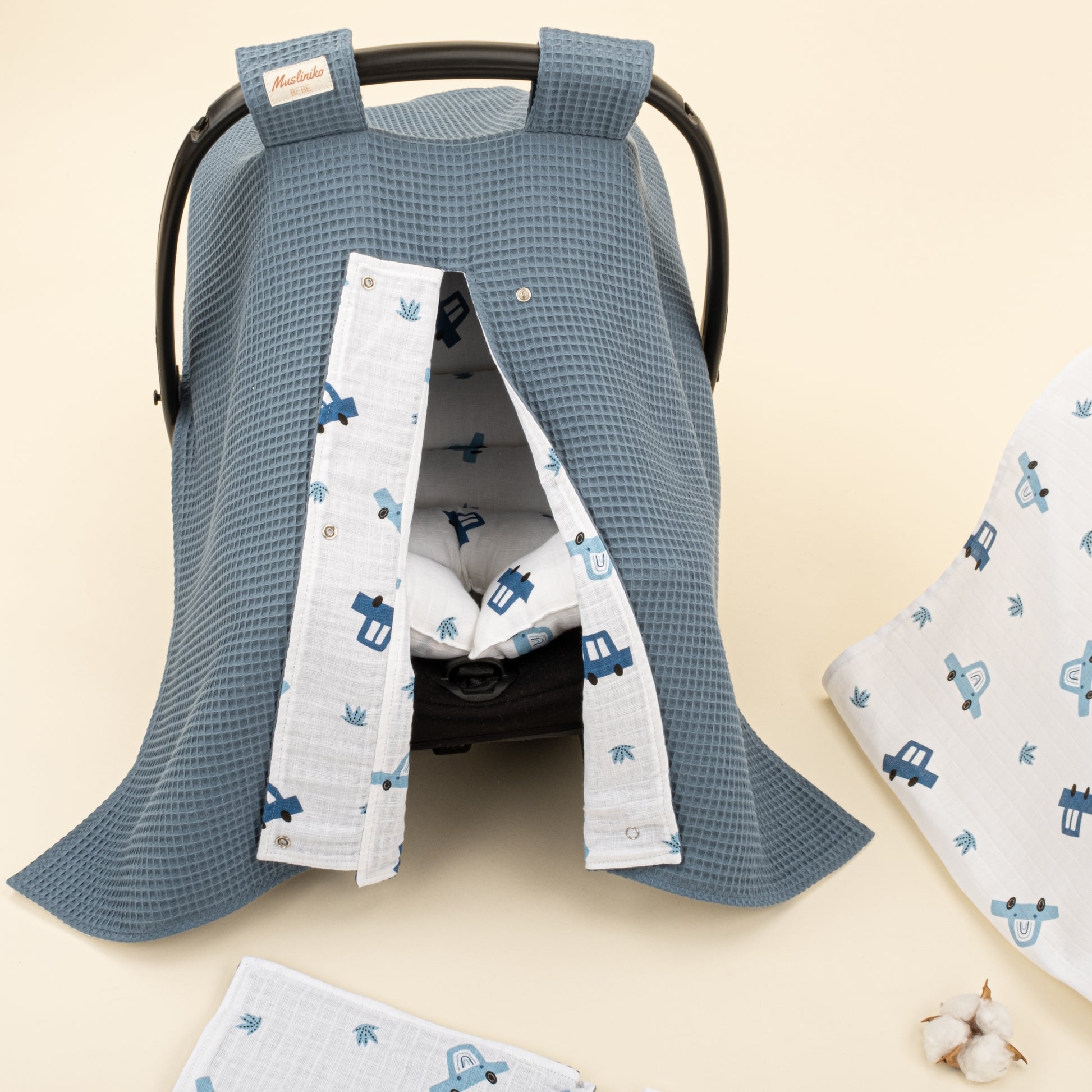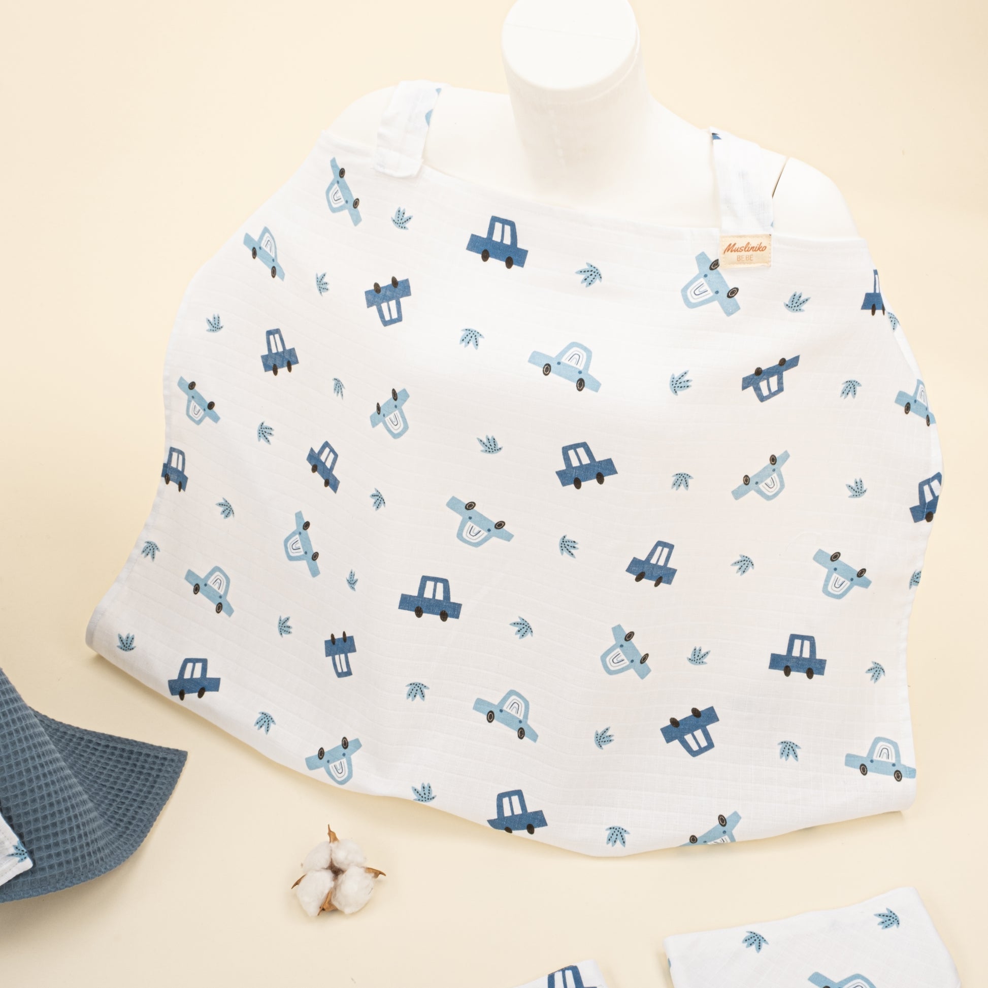 Müslin kumaşlarımız, pamuk içeriği ve yumuşacık dokusu ile bebeklerin narin cildi için en uygun kumaş türlerindendir. Bu sebeple bebek örtüsü kese, omuz örtüsü ve ağız mendili gibi birçok alanda severek kullanılır. Dokuma şeklinde gelen boşluklar sayesinde hava alan bu kumaş terletmeden sıcak tutar ve yıkandıkça yumuşaklık hissiyatı artar. Musliniko Müslinleri %100 Pamuk içerikli ve sertifikalıdır. Desenleri ve kumaşı sağlığa zararlı hiçbir madde içermez. Bebek sağlığına uygun dokunmuş ve dikilmiş ürünlerdir.