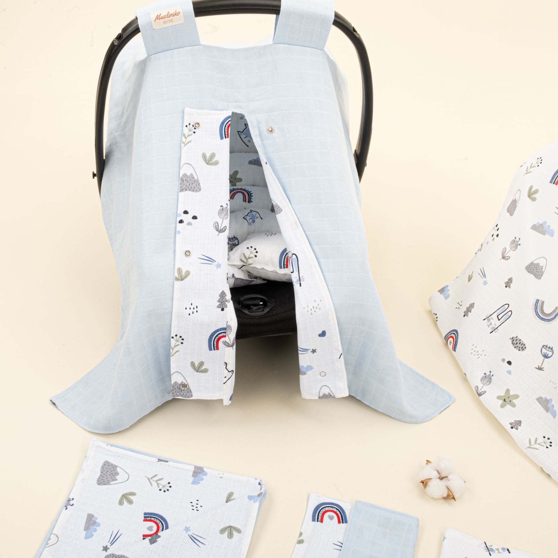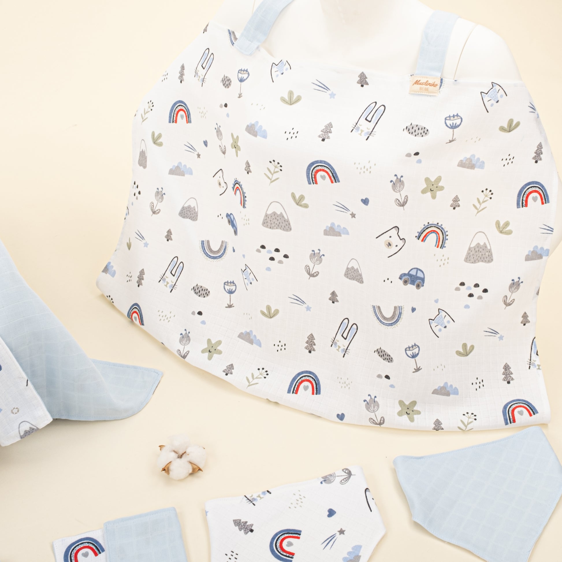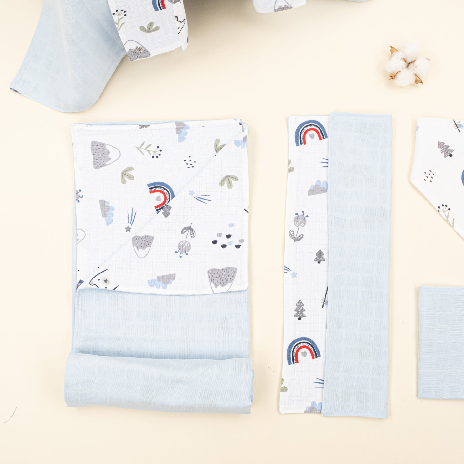 9 Parça Avantajlı Set - Çift Taraflı - Mavi Muslin - Mavi Kedi