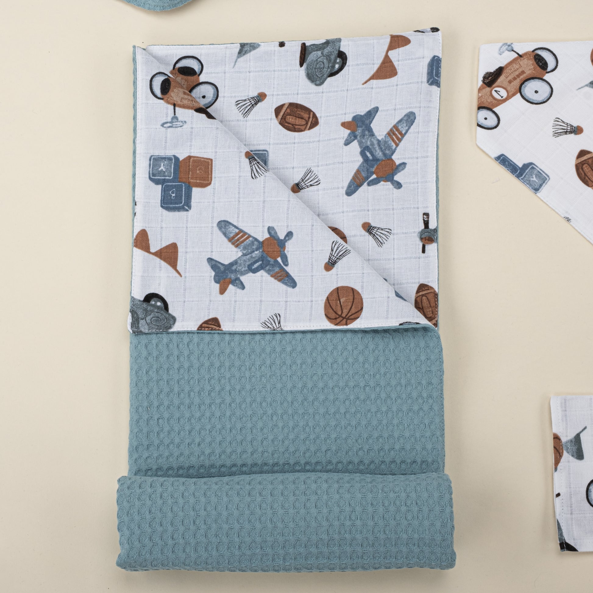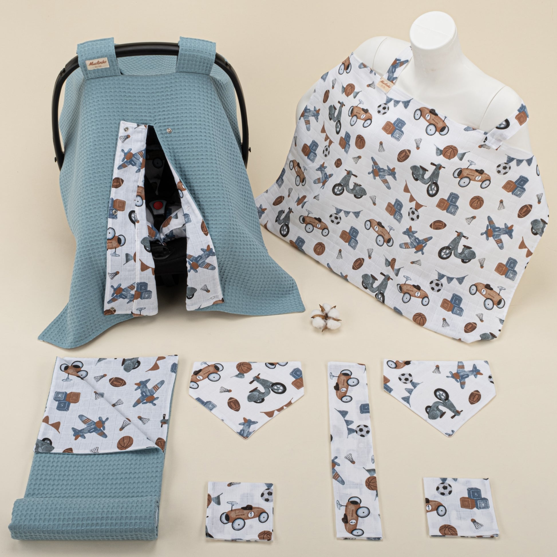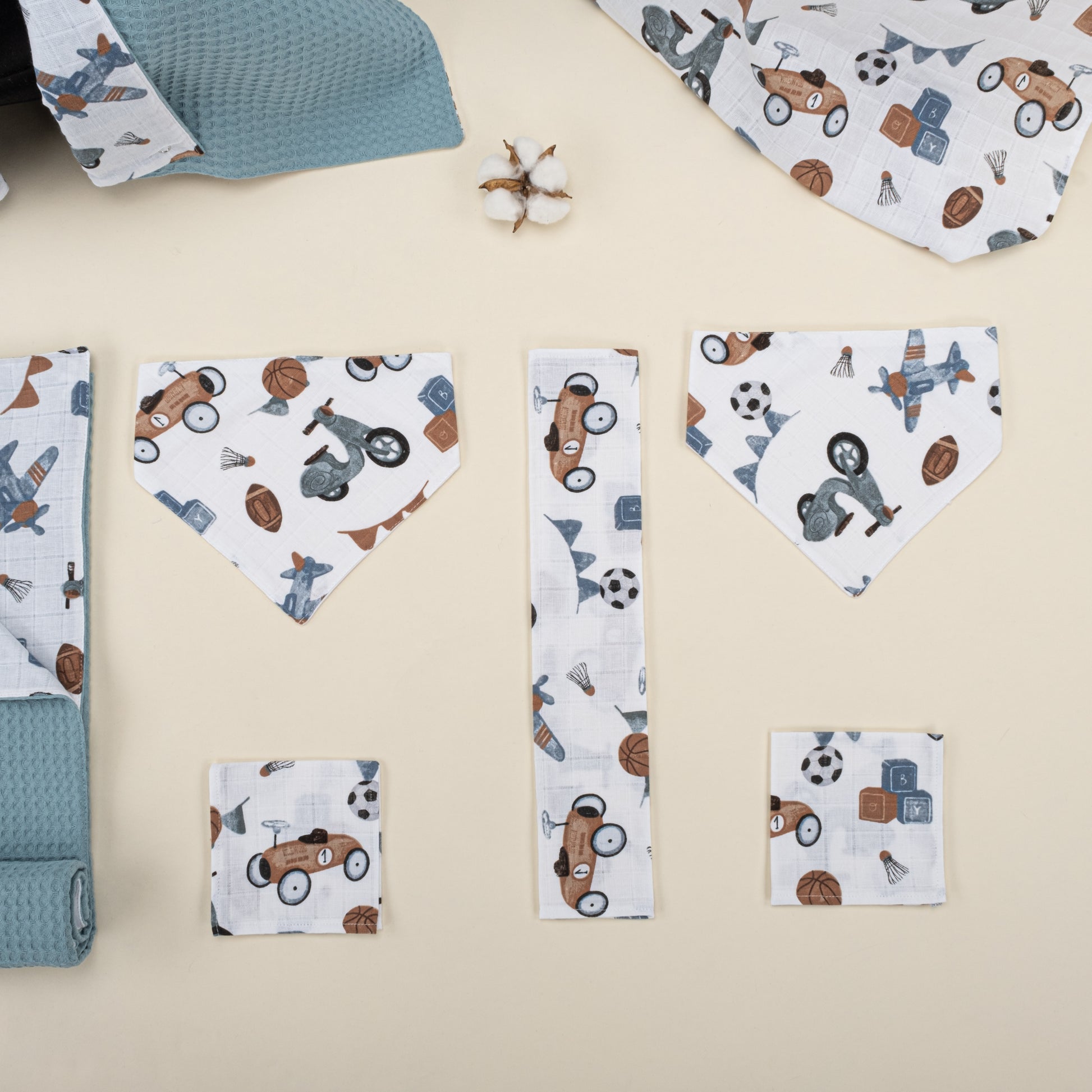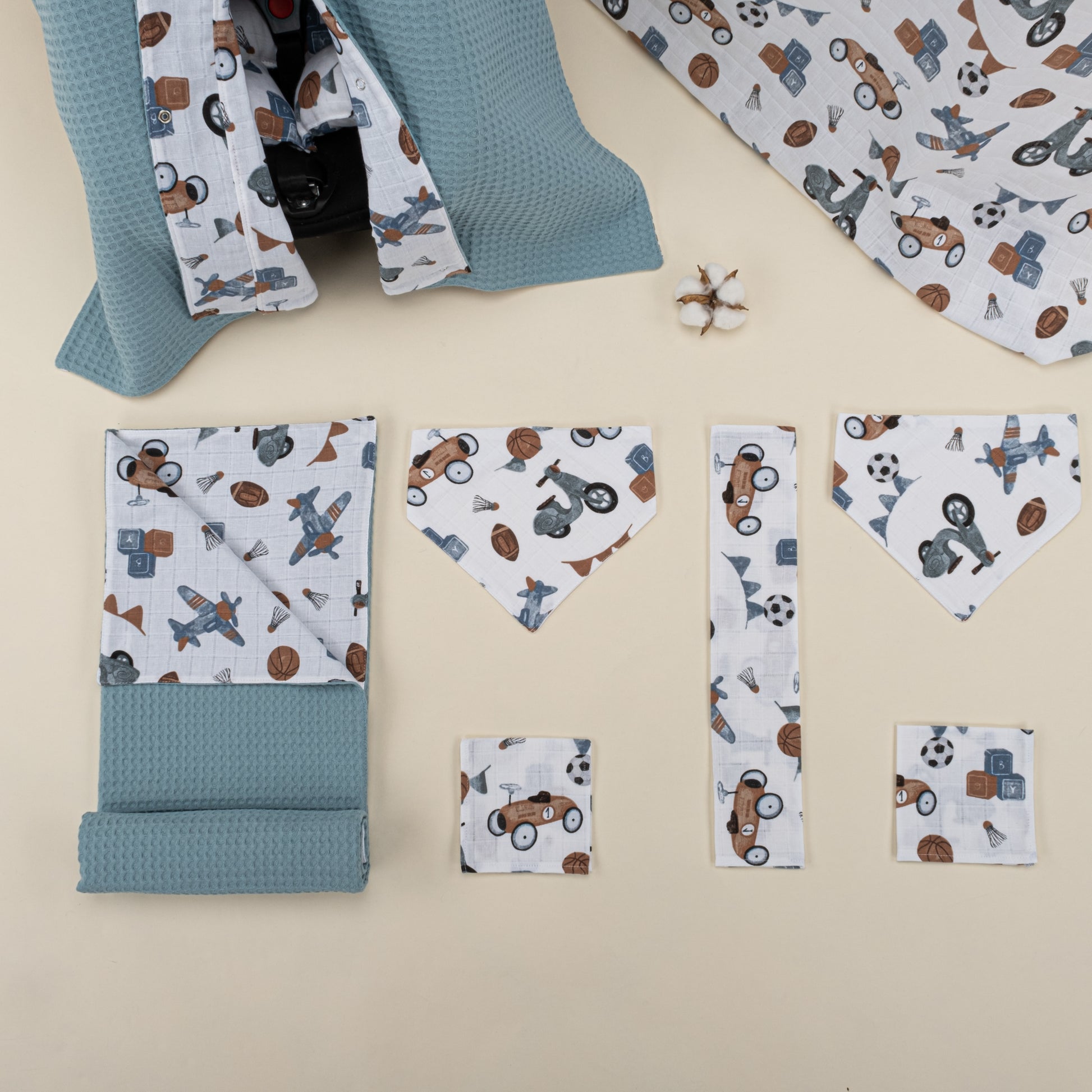 9 Parça Avantajlı Set - Çift Taraflı - Petrol Mavisi Petek - Araçlar