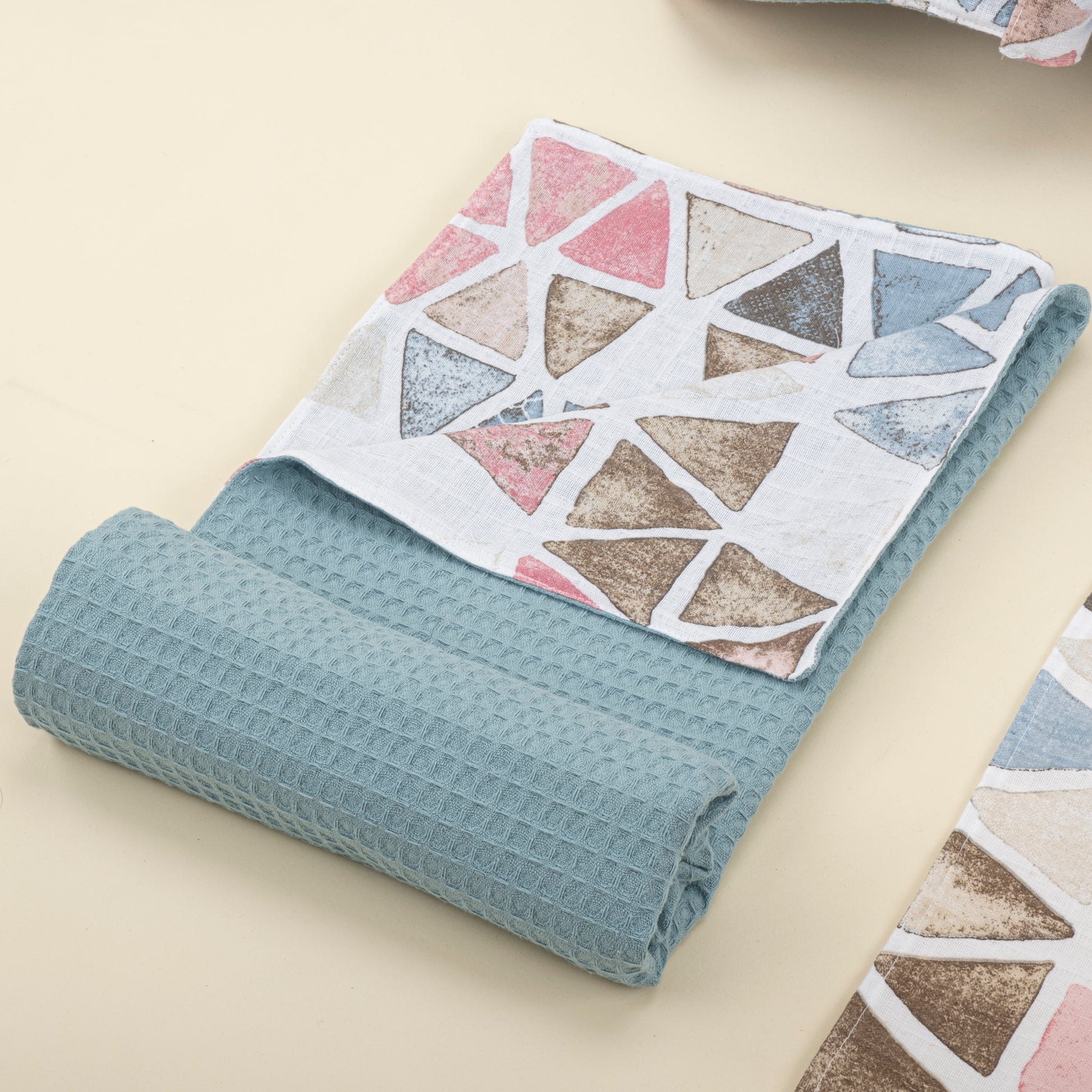 9 Parça Avantajlı Set - Çift Taraflı - Petrol Mavisi Petek - Retro