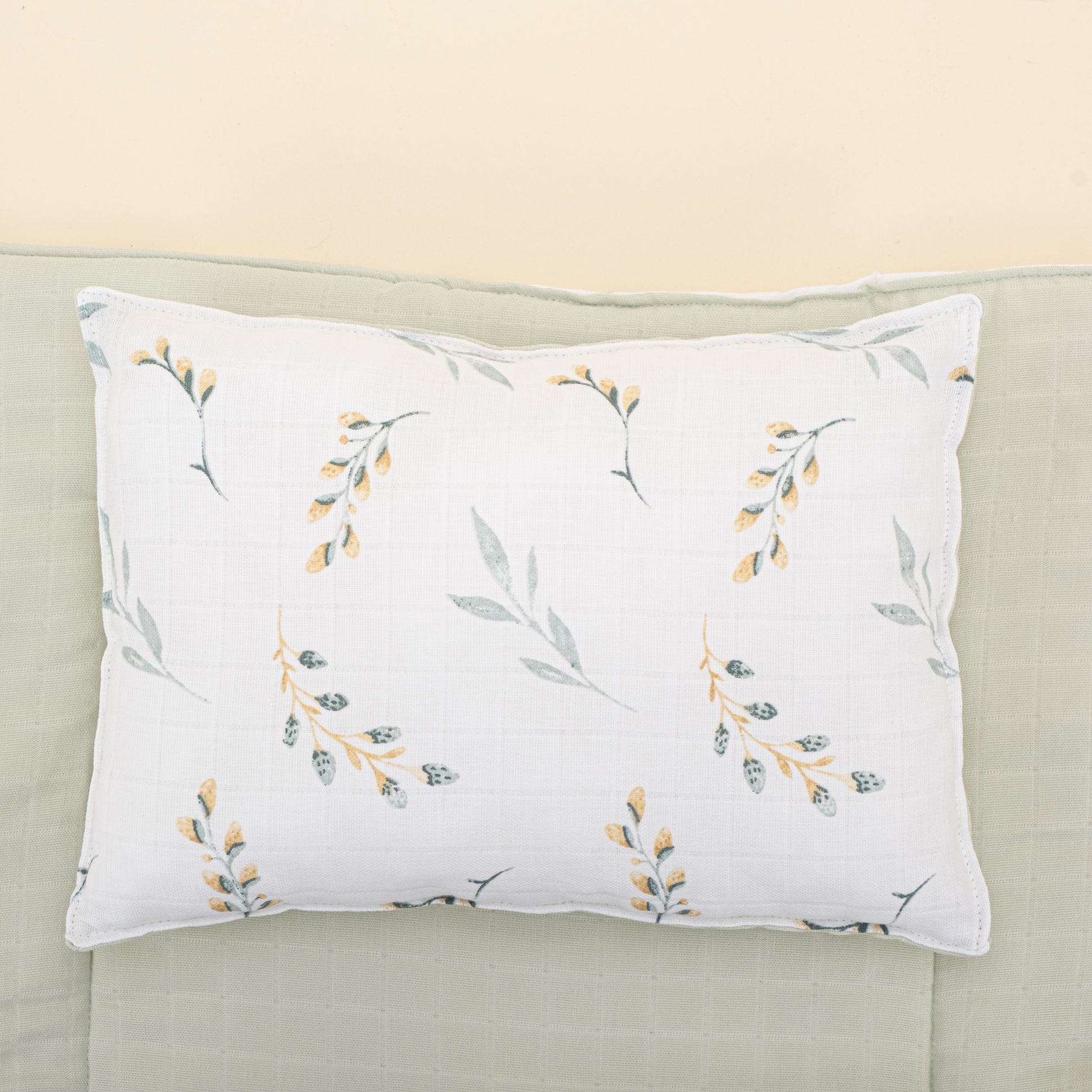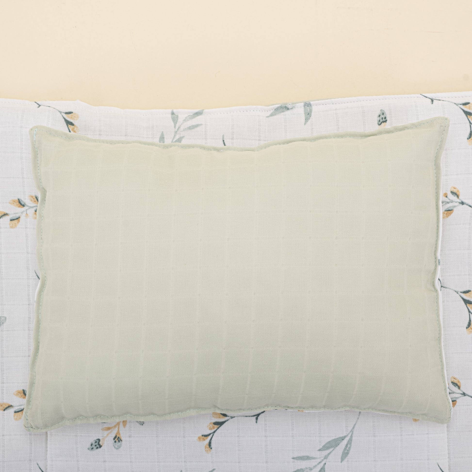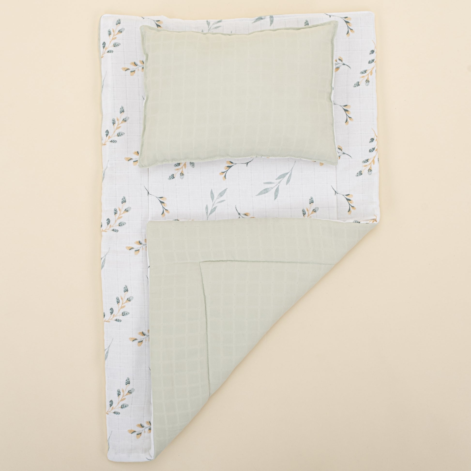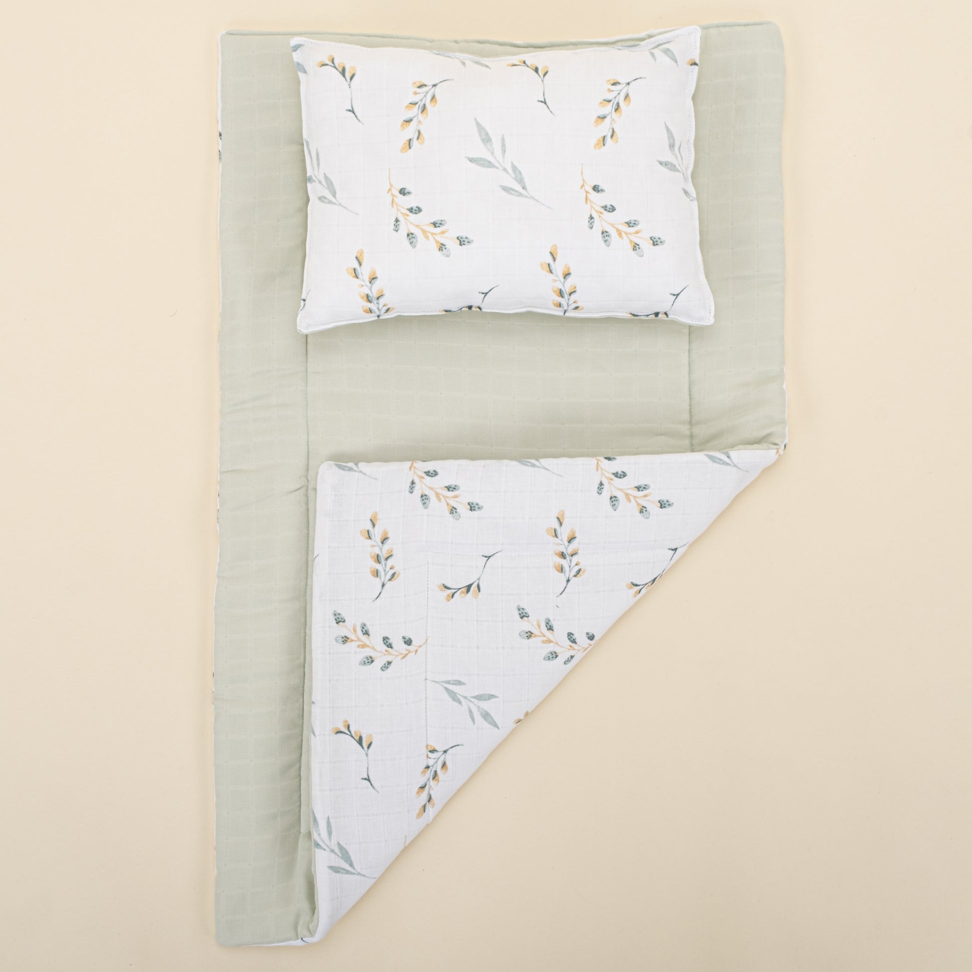 Alt Açma Matı ve Yastık - Çift Taraflı - Açık Yeşil Muslün - Yapraklar