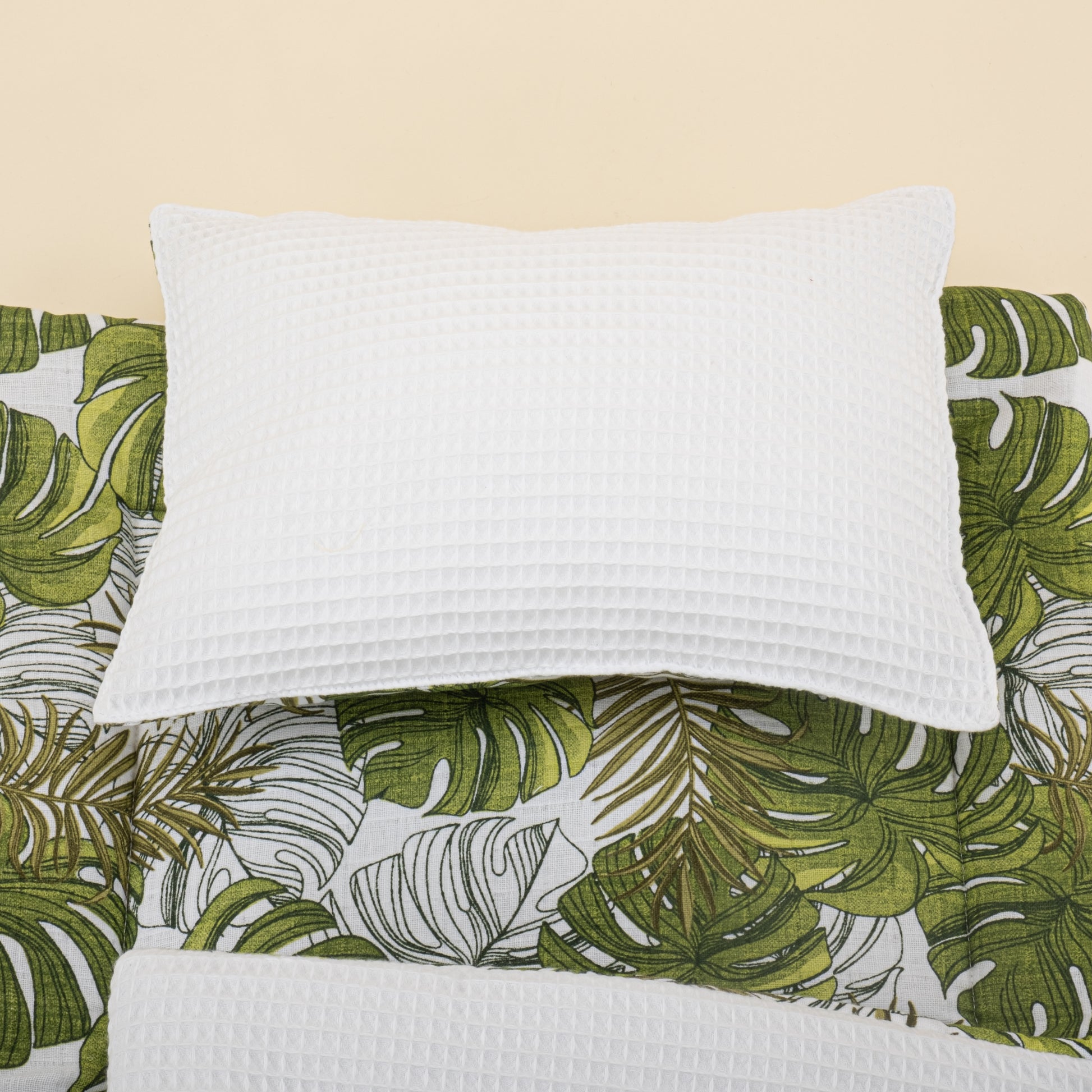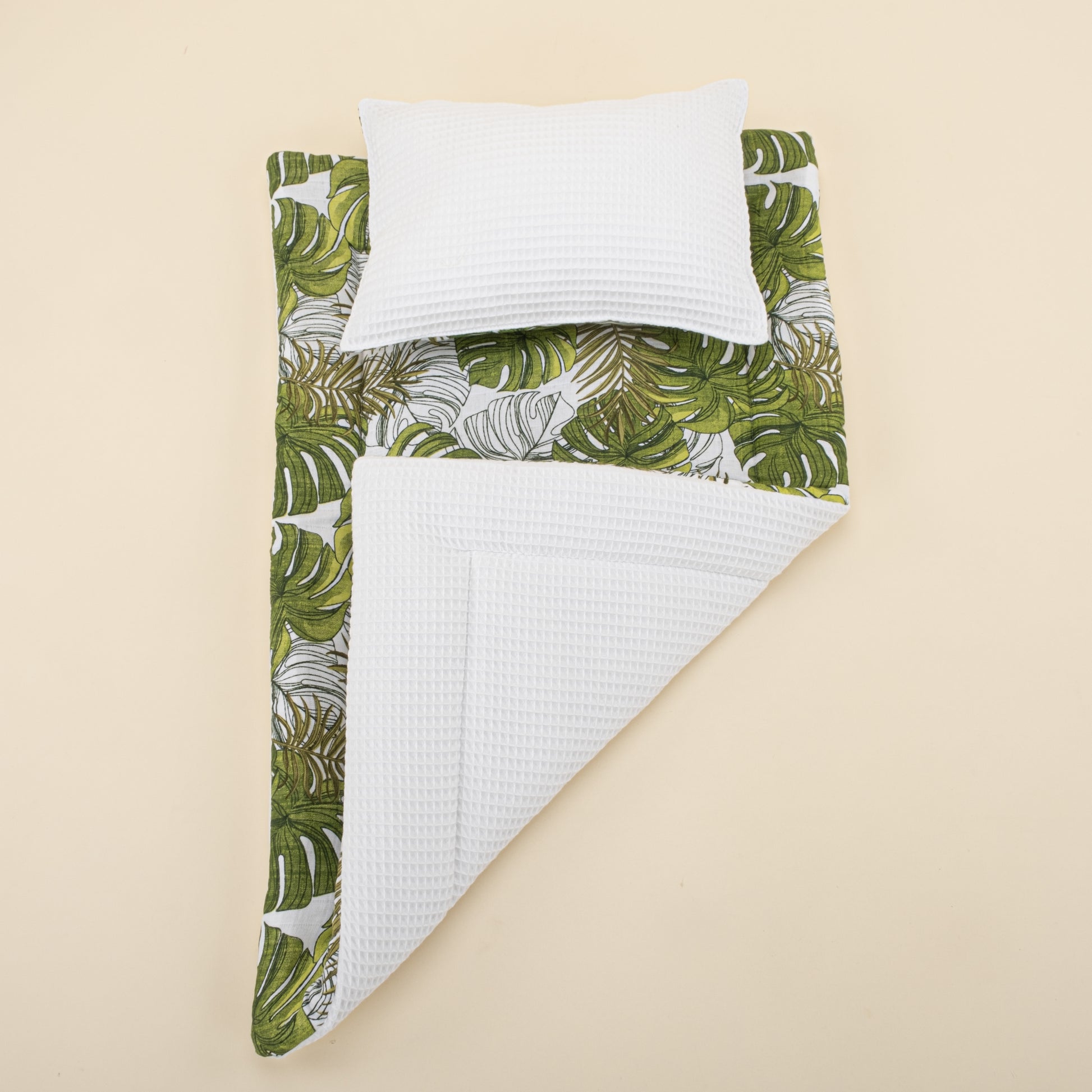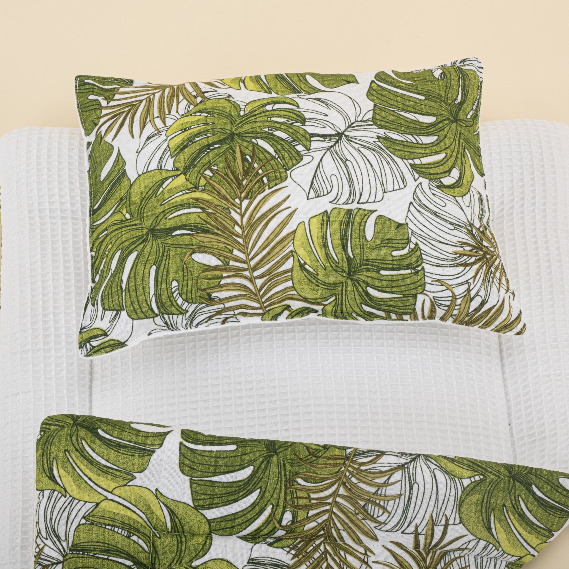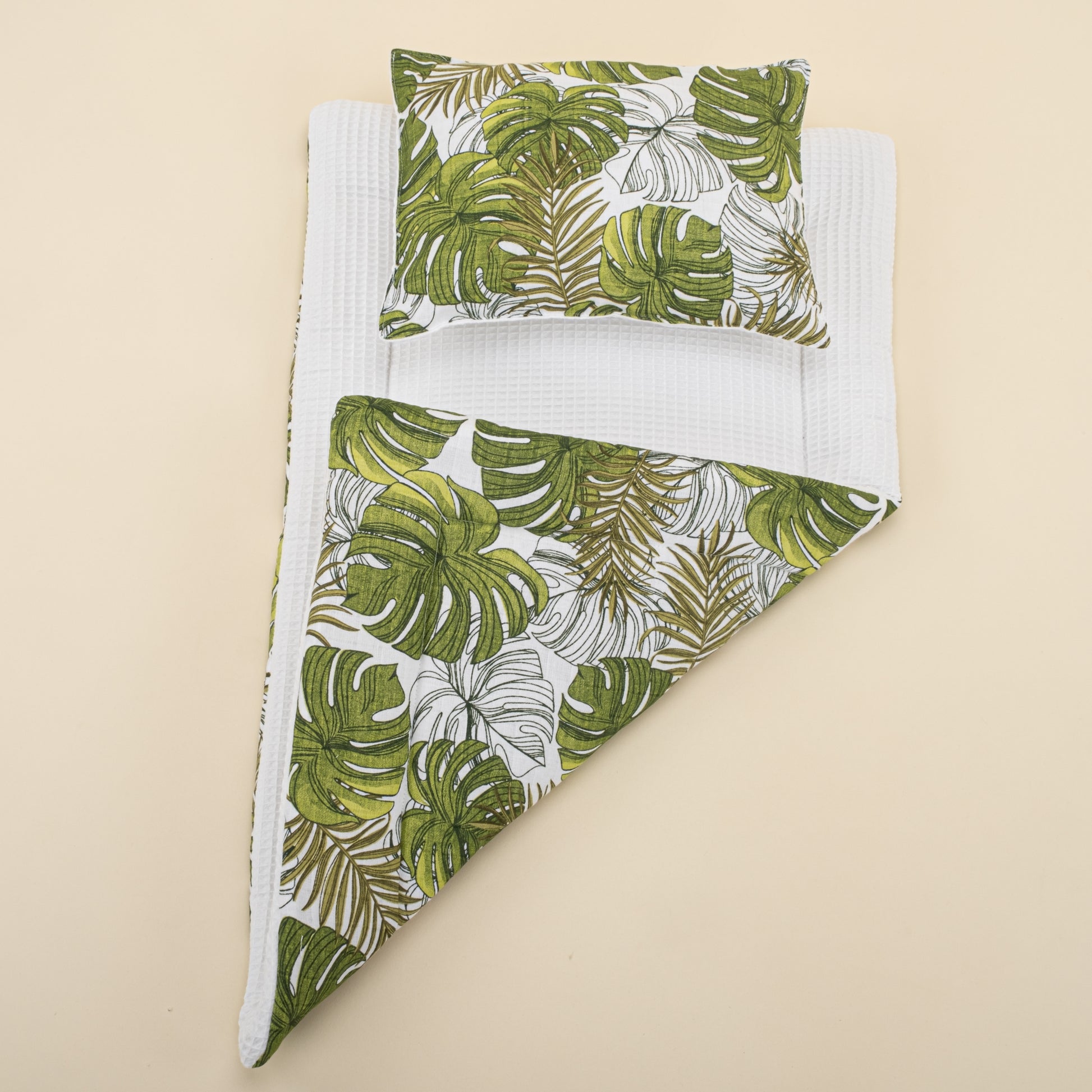 Alt Açma Matı ve Yastık - Çift Taraflı - Beyaz Petek - Palmiye Yaprakları