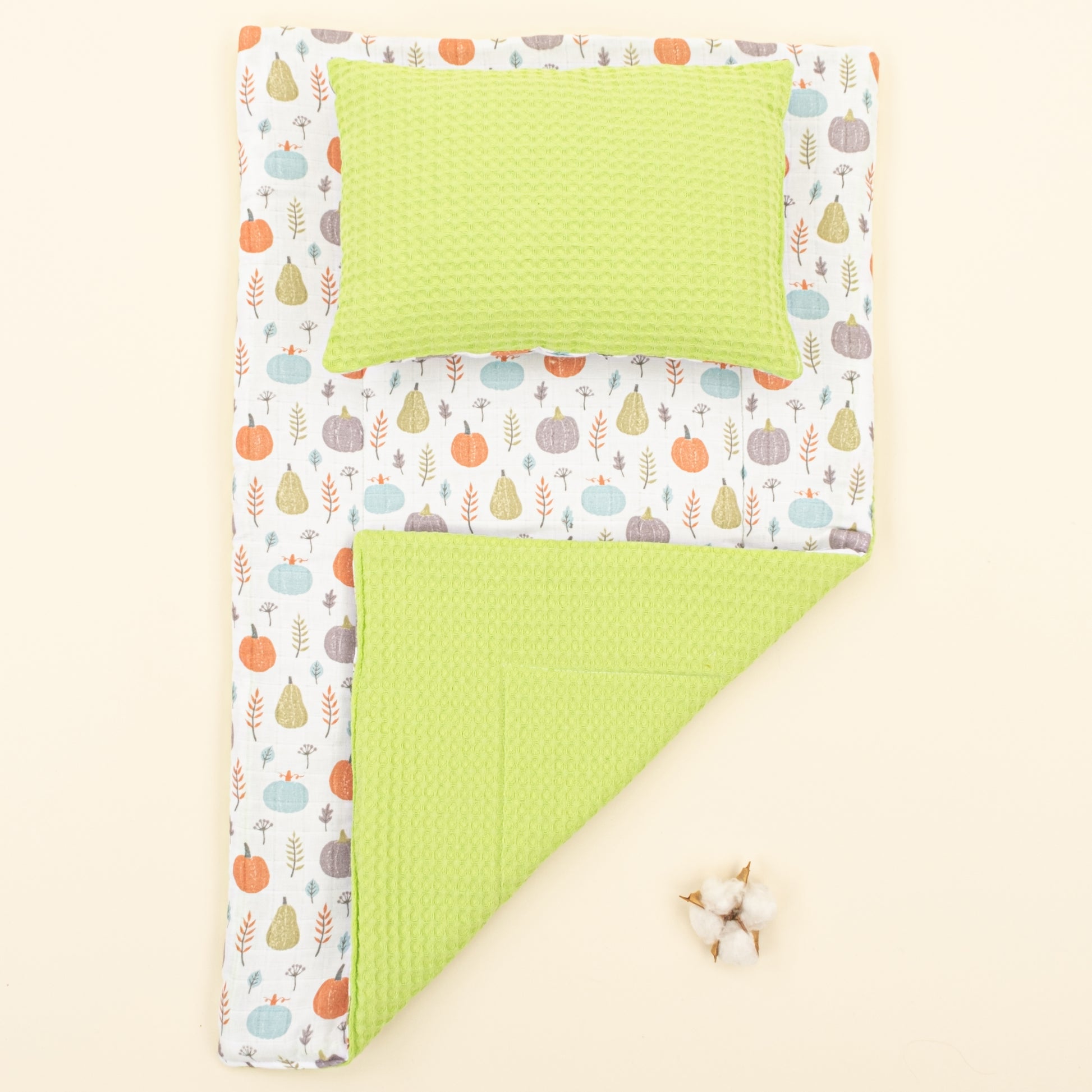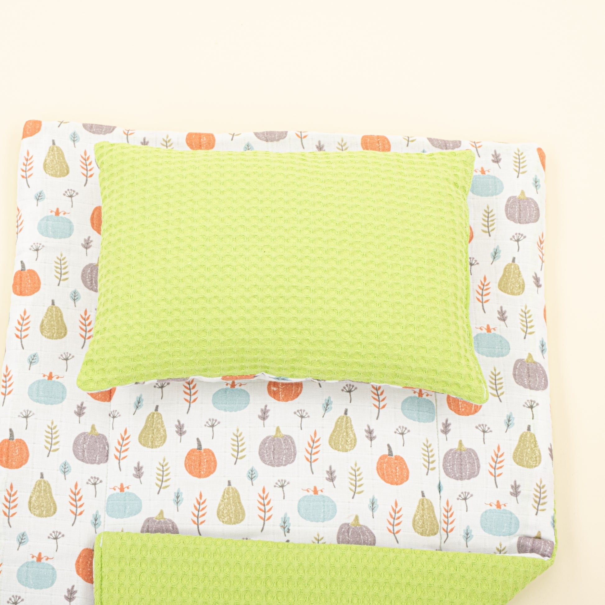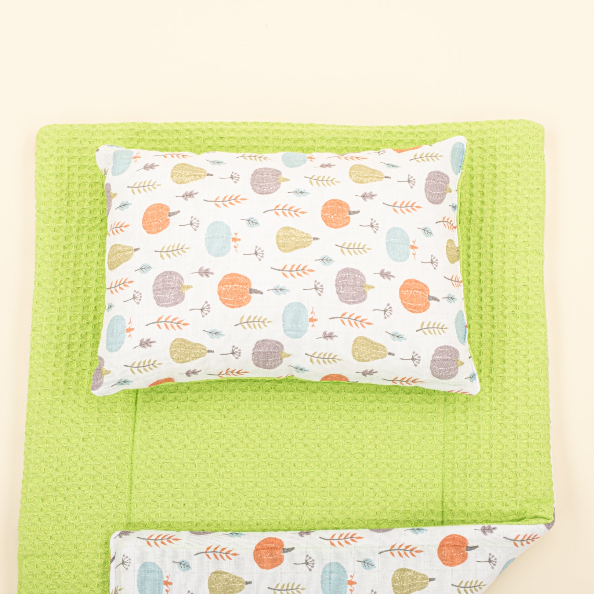 Alt Açma Matı ve Yastık - Çift Taraflı - Fıstık Yeşili Petek - Yeşil Balkabağı