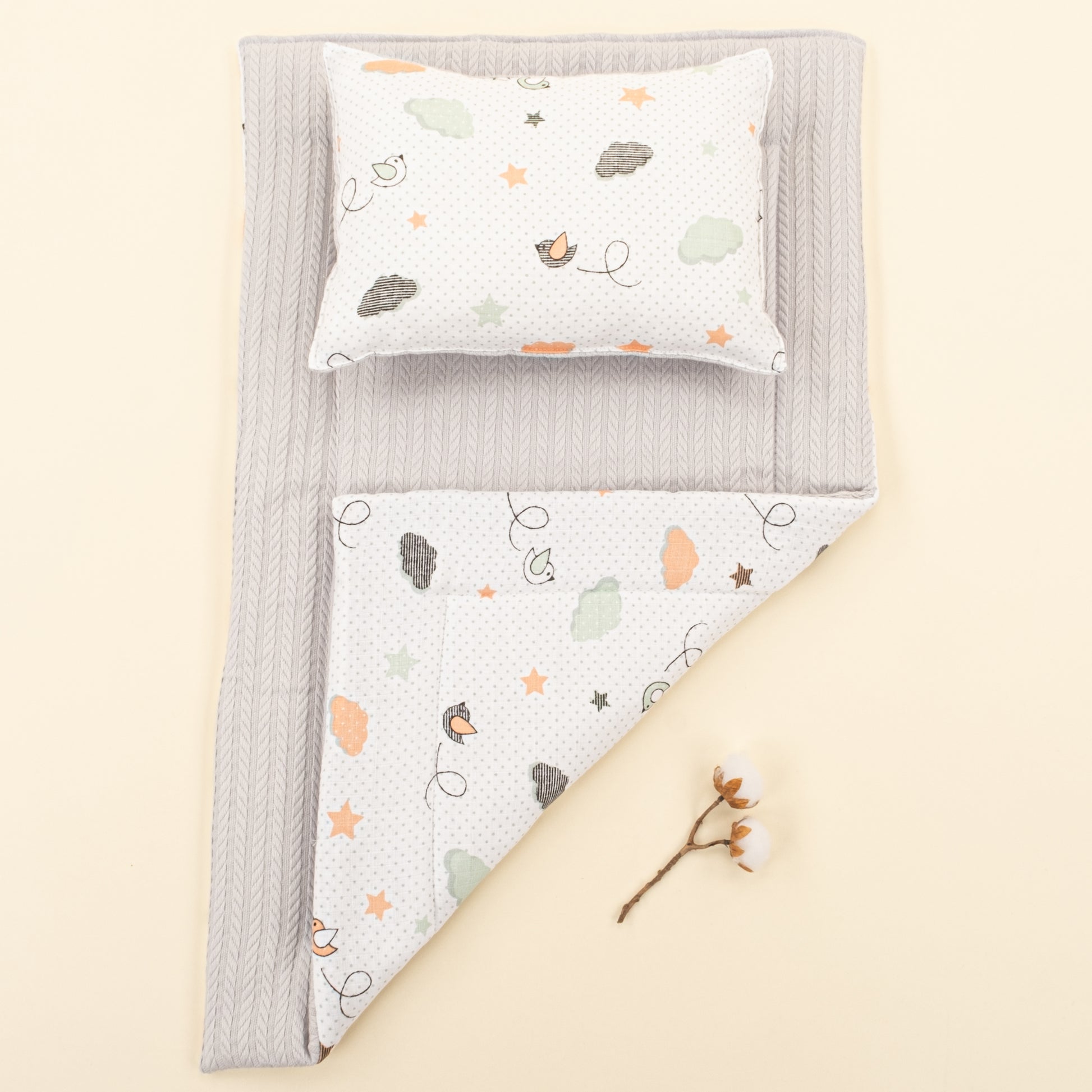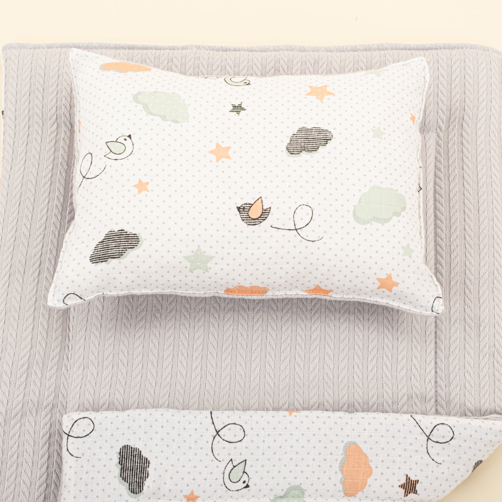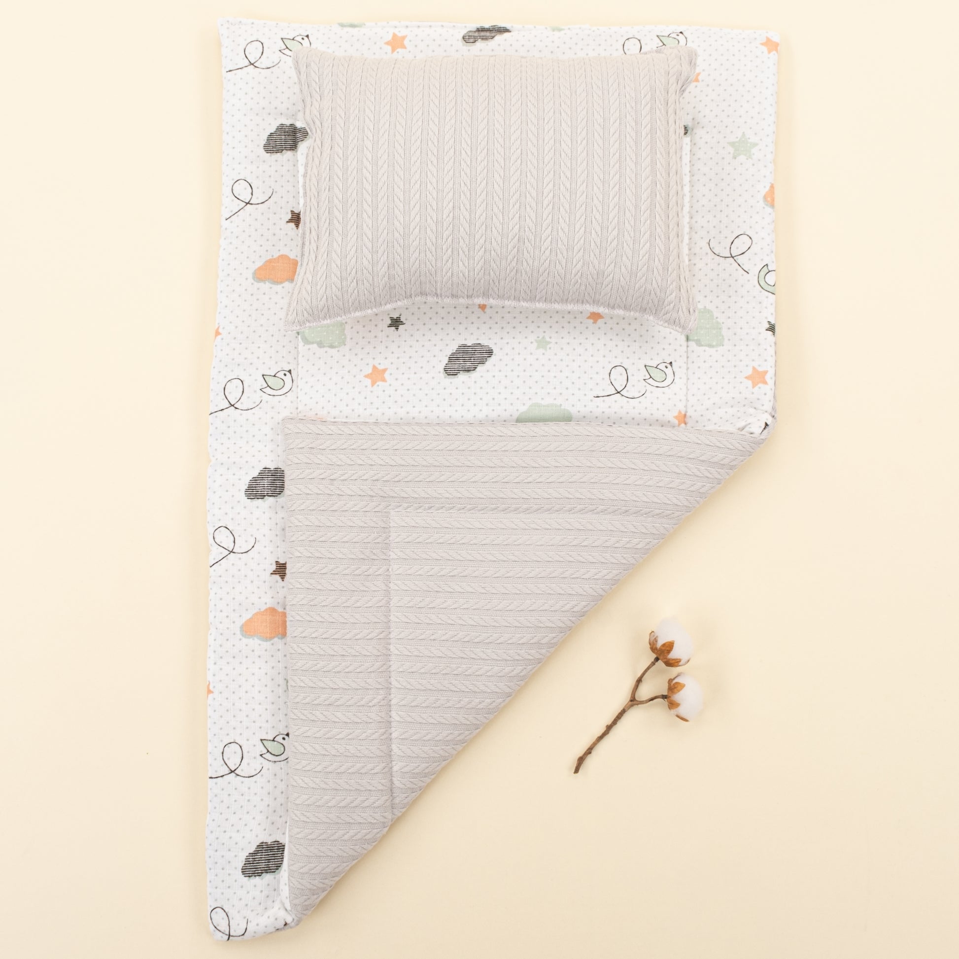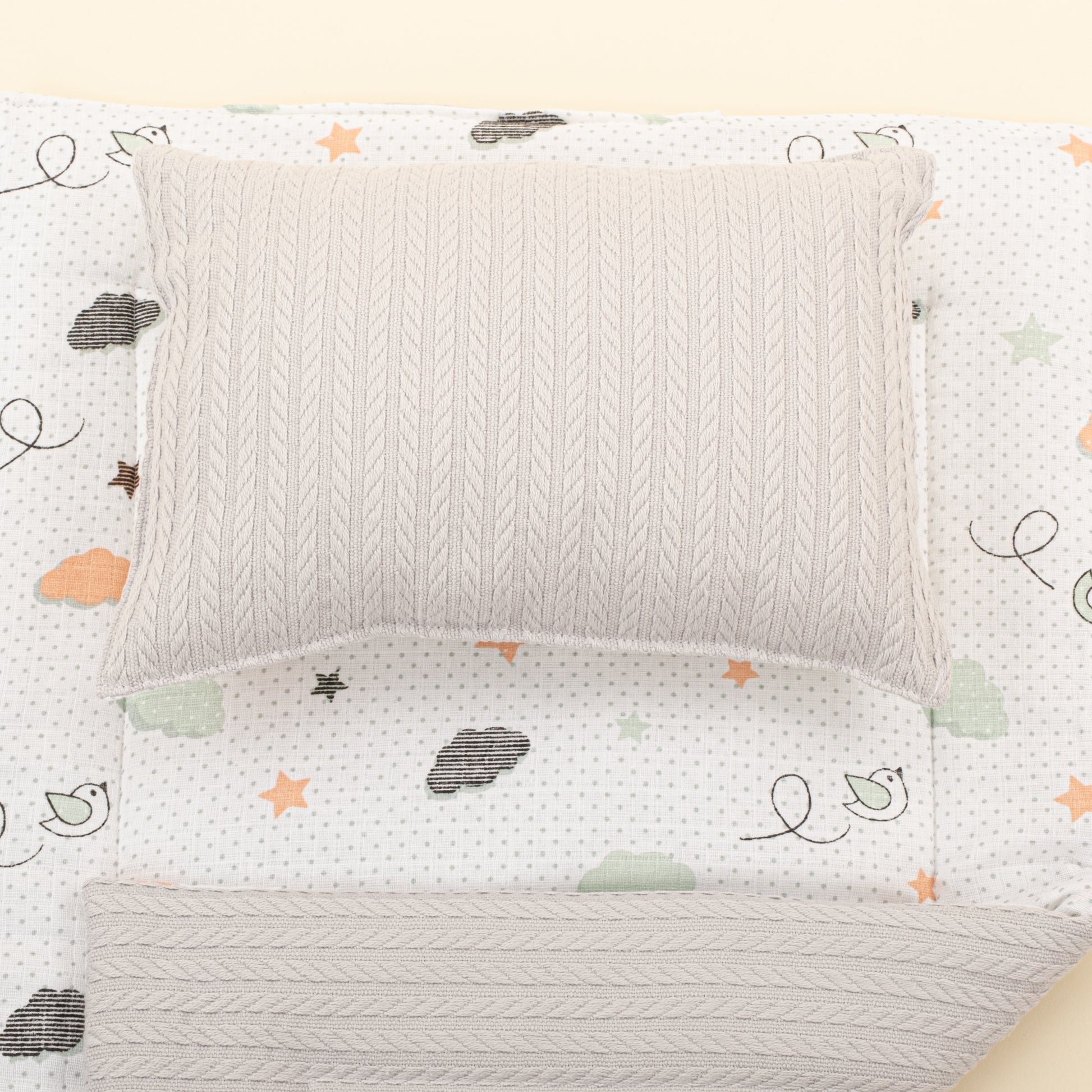 Alt Açma Matı ve Yastık - Çift Taraflı - Açık Gri Örgü - Kuş