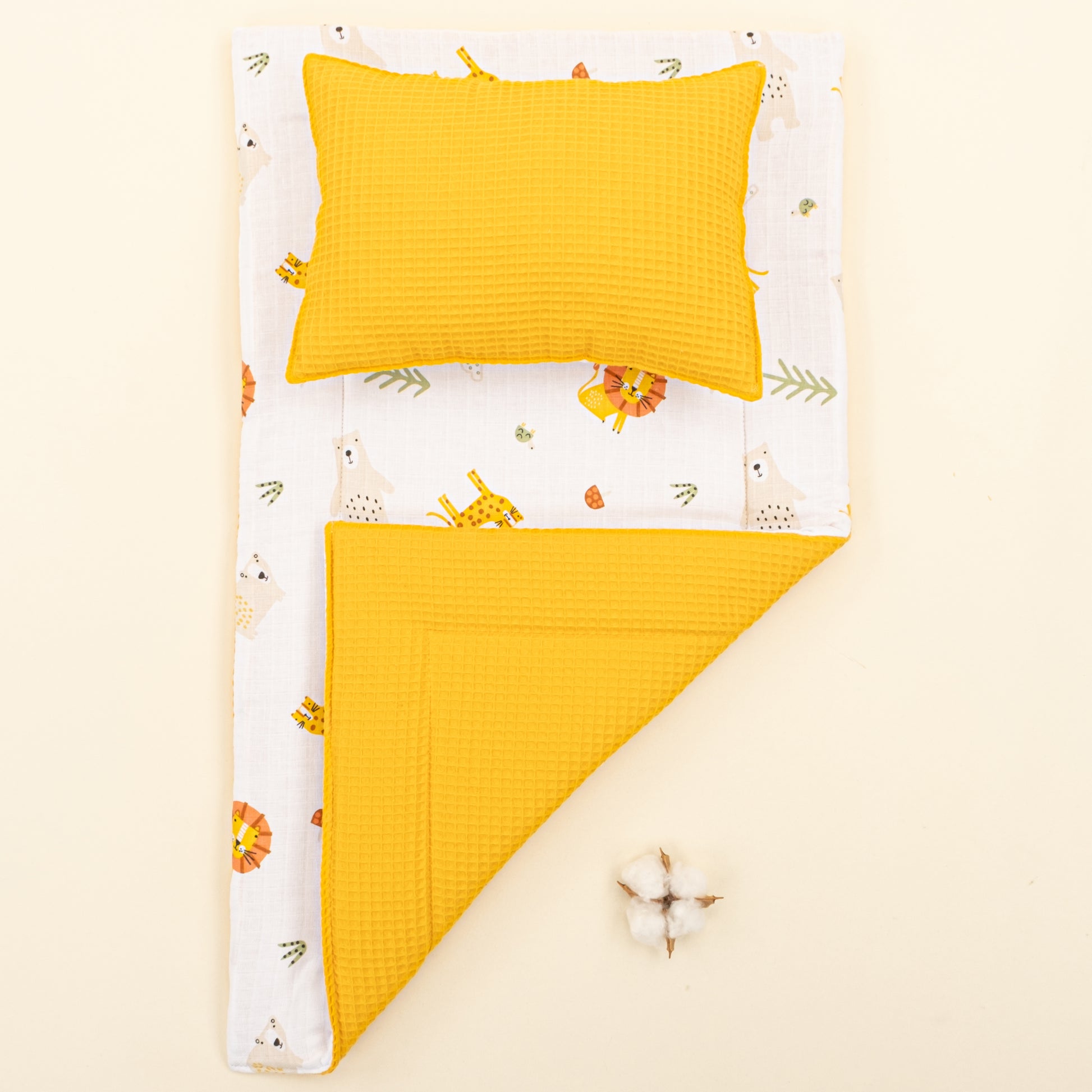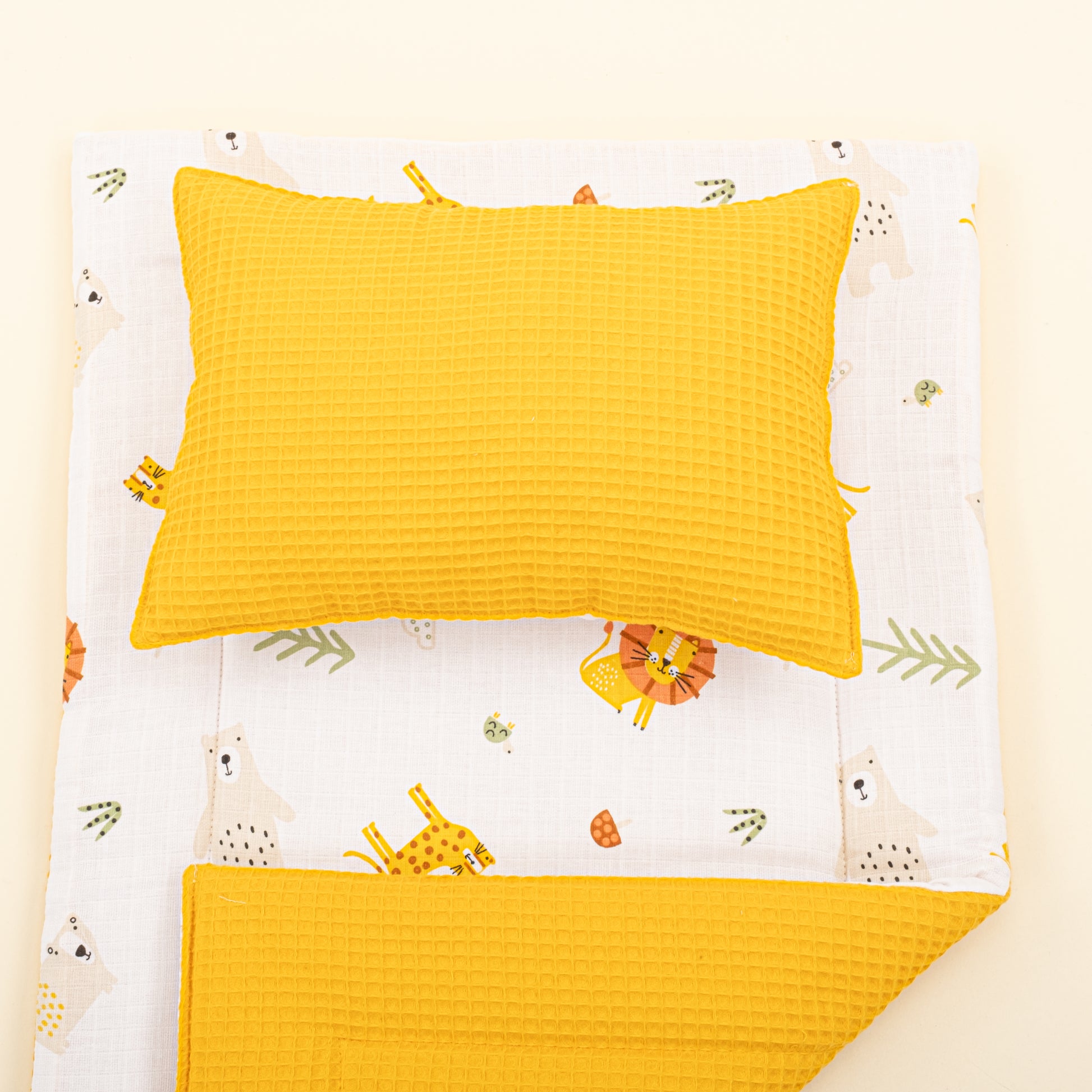 Alt Açma Matı ve Yastık - Çift Taraflı - Hardal Petek - Aslan