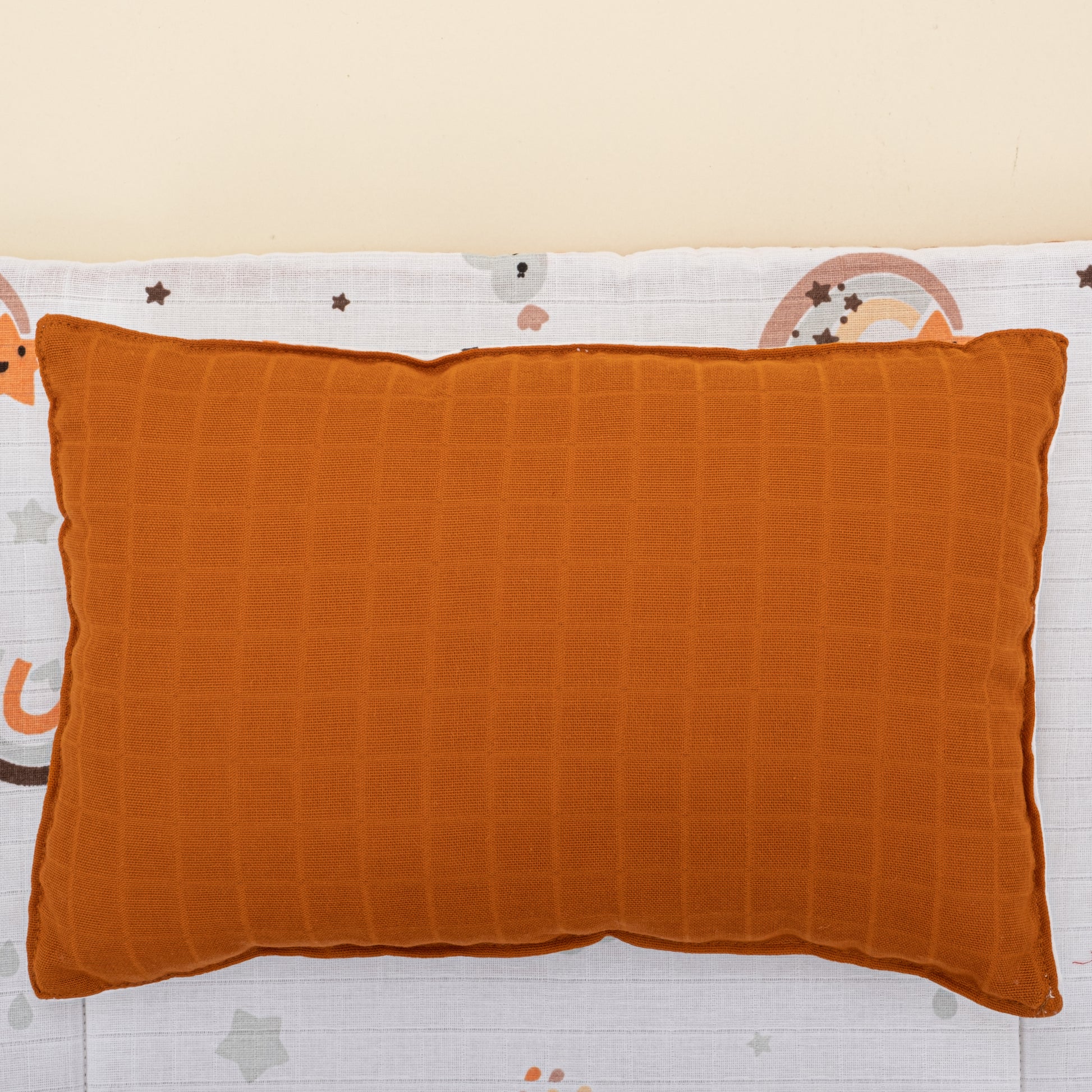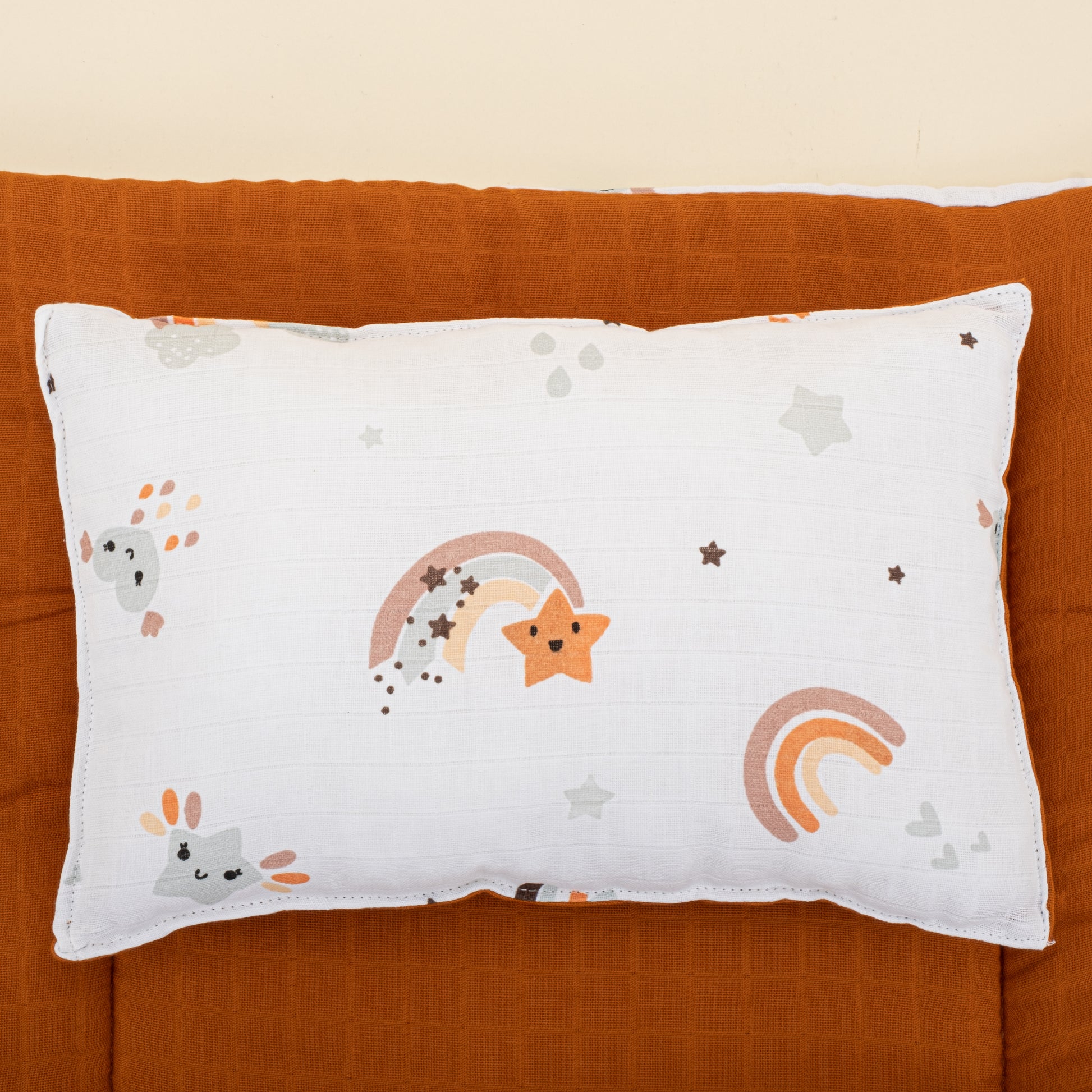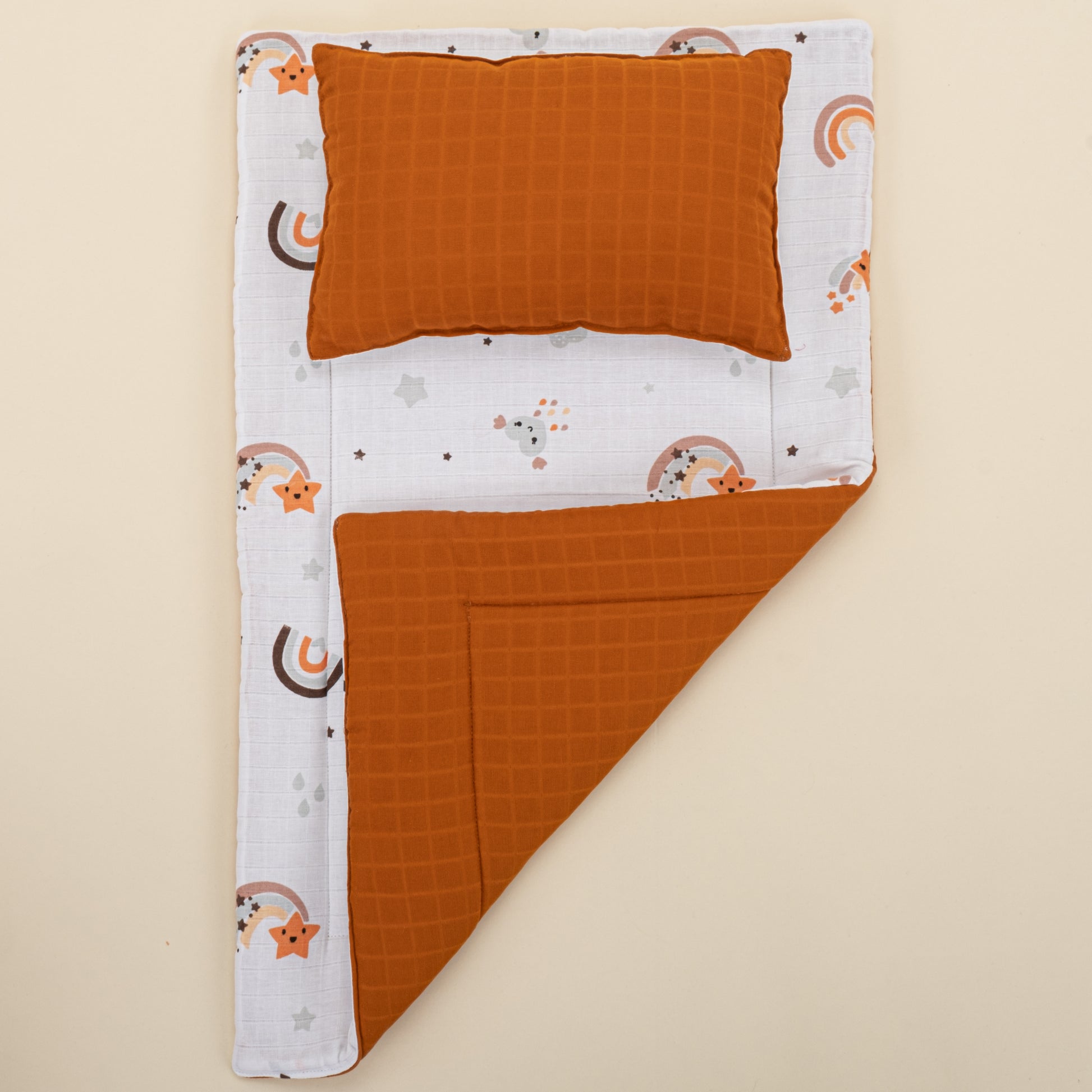 Alt Açma Matı ve Yastık - Çift Taraflı - Kiremit Muslin - Turuncu Gökkuşağı