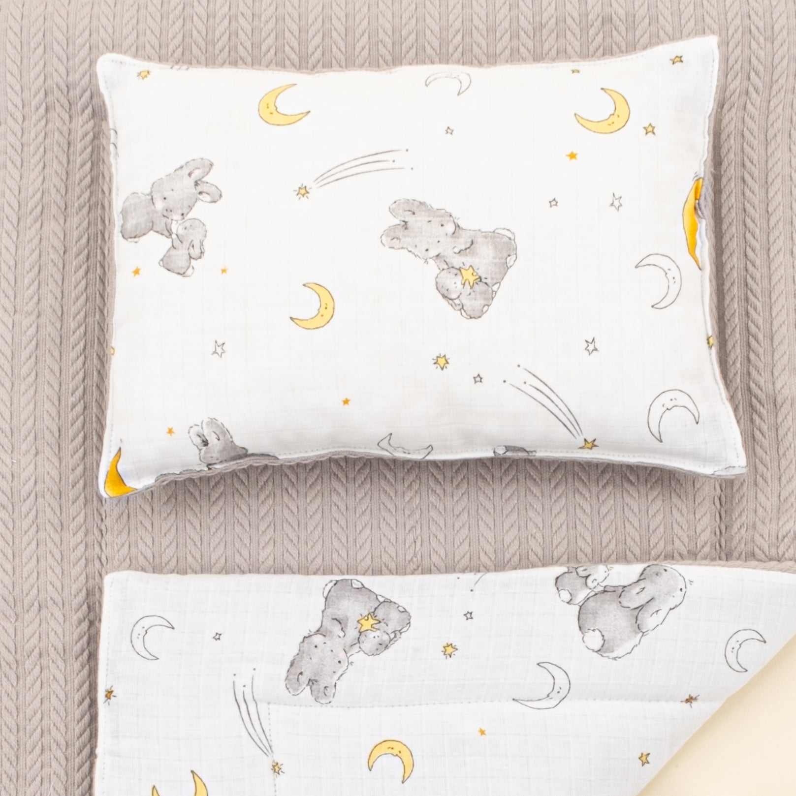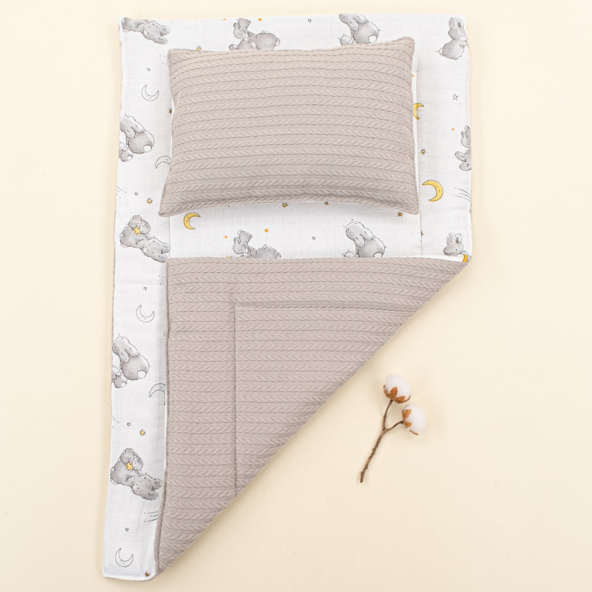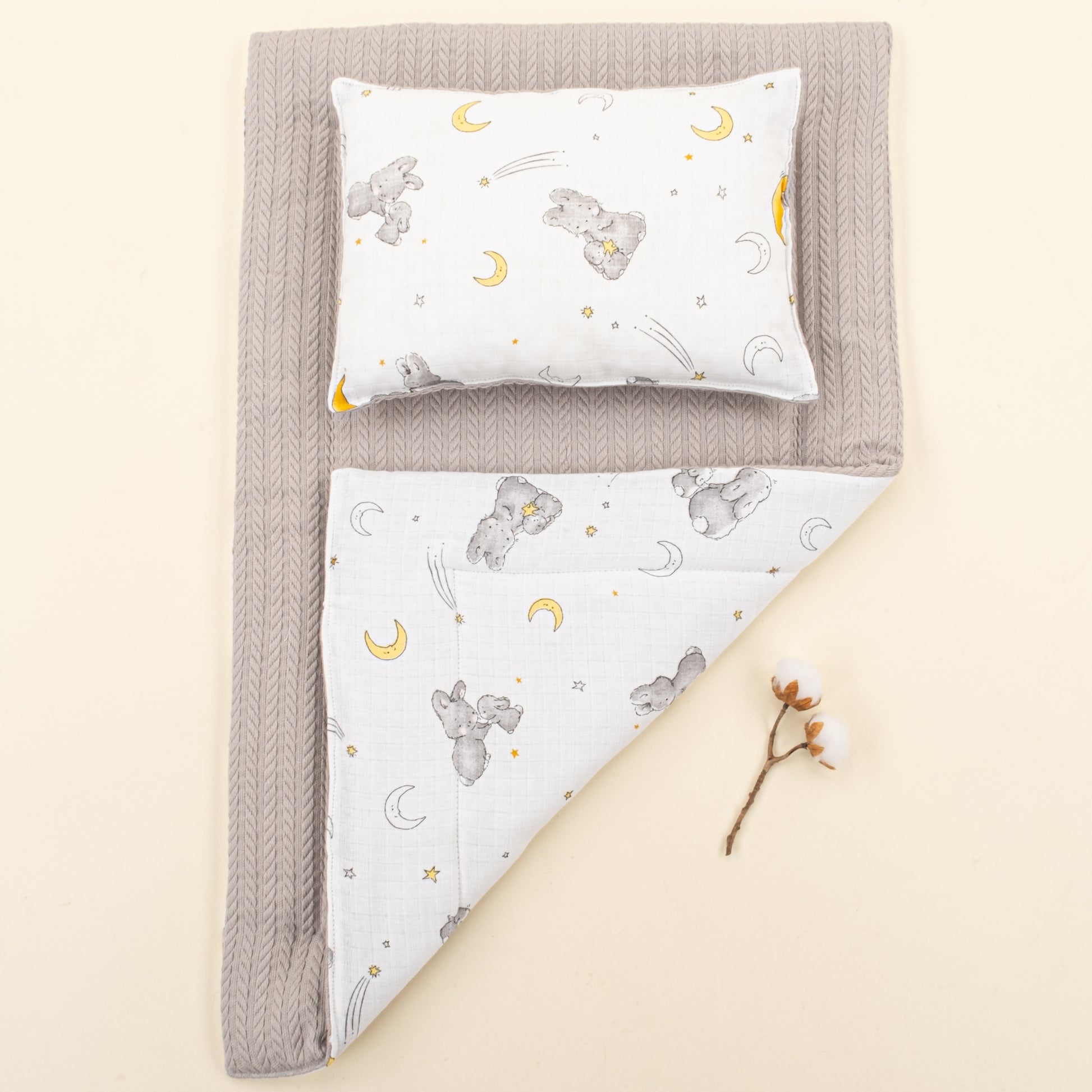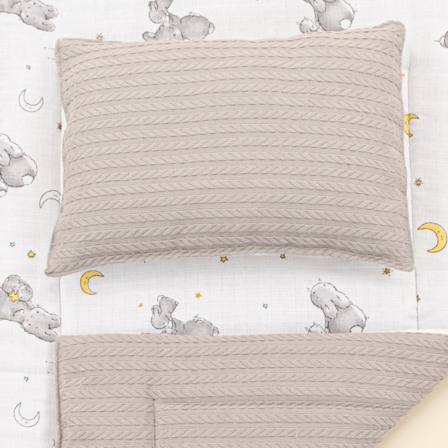 Alt Açma Matı ve Yastık - Çift Taraflı - Gri Örgü - Gri Tavşan