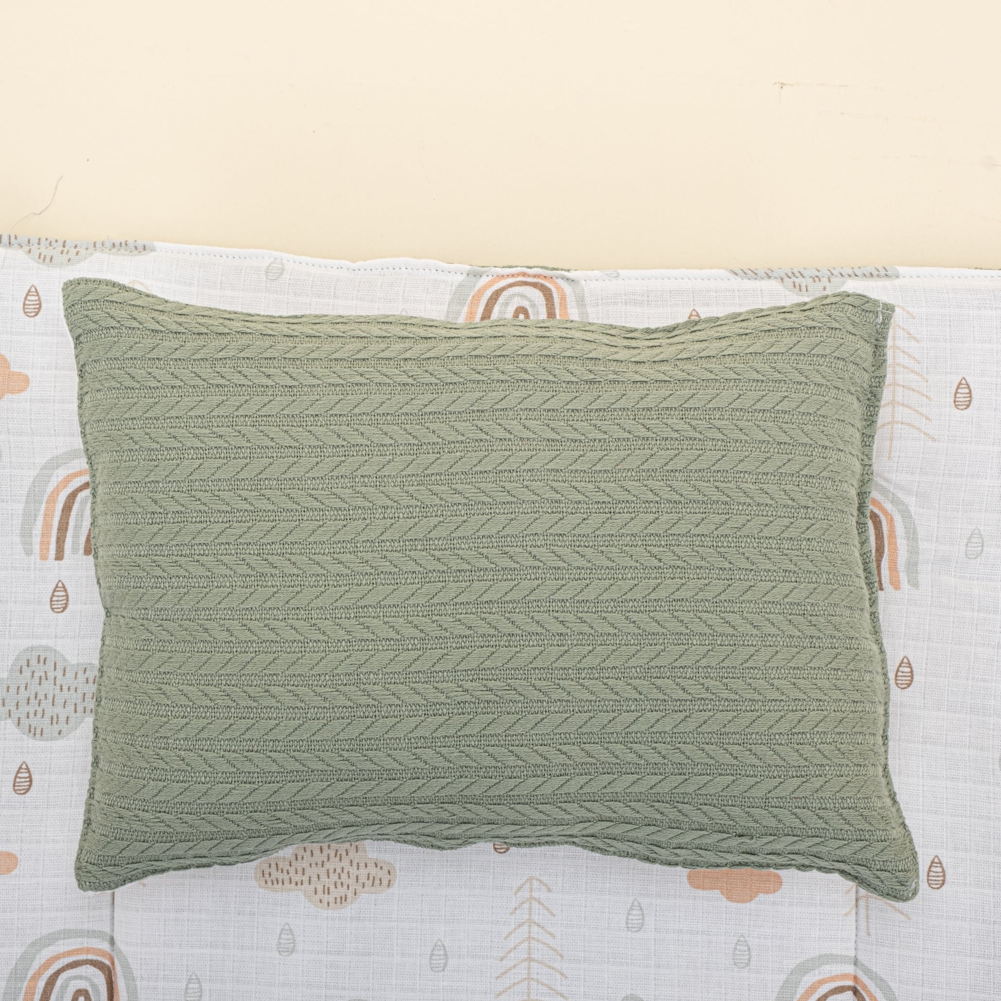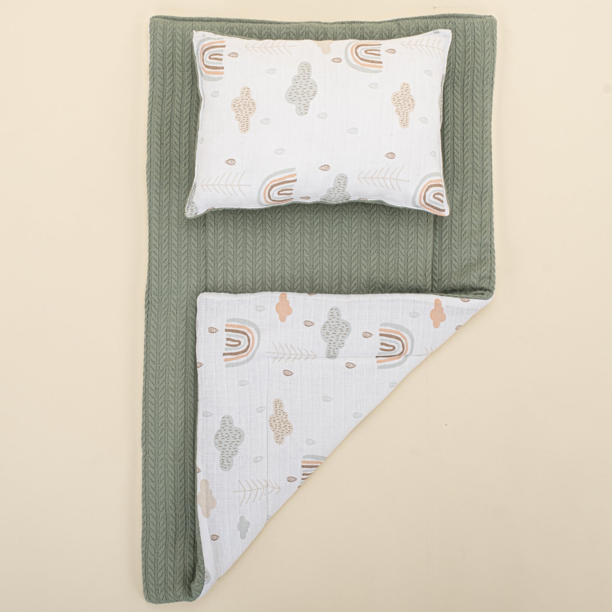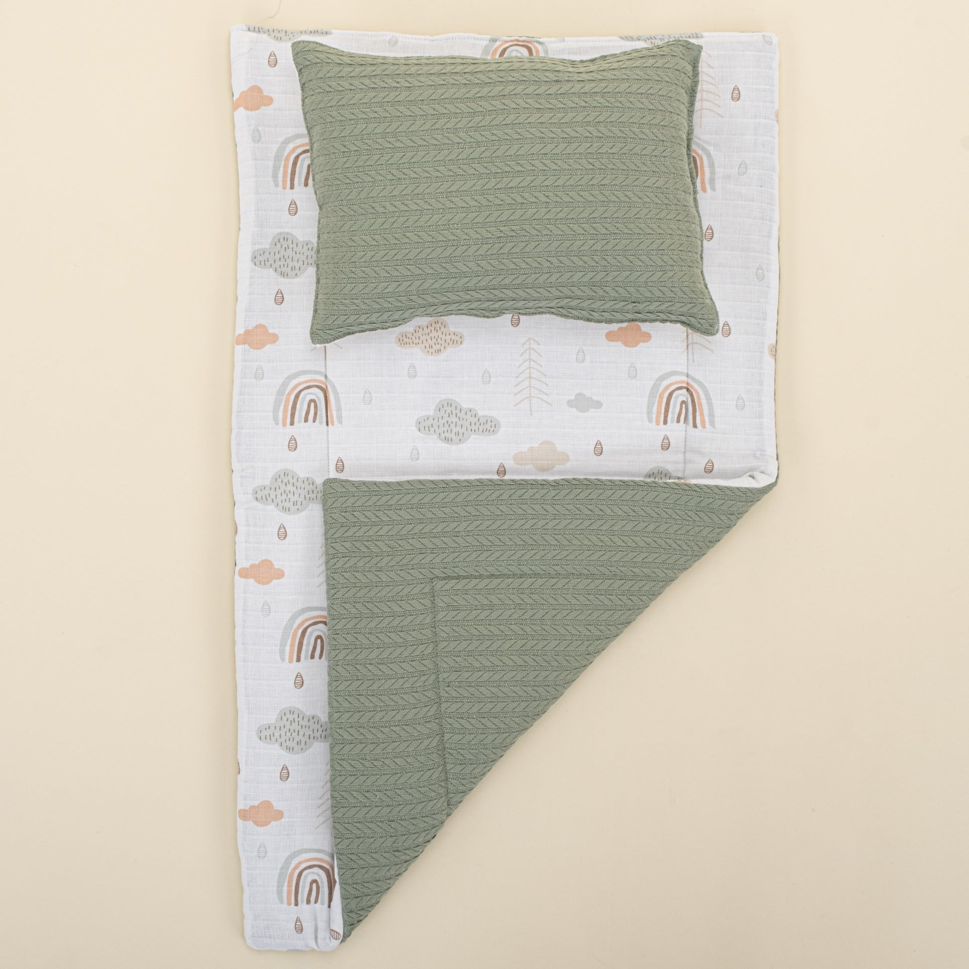 Alt Açma Matı ve Yastık - Çift Taraflı - Koyu Yeşil Örgü - Yeşil Gökkuşağı