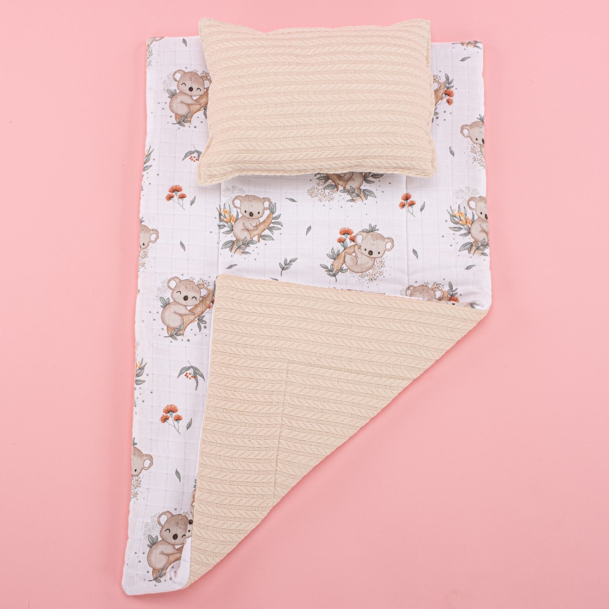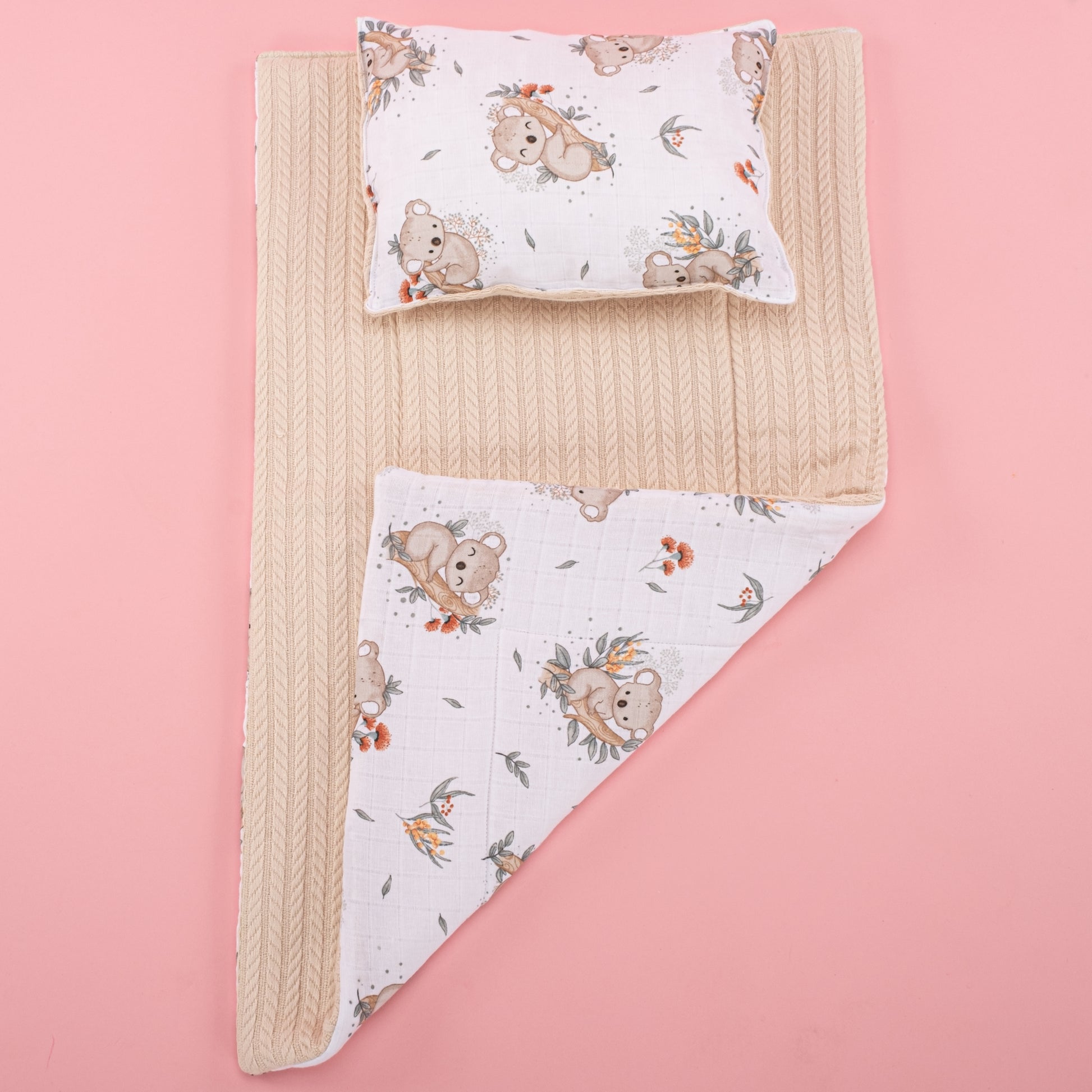 Alt Açma Matı ve Yastık - Çift Taraflı - Krem Örgü - Koala