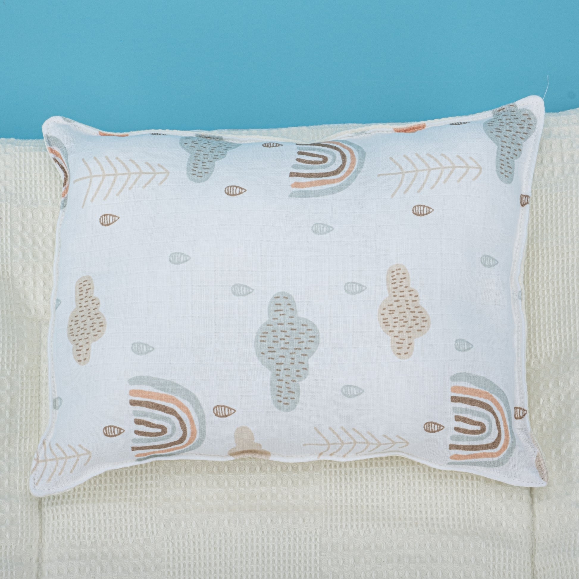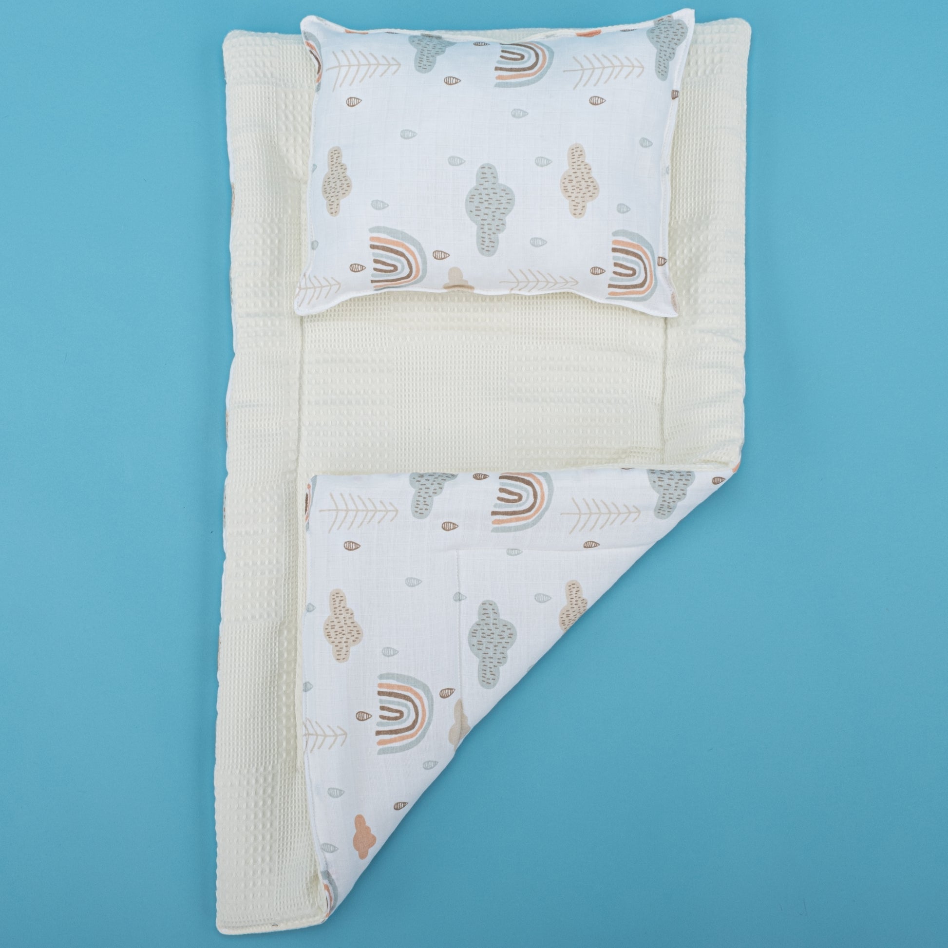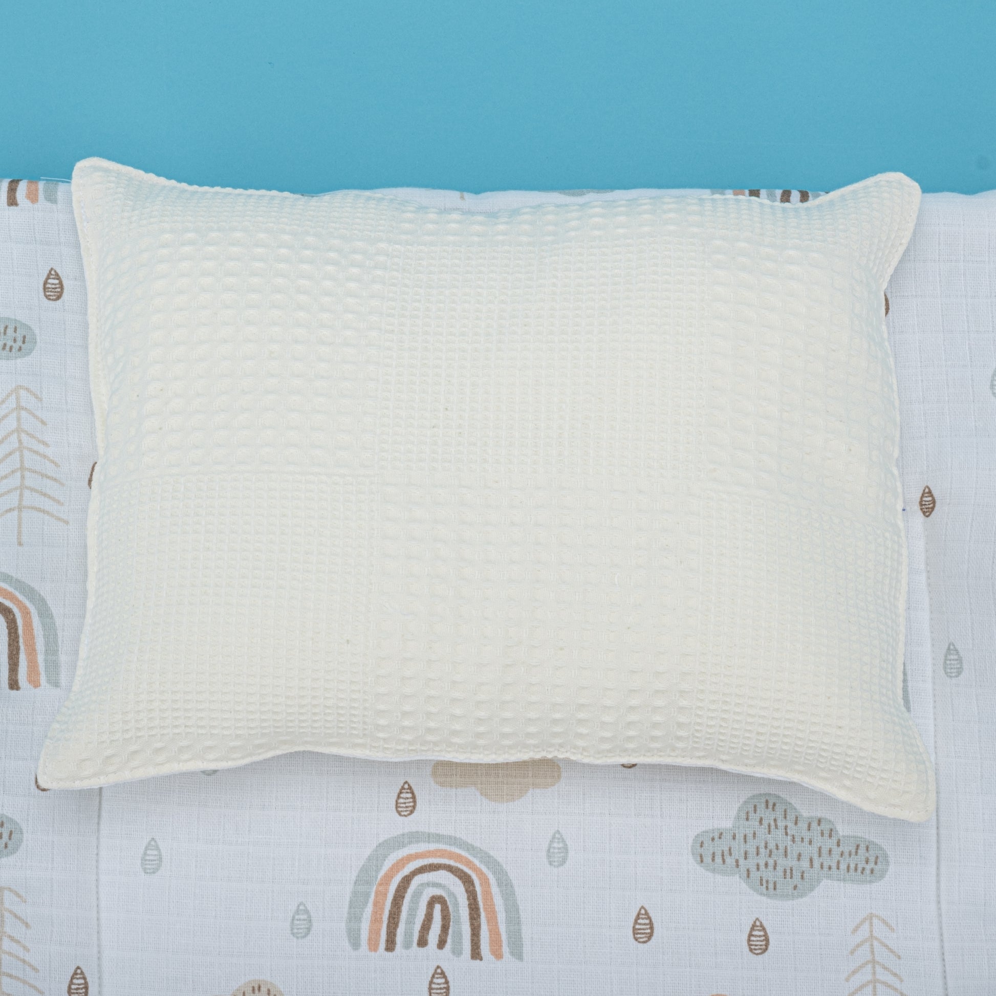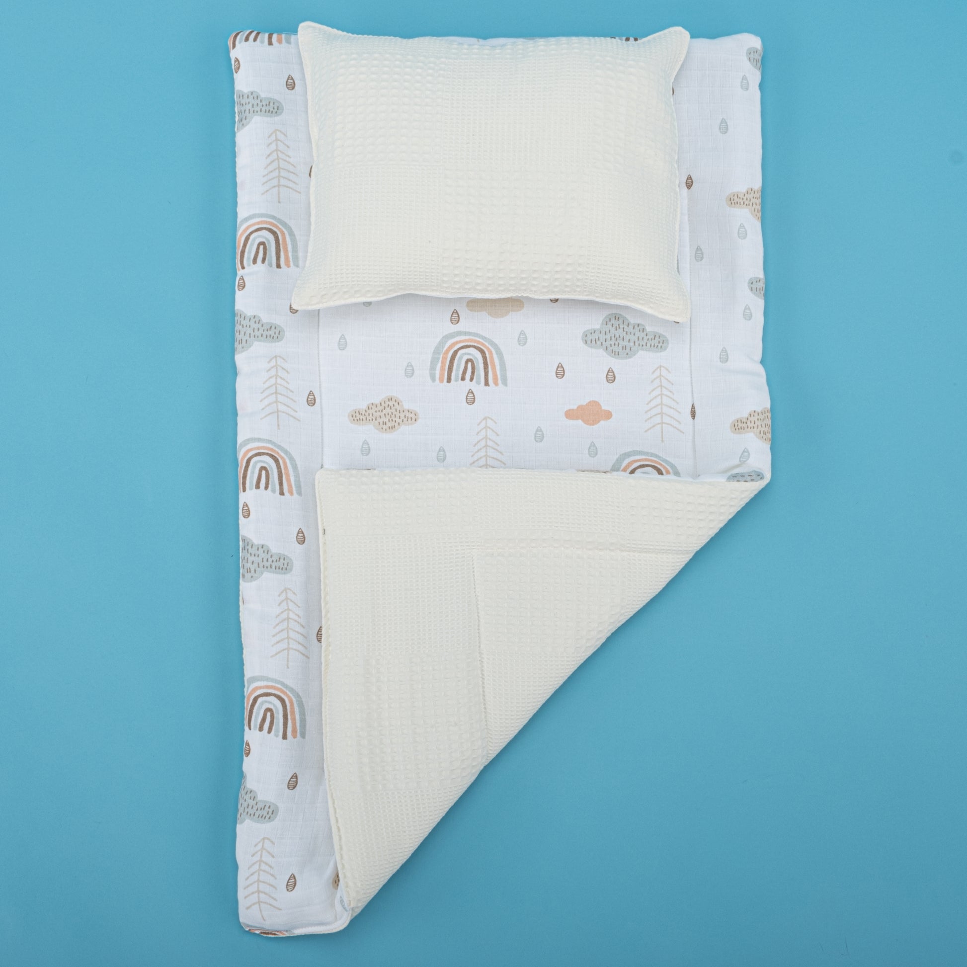 Alt Açma Matı ve Yastık - Çift Taraflı - Krem Waffle - Yeşil Gökkuşağı