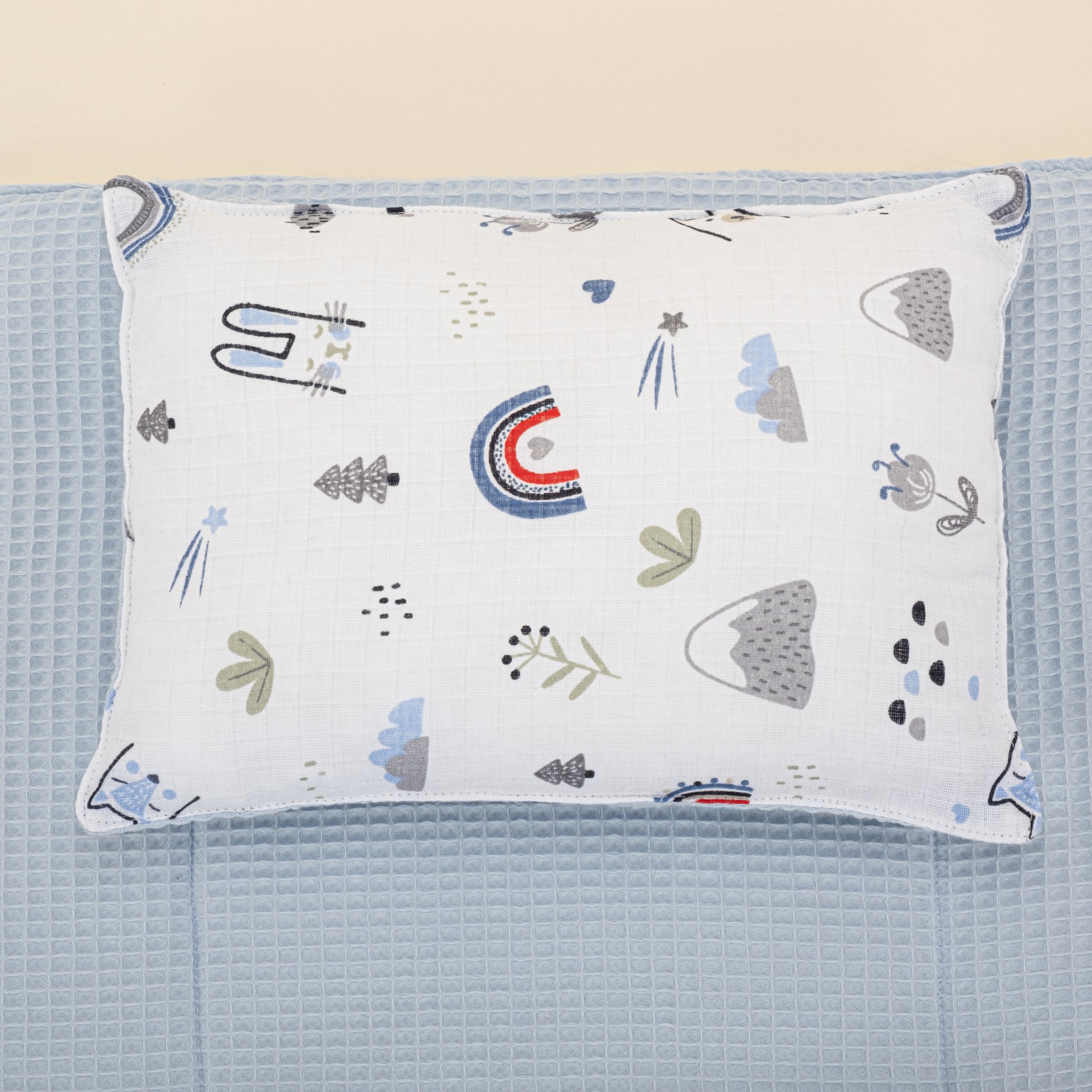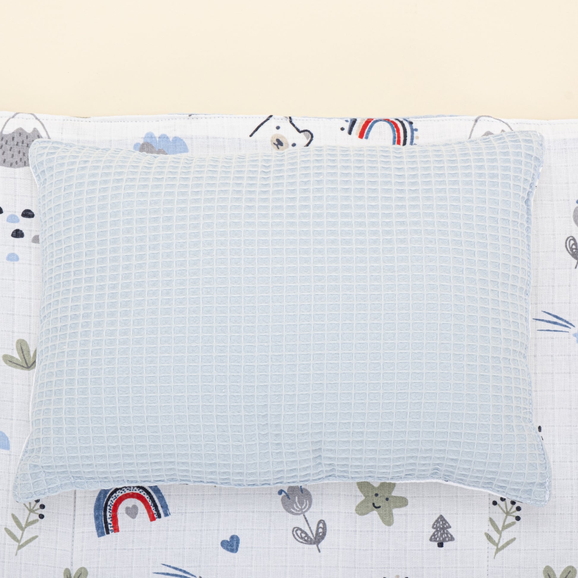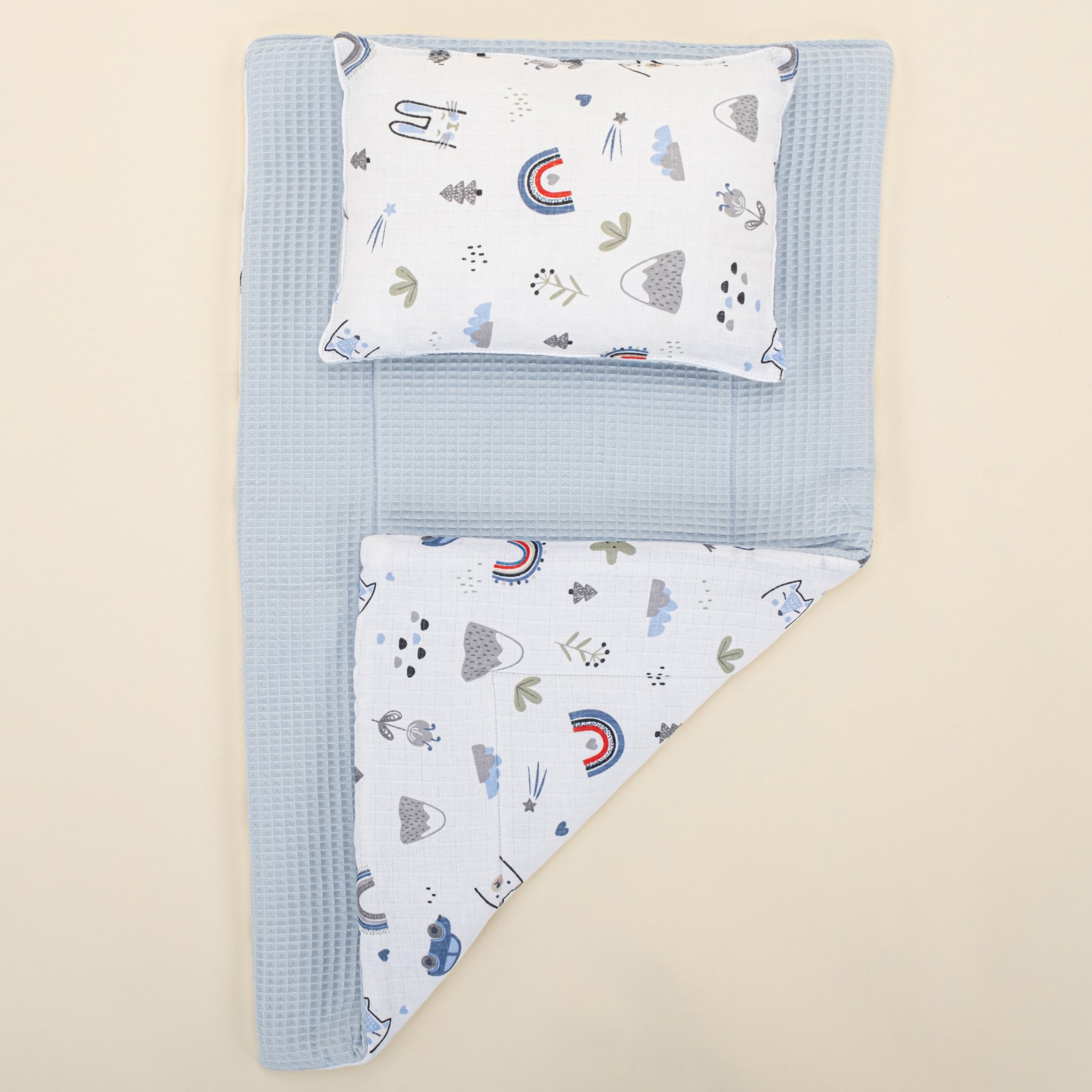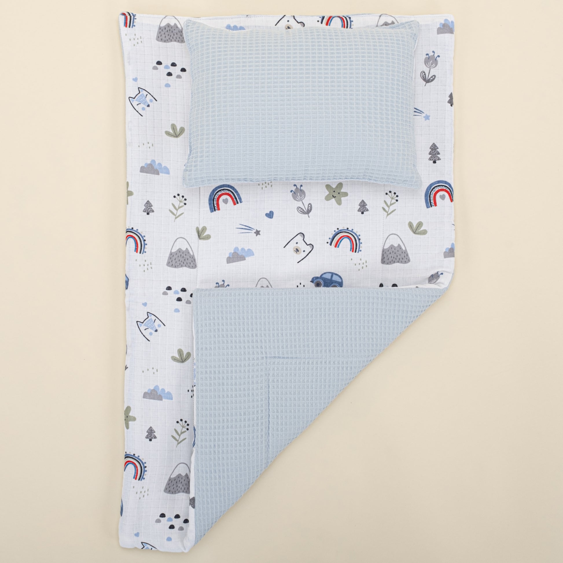 Alt Açma Matı ve Yastık - Çift Taraflı - Bebe Mavi Petek - Mavi Kedi