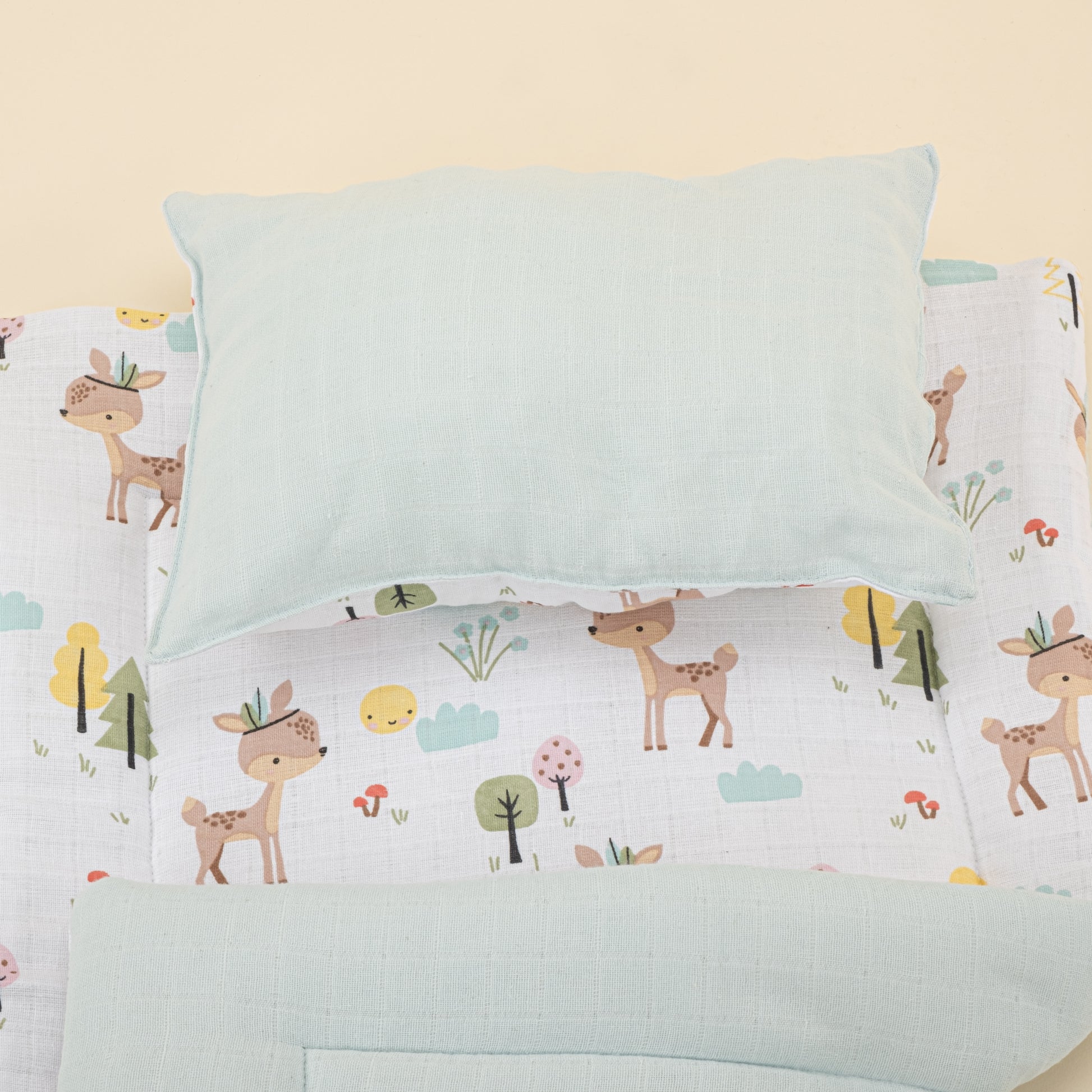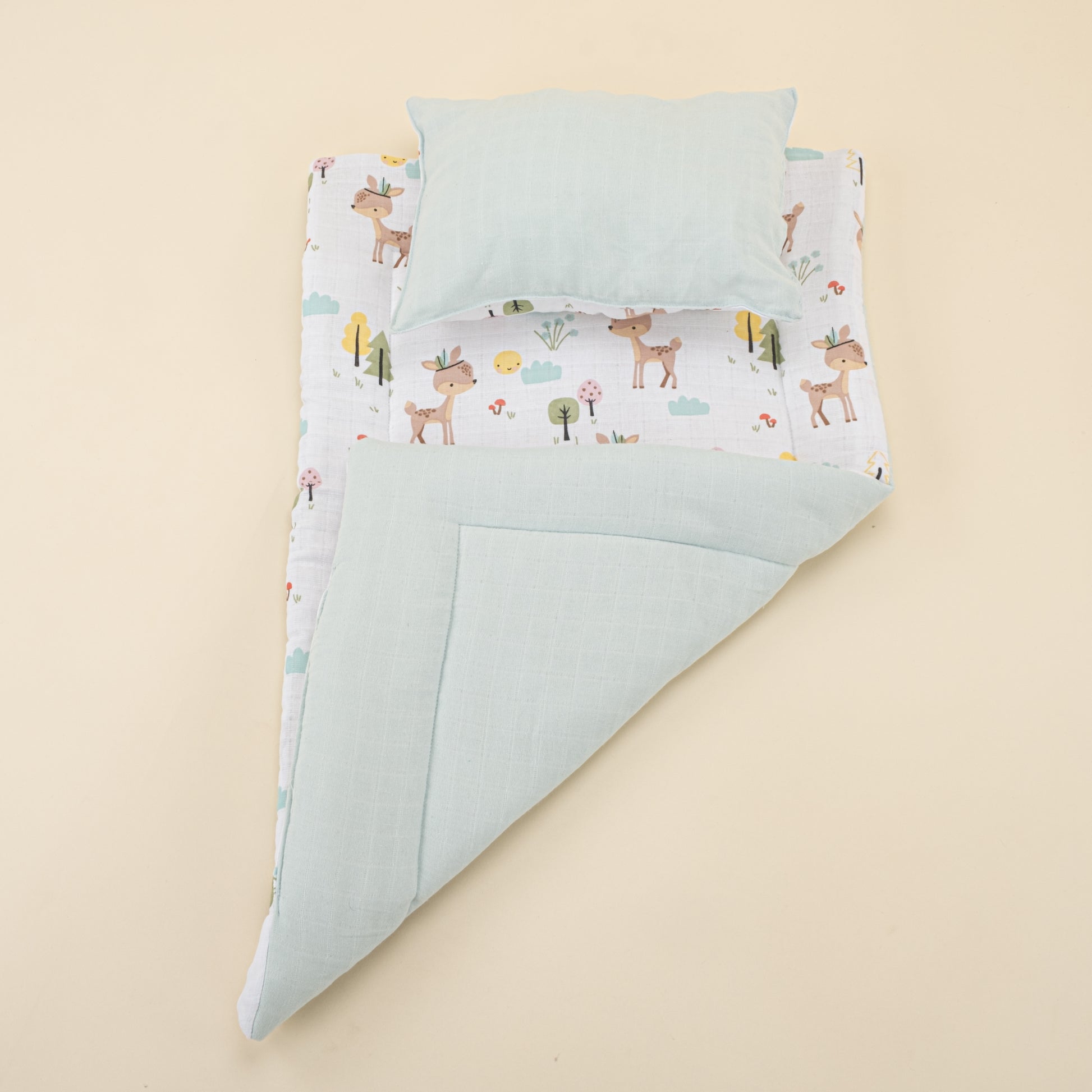 Alt Açma Matı ve Yastık - Çift Taraflı - Mint Muslin - Ceylan