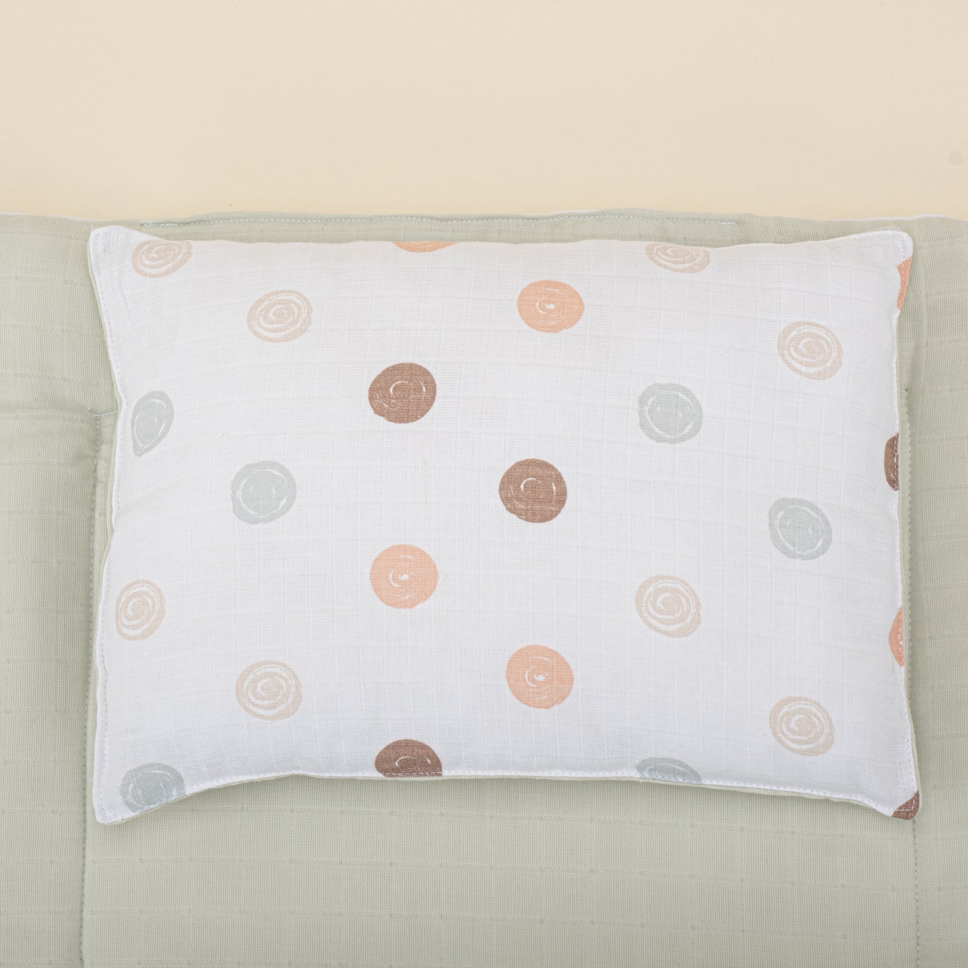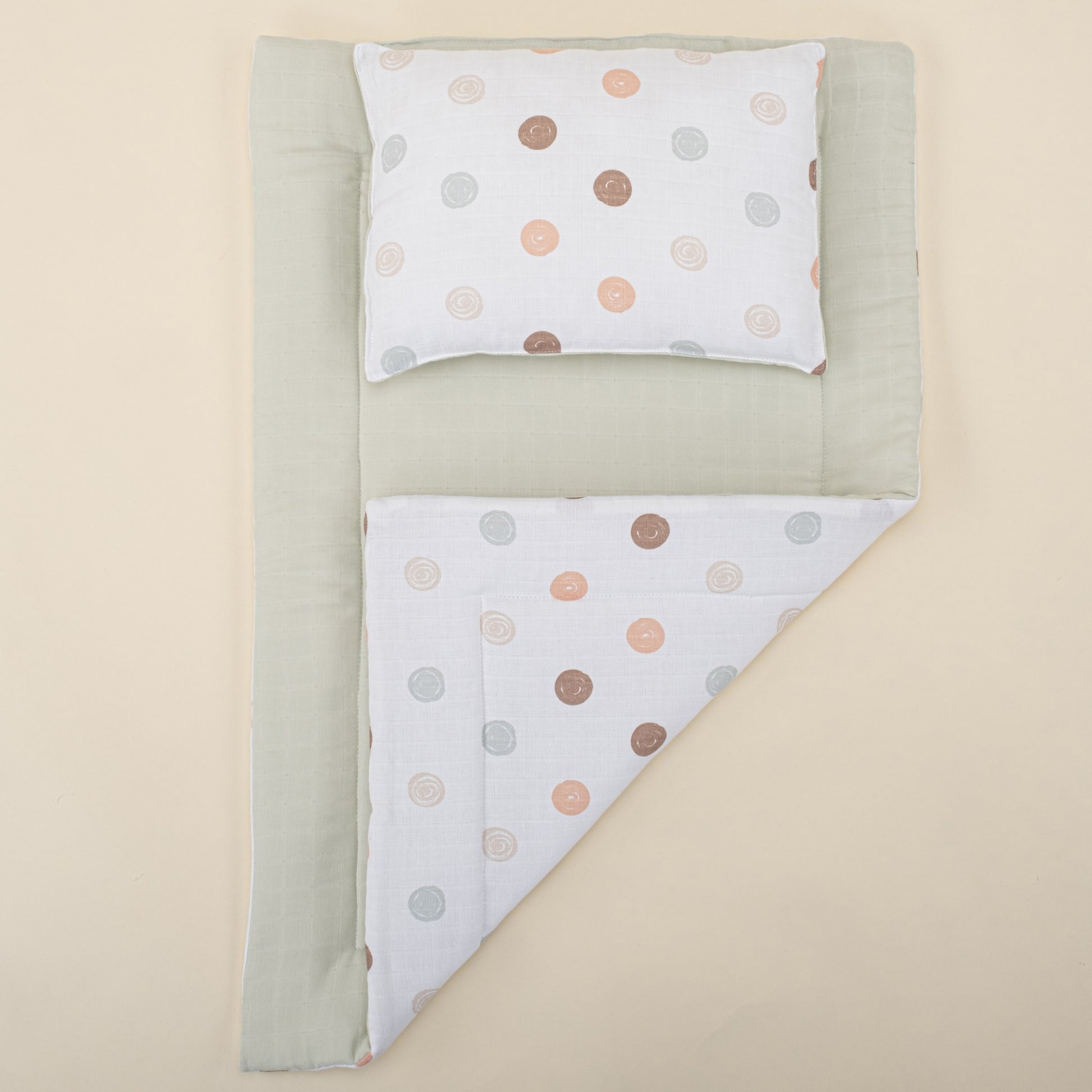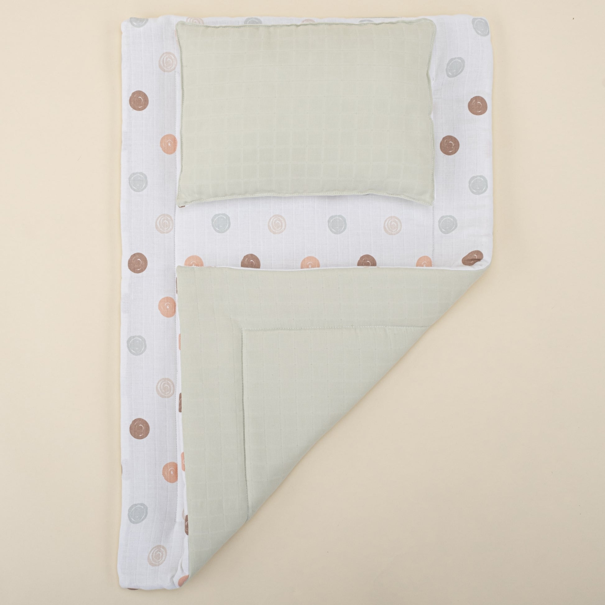 Alt Açma Matı ve Yastık - Çift Taraflı - Mint Muslin - Puantiye