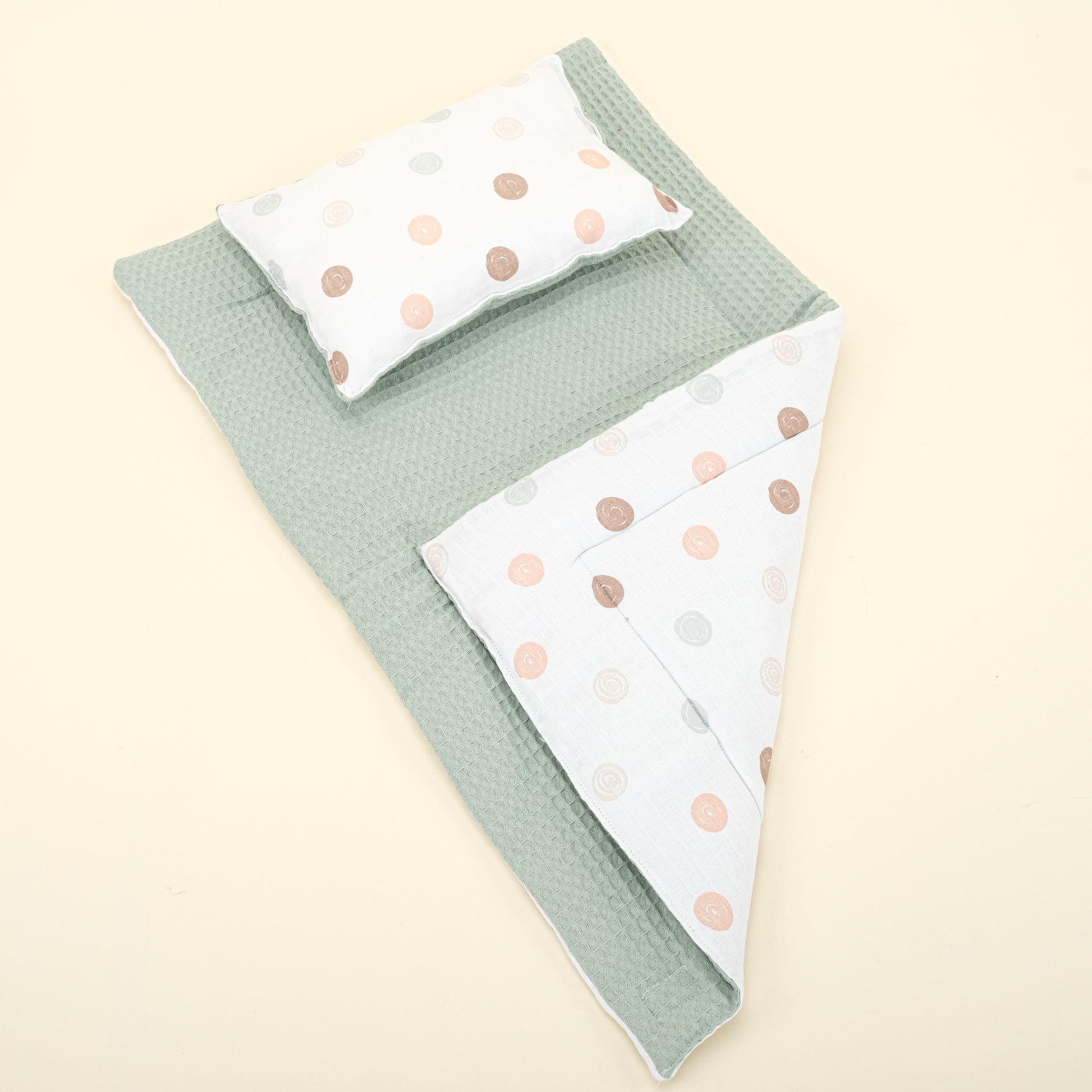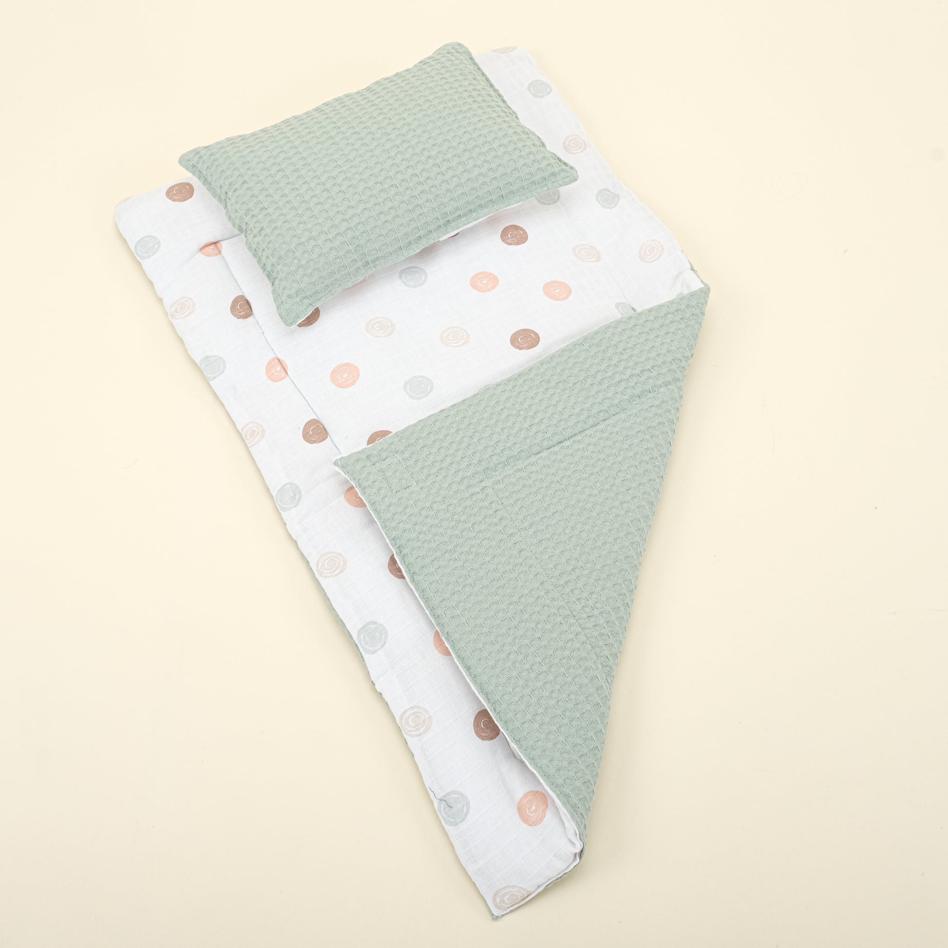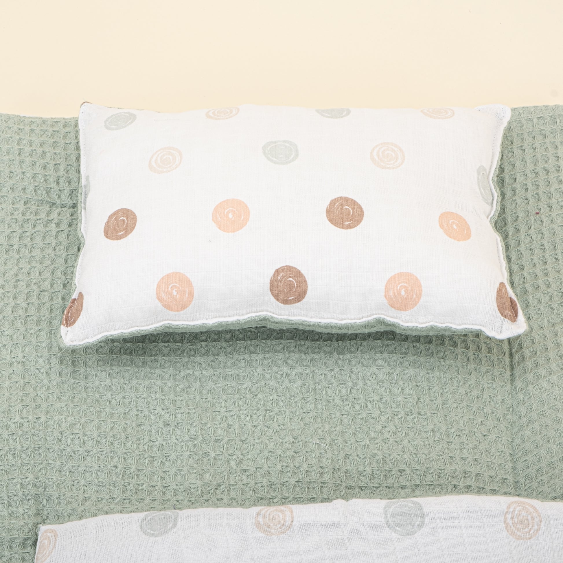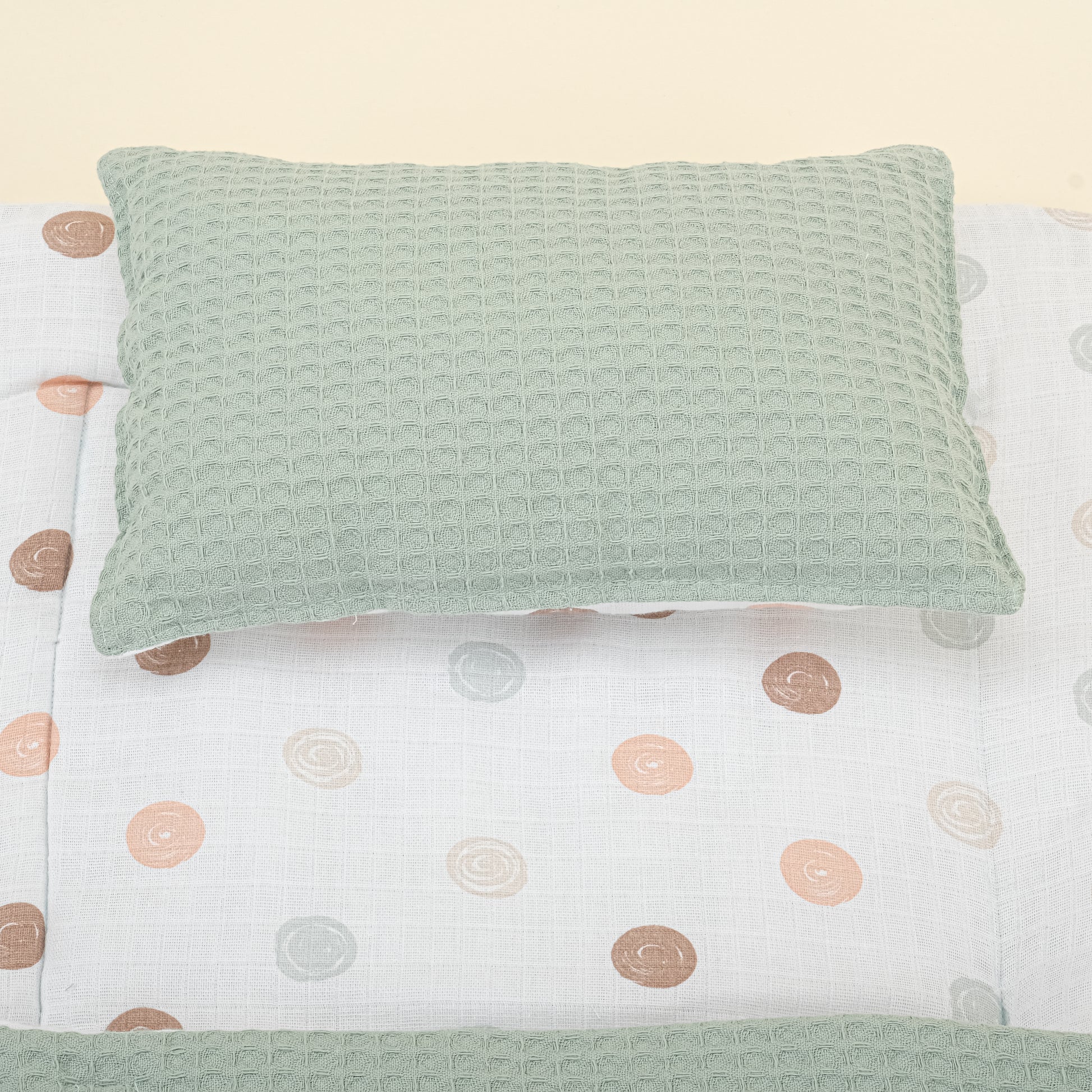 Alt Açma Matı ve Yastık - Çift Taraflı - Yeşil Petek - Puantiye