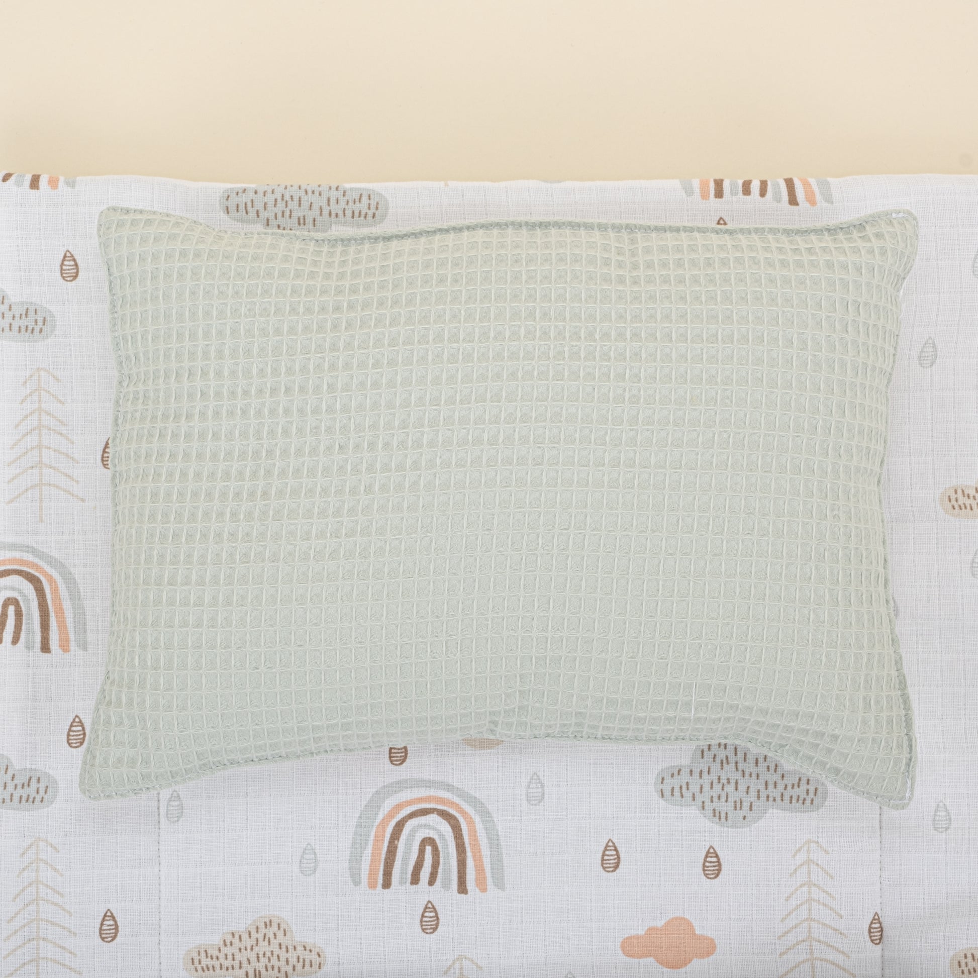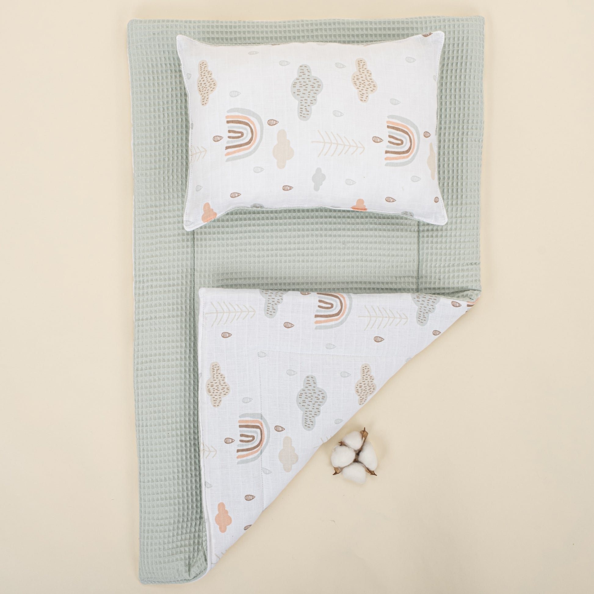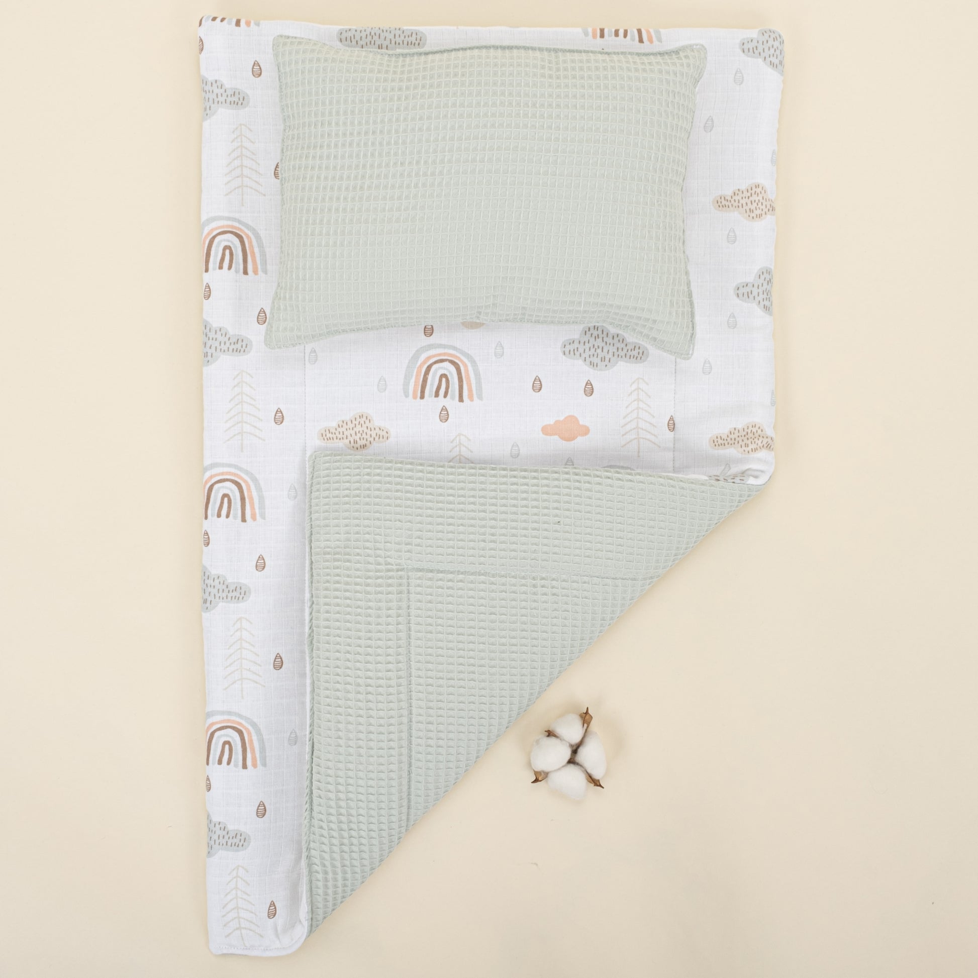 Alt Açma Matı ve Yastık - Çift Taraflı - Açık Yeşil Petek - Yeşil Gökkuşağı