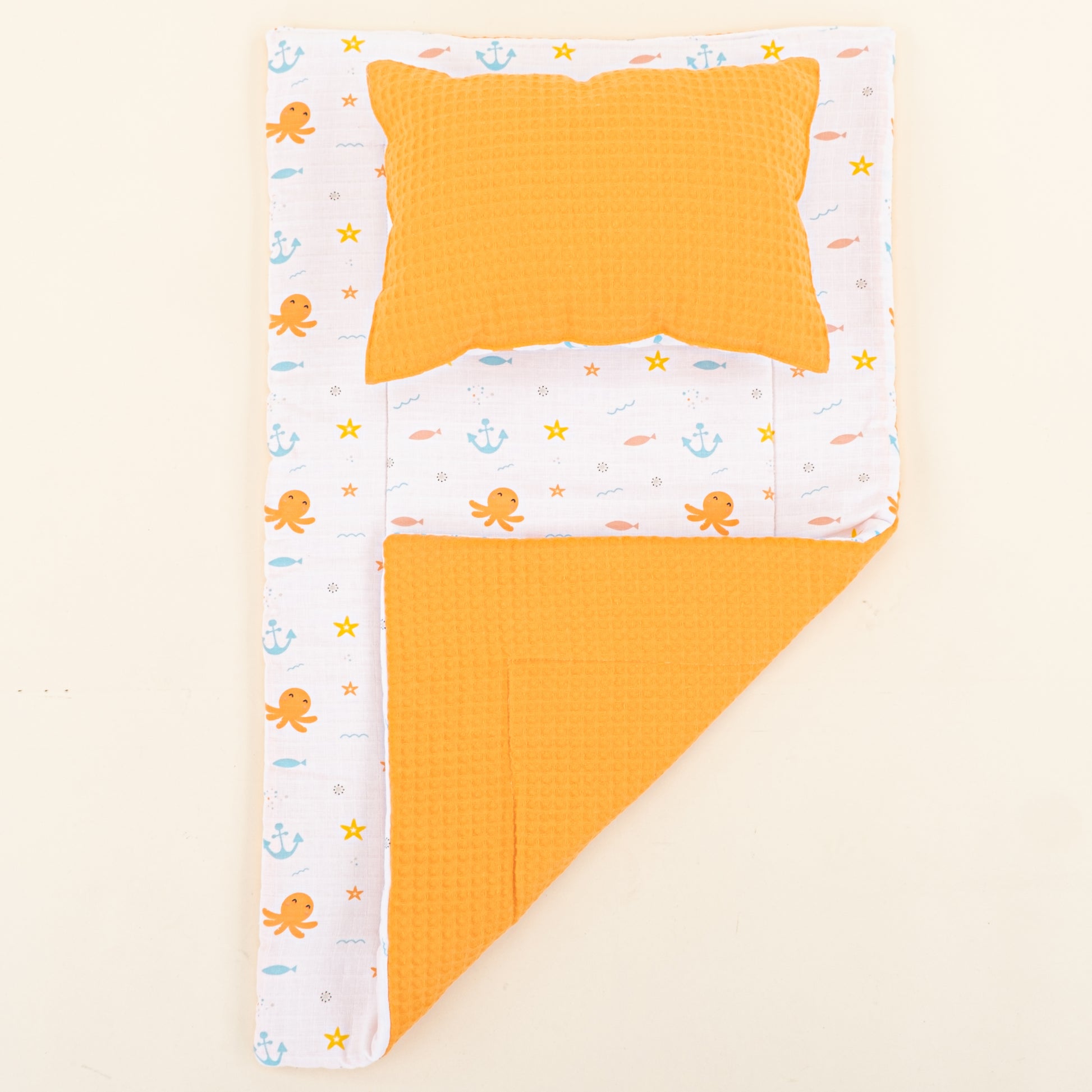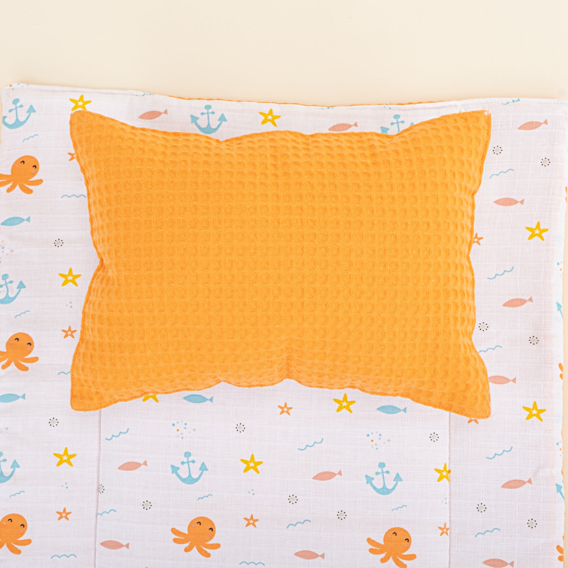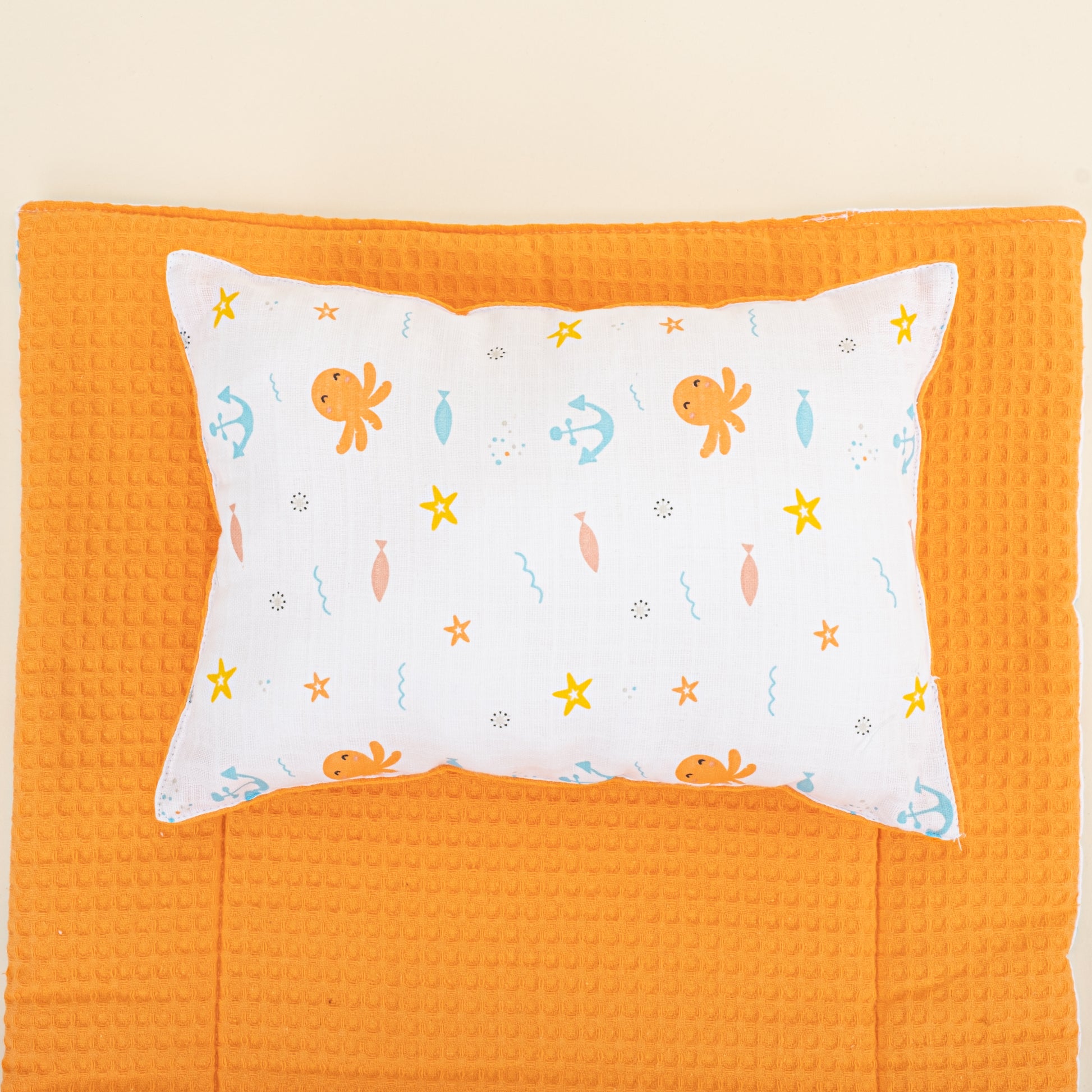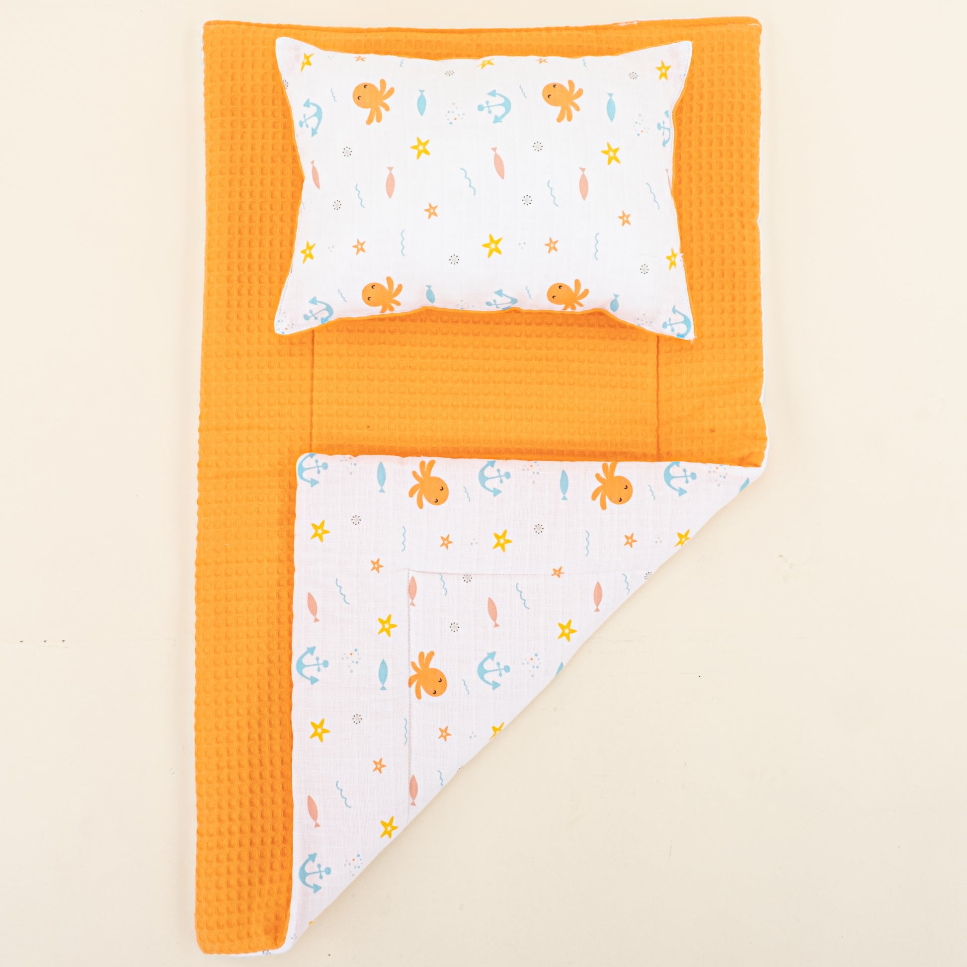 Alt Açma Matı ve Yastık - Çift Taraflı - Oranj Petek - Ahtapot